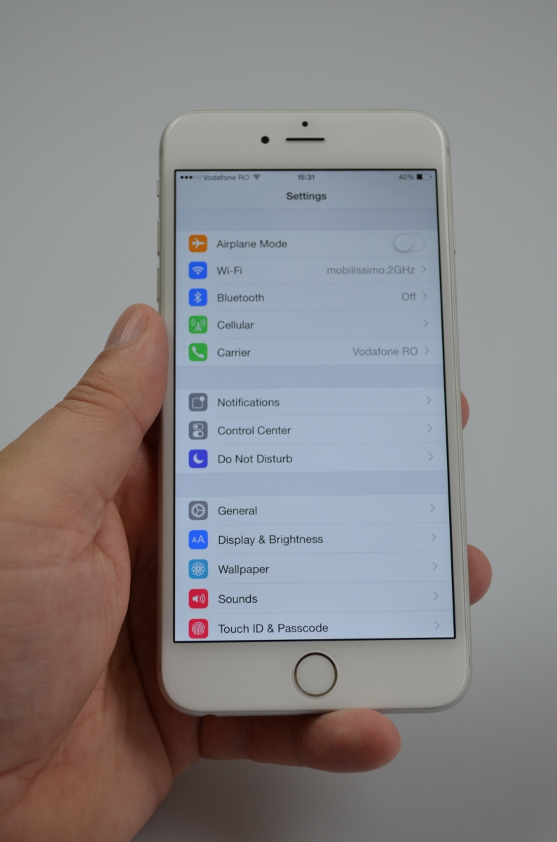în cele din urmă în partea superioară nu se află nimic, iar jos regăsim jackul audio, 8 orificii pentru difuzor, microfonul și portul Lightning. Difuzorul e ușor de acoperit cu mâna din greșeală, mai ales când ne jucăm jocuri sau ne uităm la filme. iPhone 6 Plus vine pe auriu, space gray și argintiu și are un design premium, dar imperfect, iar pentru Apple imperfecțiunea costa. Să vedem cum stăm cu hardware-ul acum.