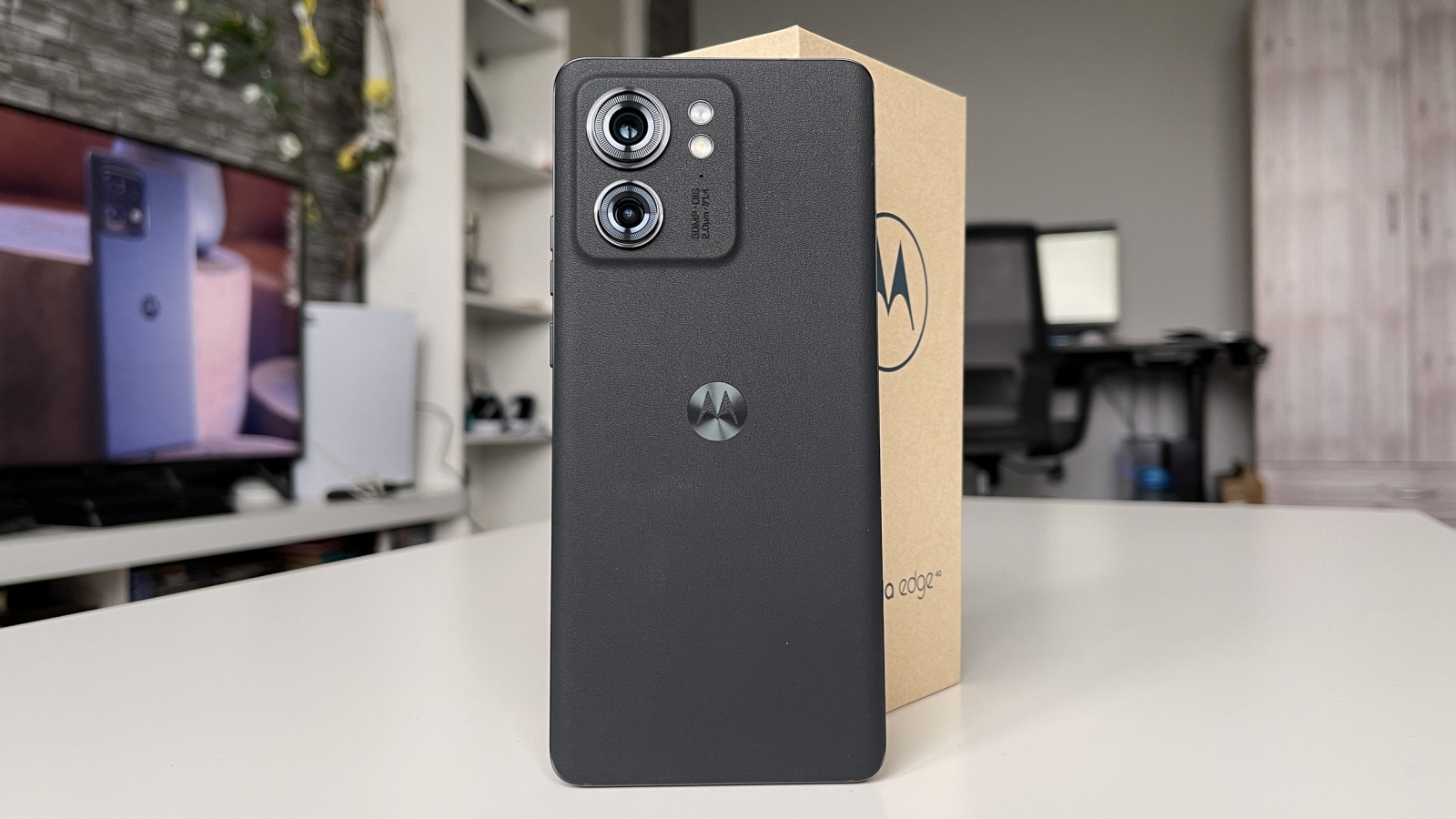 Așa cum spuneam, adoptă un design premium, iar asta se vede prin prisma ecranului ușor curbat, muchiilor înguste și prin materialul ales pentru panoul spate, o piele ecologică foarte plăcută la atingere. Ai și certificare IP68 pentru rezistență la apă și praf, iar telefonul este mai compact decât fratele său mai mare, Edge 40 Pro și totodată mai ușor cu peste 30 grame.