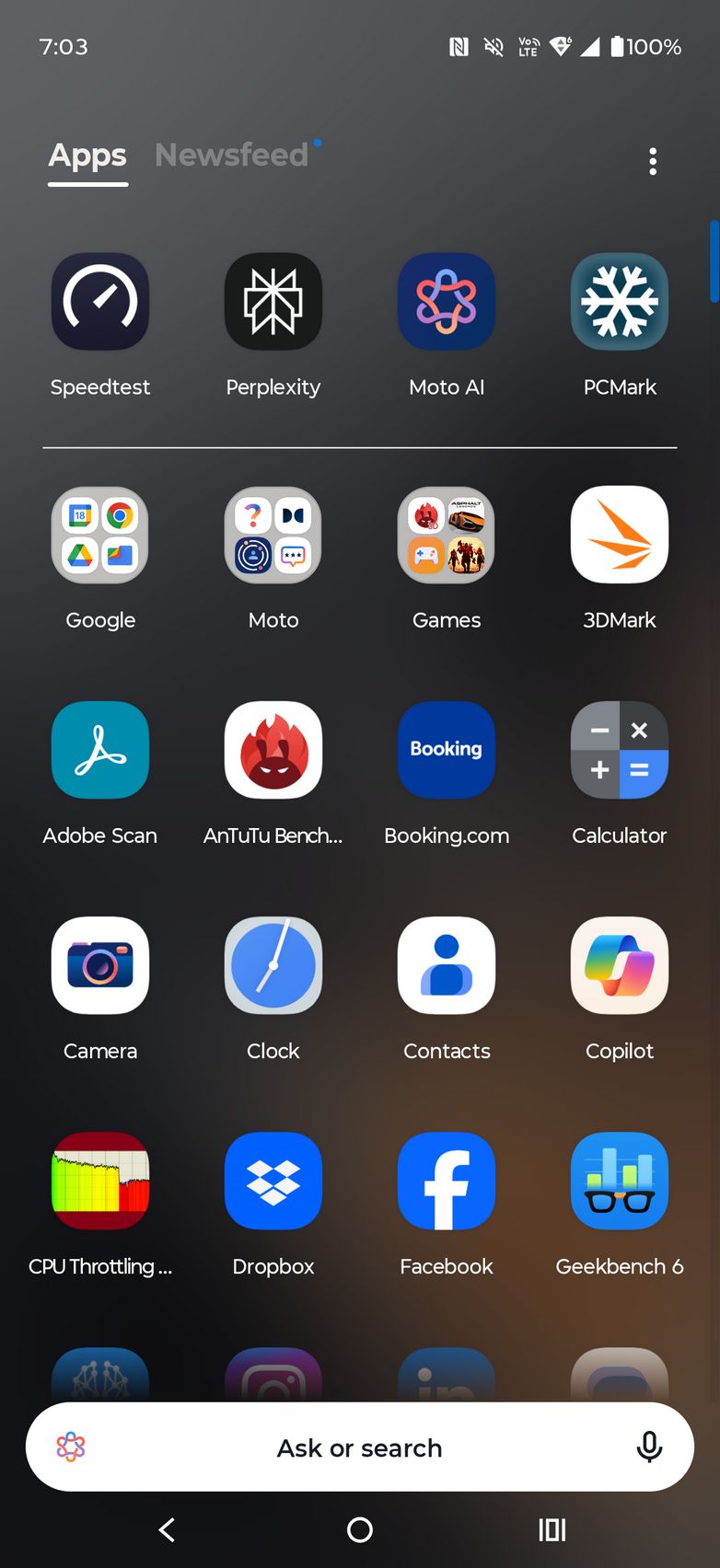 De la Moto vin aplicații precum Moto Secure, Family Space pentru limite pentru cei mici, iar cu Moto Unplugged poți lua o pauză de la funcțiile smart. Există și Notes cu funcții AI, Smart Connect pentru productivitate pe alte dispozitive, iar pe lângă numeroasele aplicații Google eu am mai găsit Booking preinstalat, Adobe Scan și Opera.