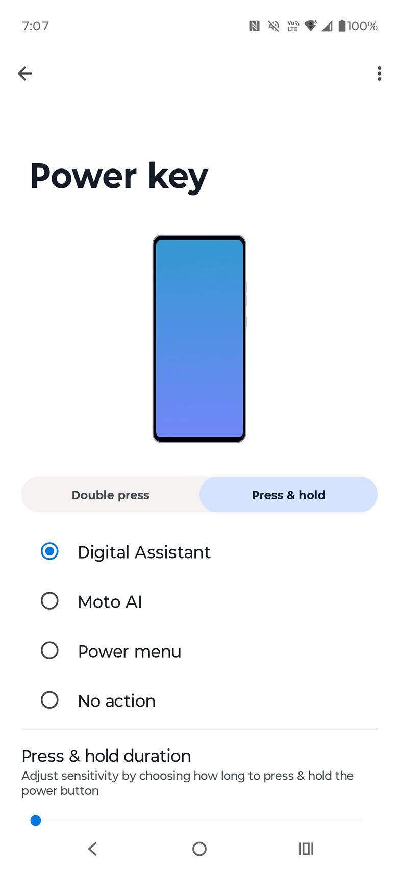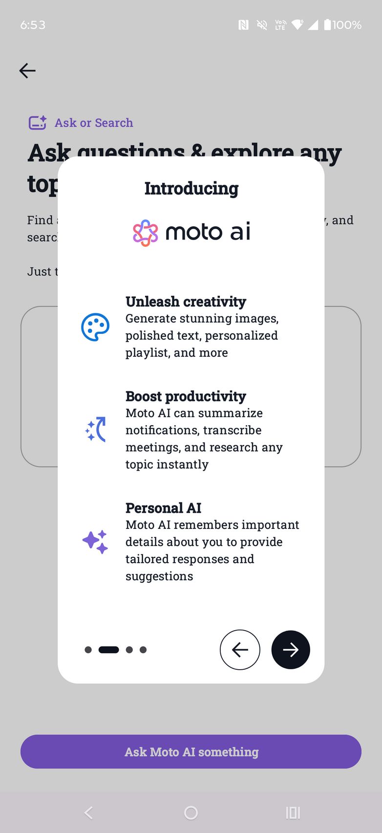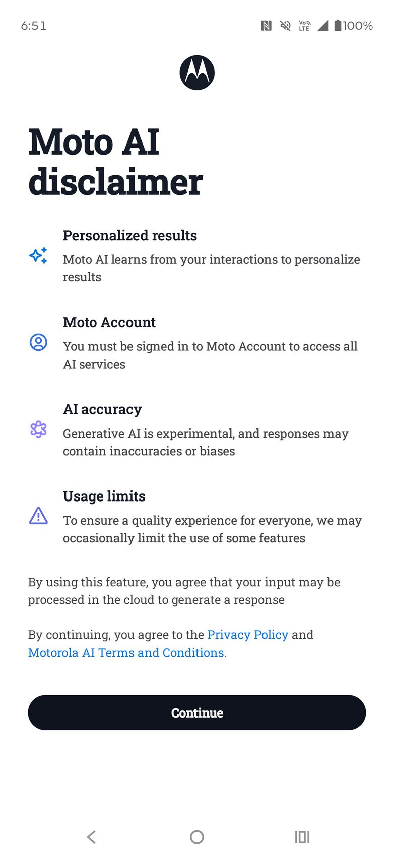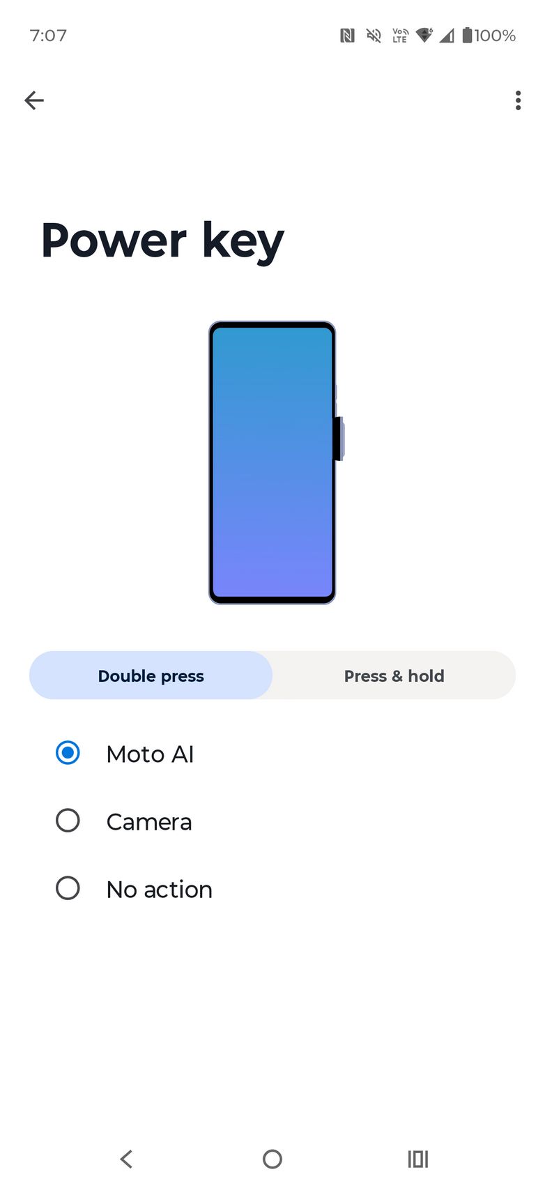 Avem și Perplexity preinstalat, Copilot, Circle to Search, Gemini, plus editări foto în Google Photos. Nu există acel buton lateral dedicat AI-ului ca pe alte telefoane Moto, dar poți asocia Moto AI butonului power. Suita Moto AI este disponibilă și în limba română.
