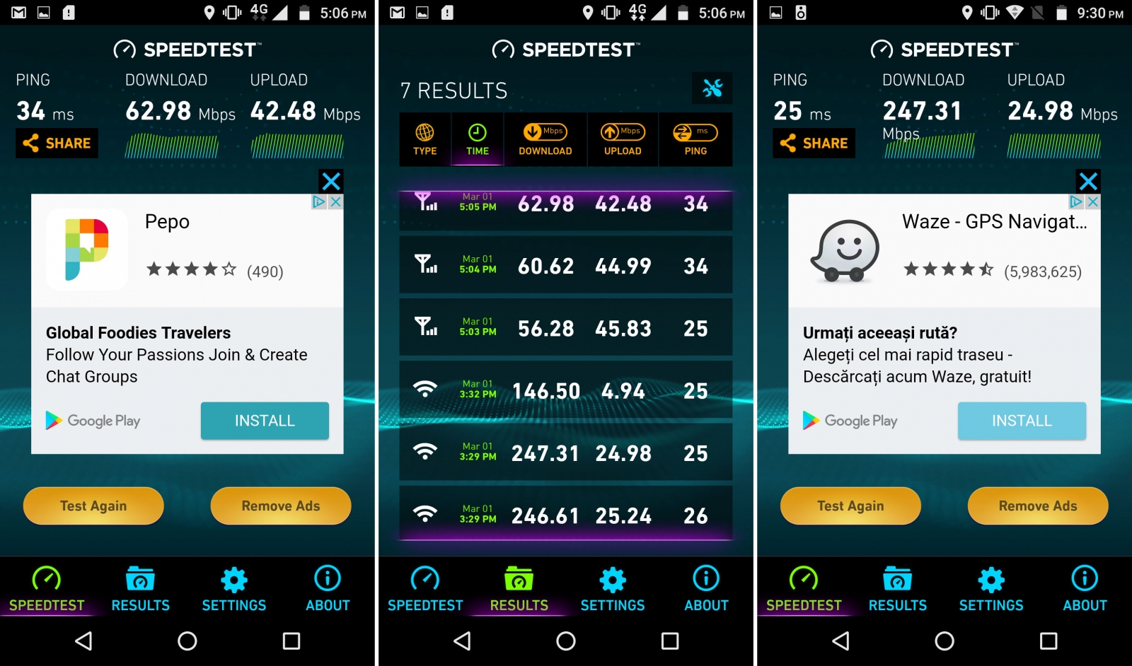 Apelurile au volumul bun, claritatea e excelentă şi anulareă zgomotului de fond şi-a făcut treaba bine. Rezultatele au arătat bine şi în SpeedTest, cu 247 Mbps viteza download în WiFi şi 25 Mbps la upload. La testul 4G am atins 62 Mbps la download şi 45 Mbps la upload, ambele viteze în grafic cu alte modele testate de noi.