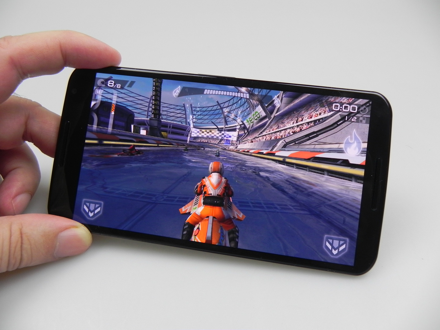 Calitatea la zoom, calitatea culorilor și prim planurilor, dar și captura nocturnă bună se remarcă aici. Problemele cu focalizarea și captura lentă sunt bile negre, iar stabilizarea optică nu impresionează. Gata cu camera și hai să discutăm despre performanta și software! Motorola Nexus 6 atinge 34 de grade Celsius, după 15 minute de Riptide GP2, ceea ce înseamnă că nu se supraîncălzește. Totuși la încărcare și la titlul Game of Thrones, spatele acestui device s-a încins peste 40 de grade.