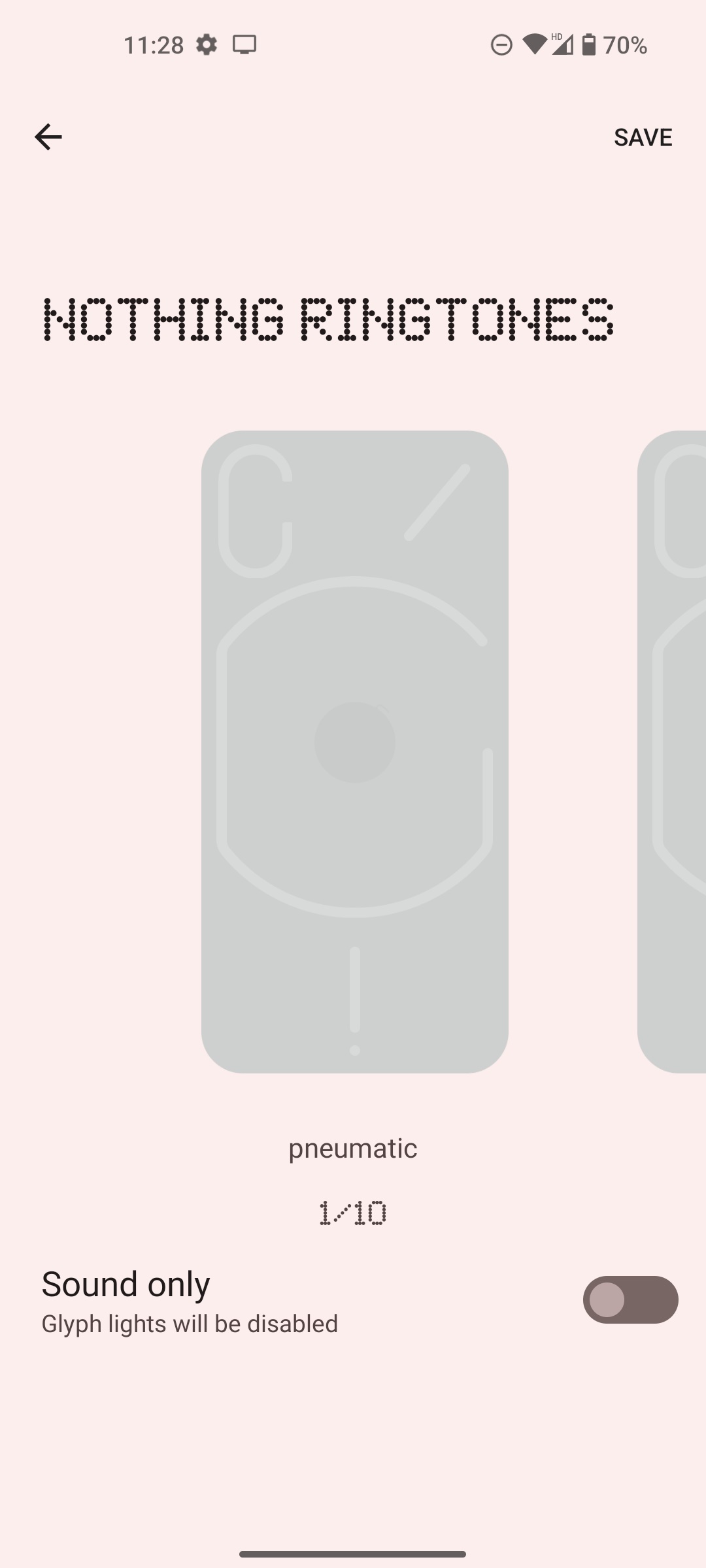Avem şi şi 10 sunete pentru notificări, fiecare cu model diferit de iluminare LED. Da, poţi să adaugi soneriile tale şi LED-urile vor încerca să se adapteze, pe cât se poate. Dacă pui telefonul în jos va intra automat într-un mod Silent şi doar Glyph te va anunţa că eşti sunet sau primeşti notificări.