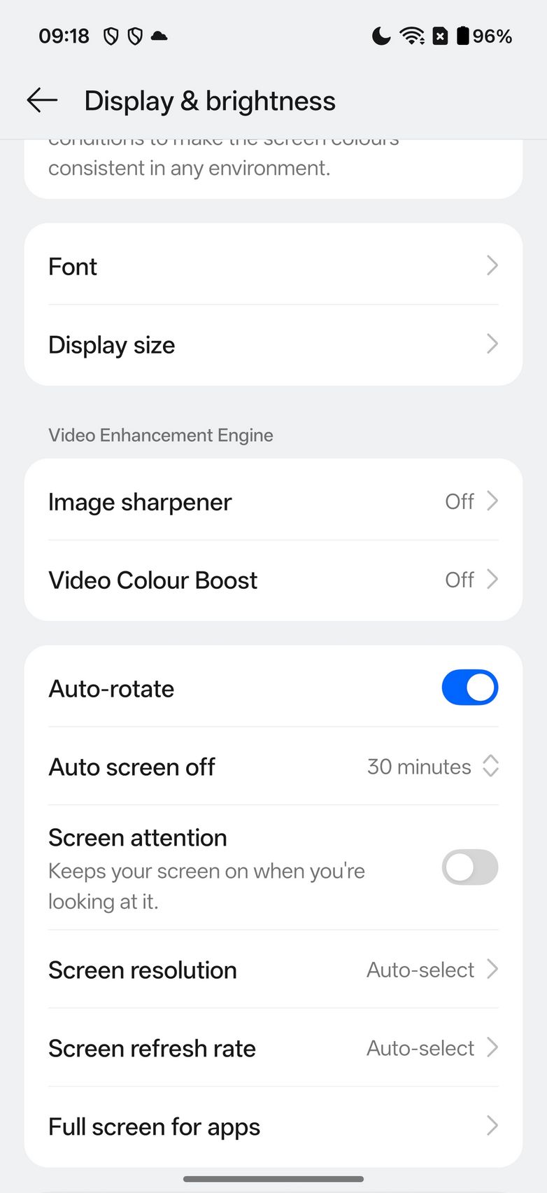 Am mai umblat și pe la Mod Culoare Ecran (standard, natural, vivid), Eye Care (protejare ochi înainte de somn, prin culori mai calde). De asemenea, am găsit și Image Sharpener, Video Color Boost, opțiuni de font și mărime display.