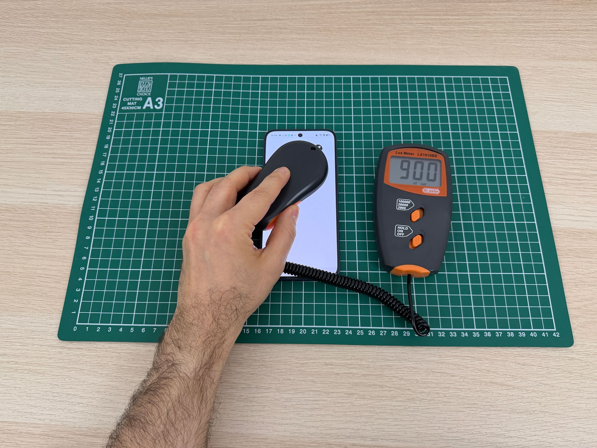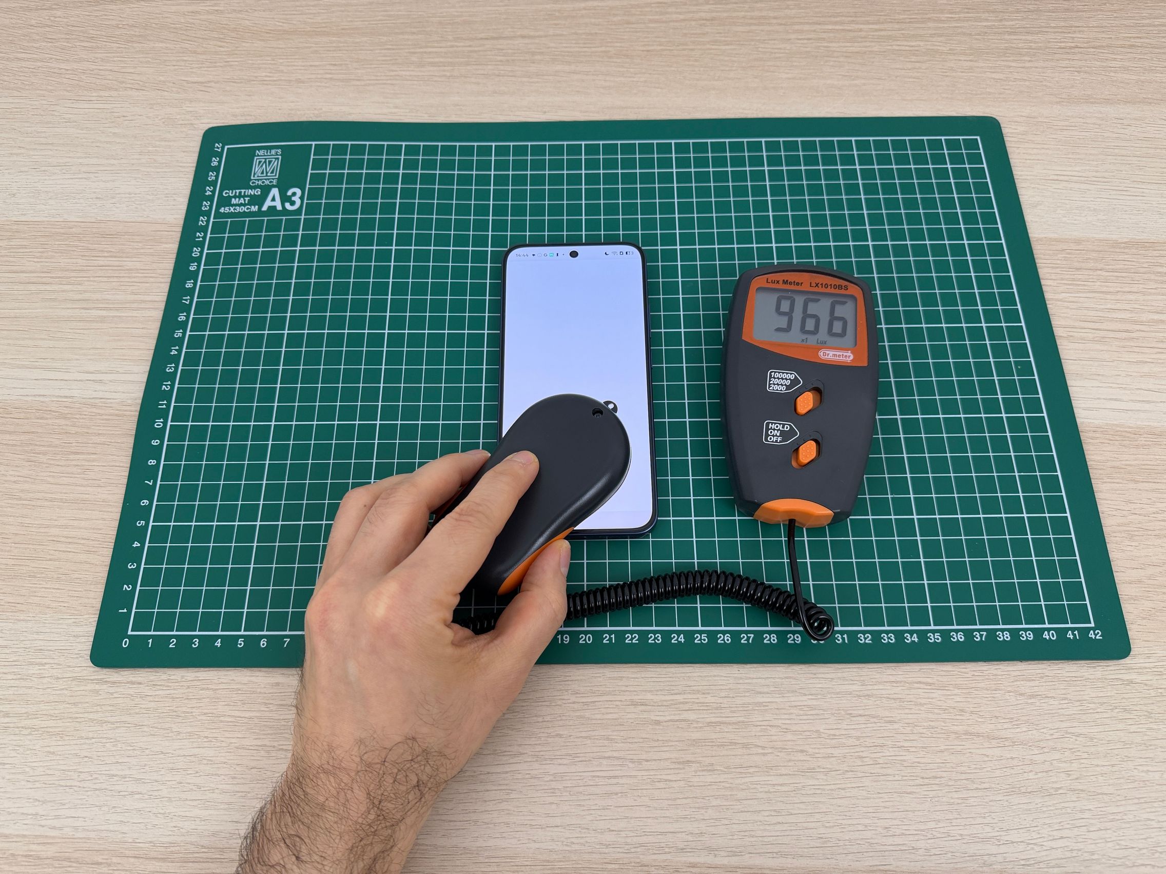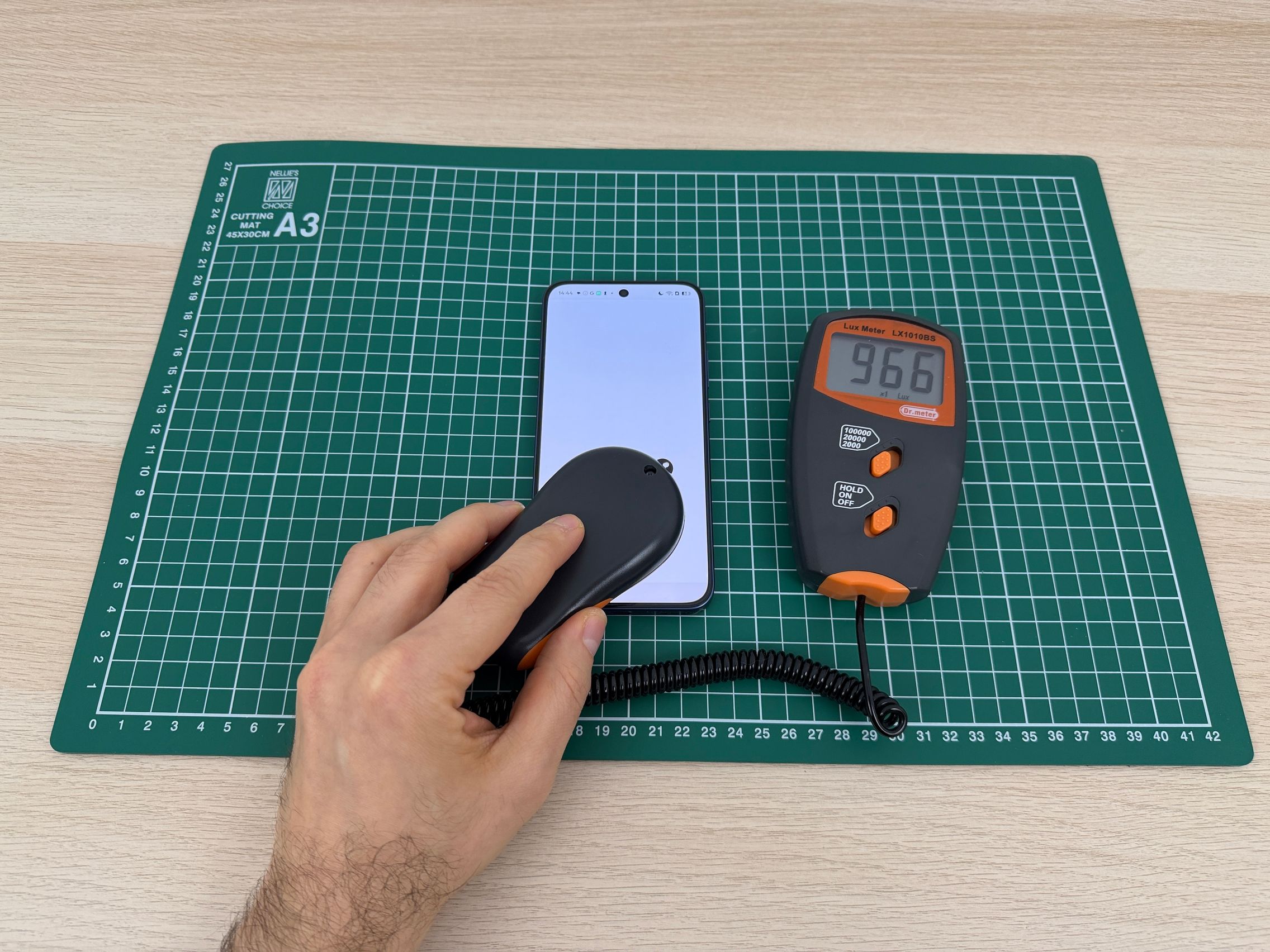 Vorbim despre un AMOLED 10-bit cu rată de refresh de 120Hz, luminozitate tipică de 600 nits și 1400 nits în High Brightness Mode. Cu luxmetrul din sertar am atins 966 LUX și mă declar mulțumit. Depășim un iPhone 16 Pro, pe OPPO Reno12 Pro, moto edge 40 și multe altele. E aproape și de Honor 200.