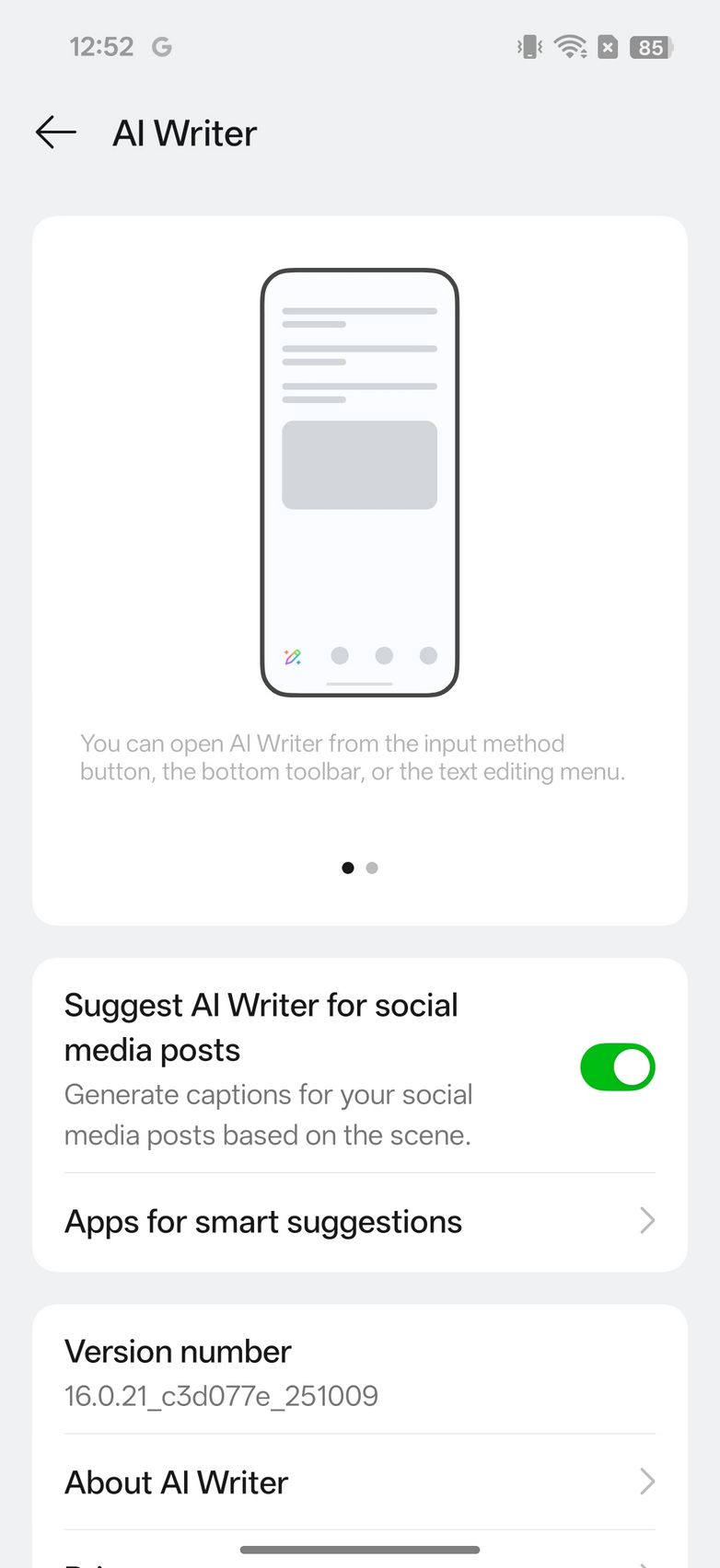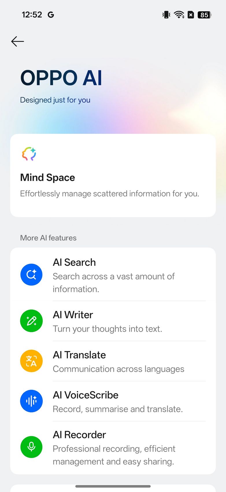 AI-ul e integrat şi în Notes, cu corectură, rezumat, sugestii de ton, grafice Mind pentru delimiterea de idei, dar şi Recorder, cu conversie din înregistrare audio în text, plus Calendar. Atenţie, limba română nu e perfect integrată aici. AI Studio îţi permite să generezi costume, măşti, fundaluri pentru selfie-urile tale, inclusiv cele de grup. Trebuie să fii logat în contul OPPO şi să ai suficienţi tokeni. Poţi face dintr-o fotografie statică una mişcătoare, una cu valuri spre exemplu şi te poţi pune în poza lângă un fotbalist celebru, dacă vrei.