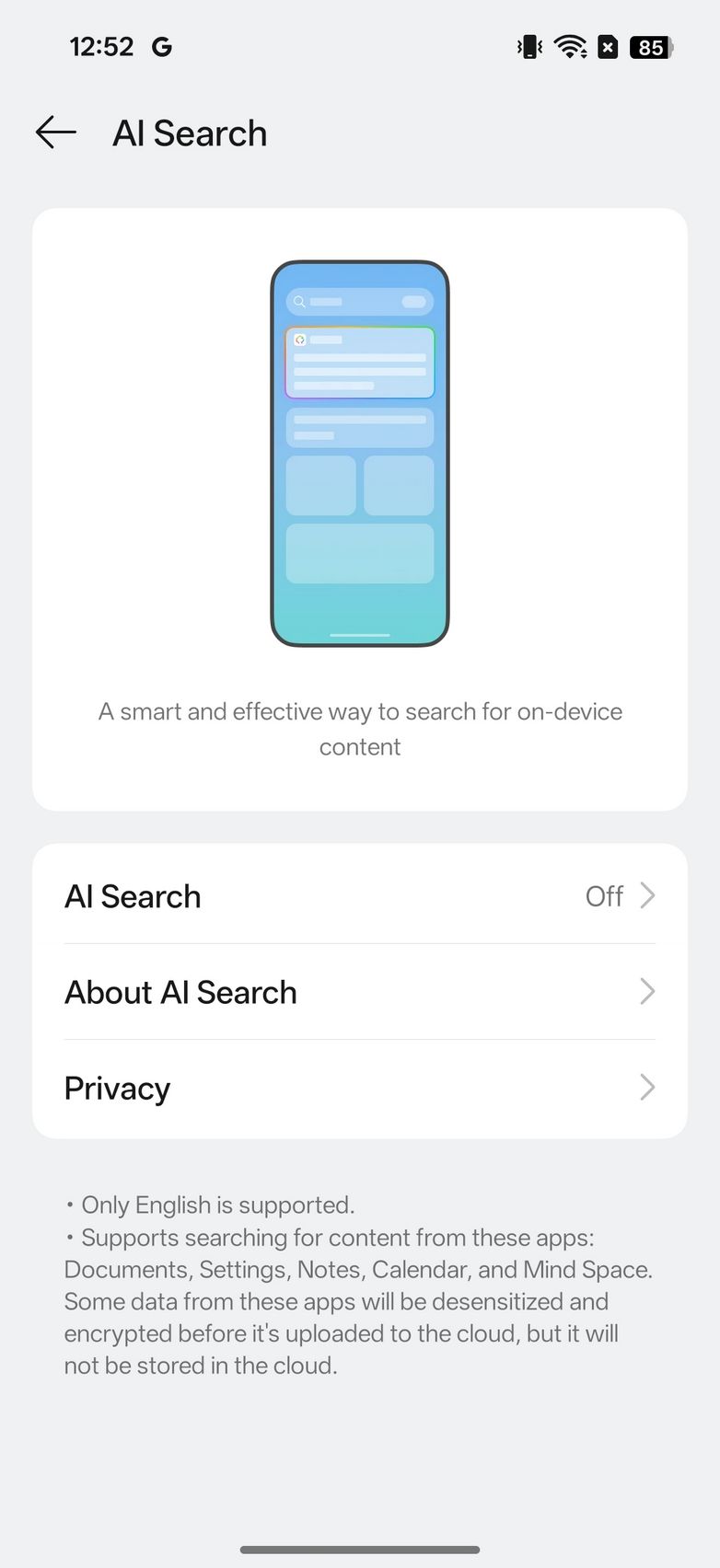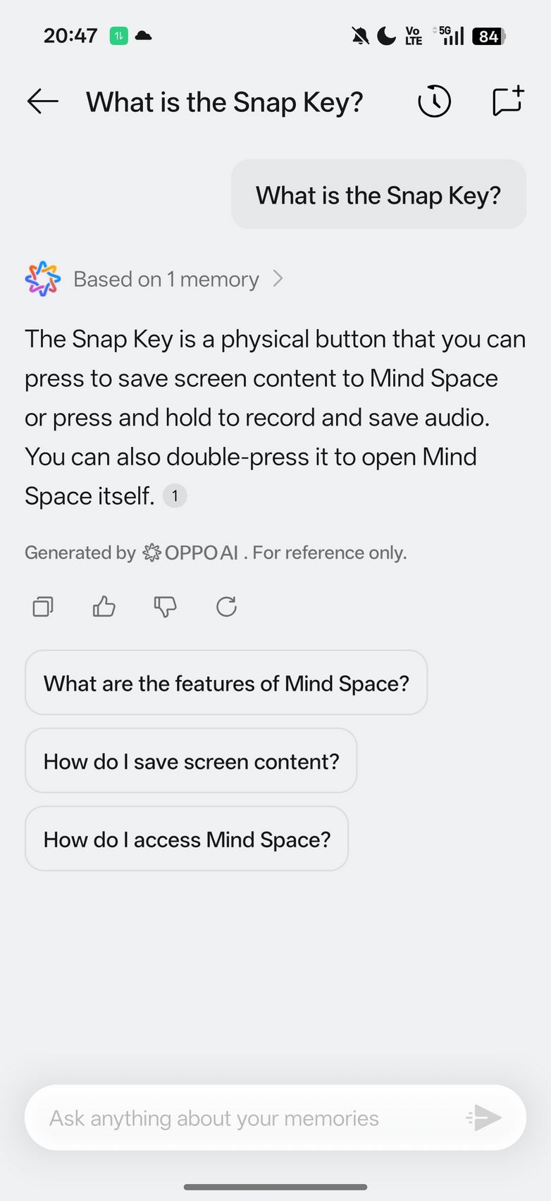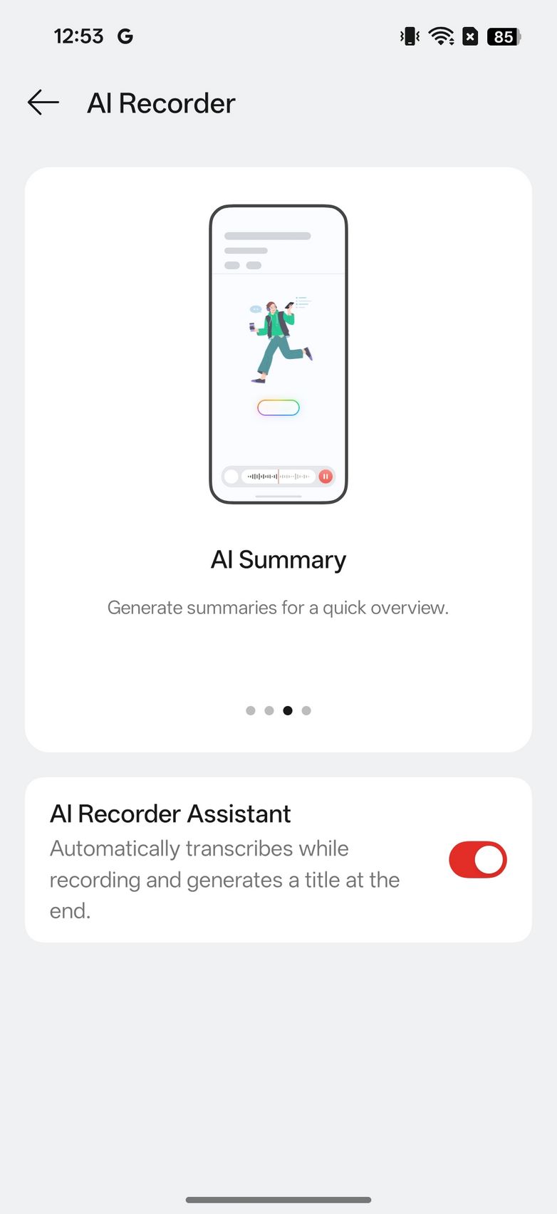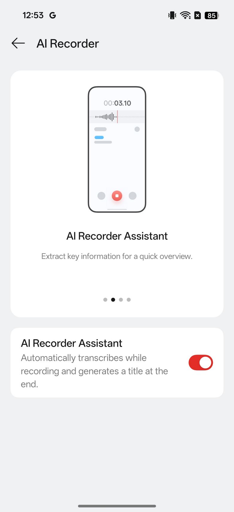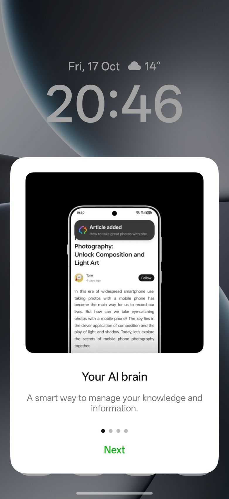 Butonul lateral îţi permite să capturezi informaţii utile, analizate şi introduse în AI Mind Space. Apeşi pe ecran scurt şi capturezi conţinutul de pe ecran, apeşi lung şi adaugi o notiţă vocală şi cu o dublă apăsare deschizi direct Mind Space. Iar tot ce ajunge acolo e "citit" de AI. Notiţa vocală e tradusă în română, pozele sunt descrise, datele unui zbor sau concert ţi se propun spre introducere în calendar.