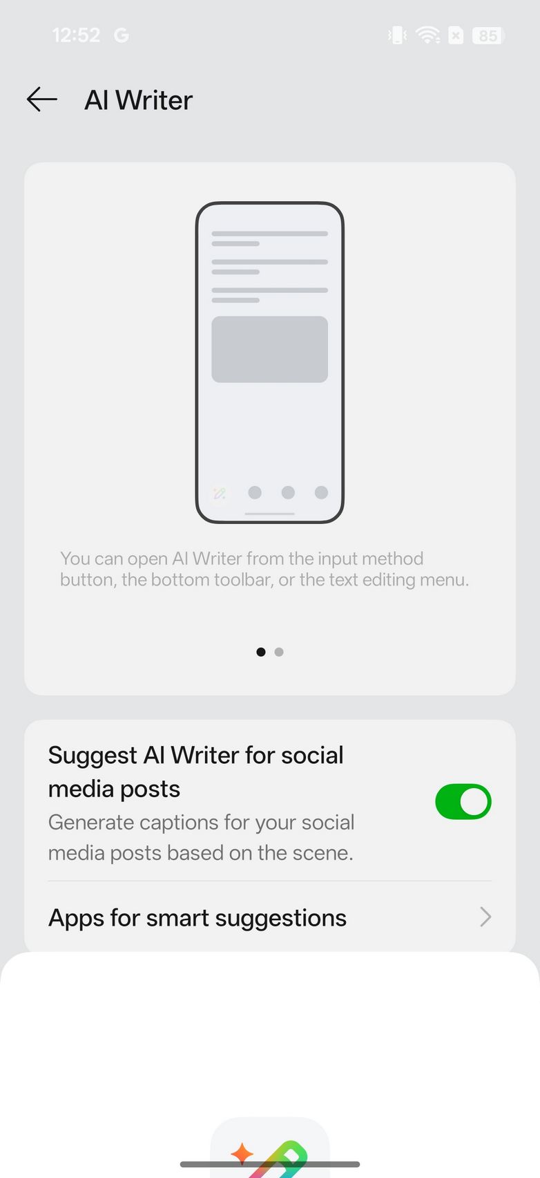 Îmi place că OPPO a pus o funcţie vitală pentru mine aici: acele buline pe ecran care se mişcă atunci când eşti în maşină, pentru a preveni răul de maşină. Eu cam sufăr de asta, mai ales când citesc ceva pe ecran şi mai ales în maşinile electrice. Bulinele ajută creierul să se alinieze cu ceea ce simţi când se mişca maşina.