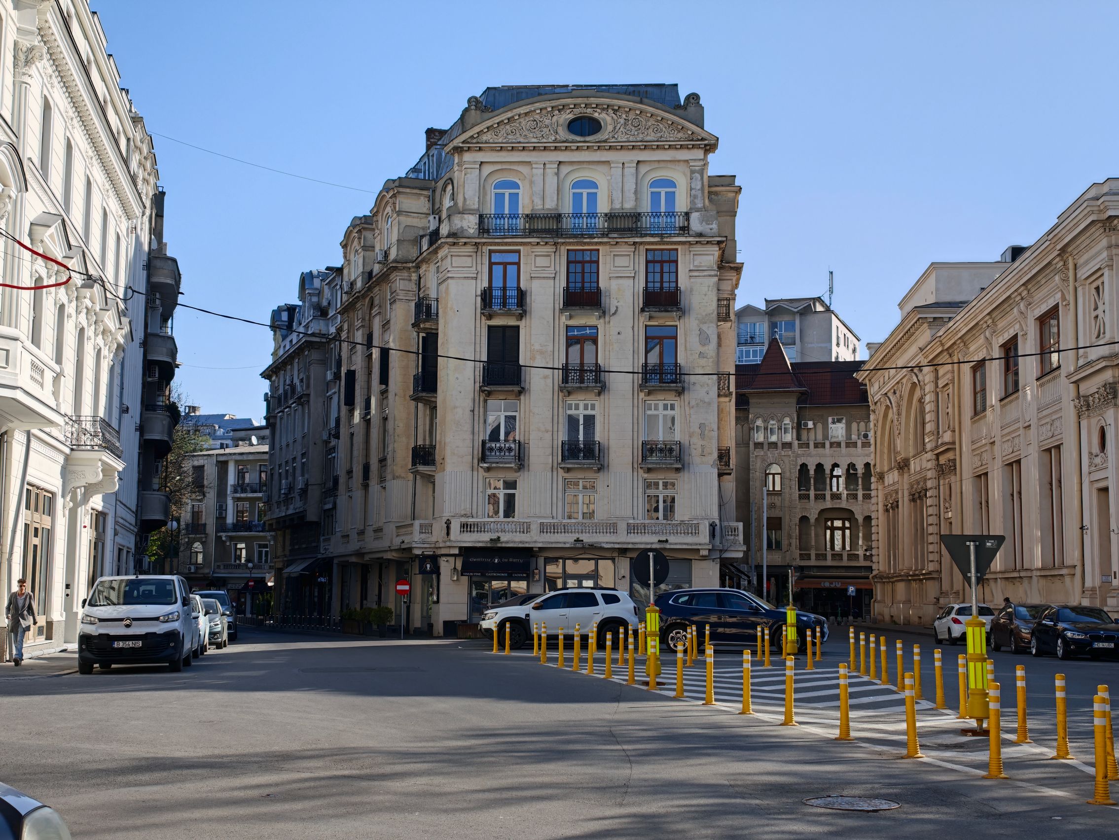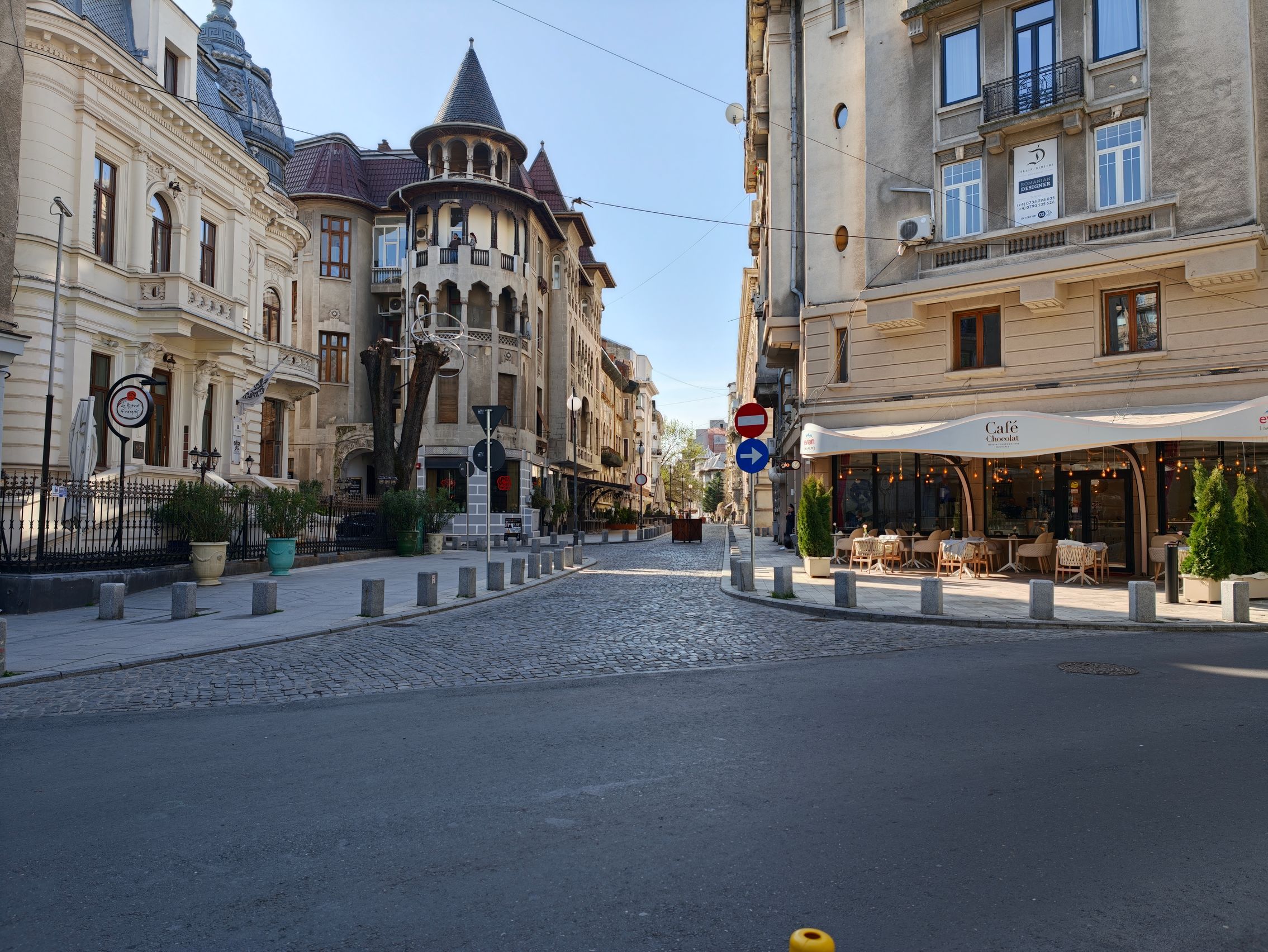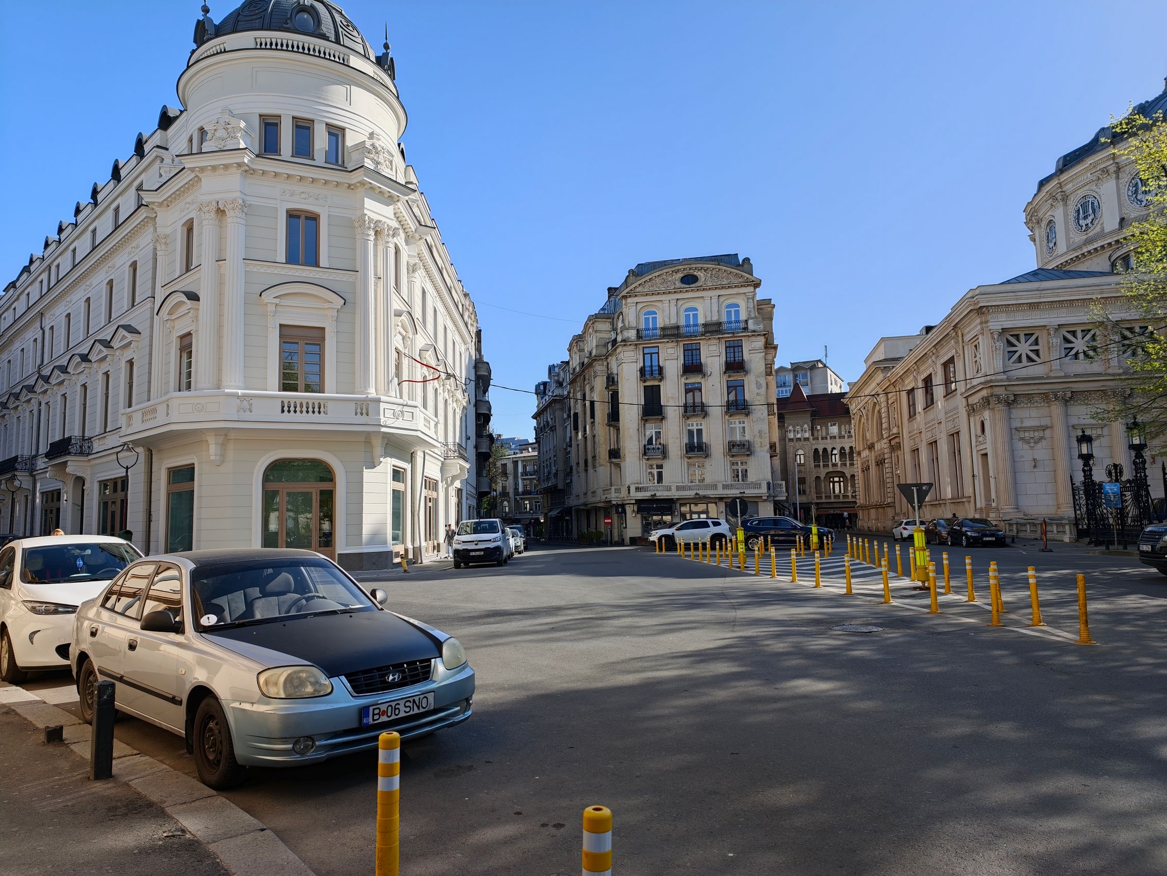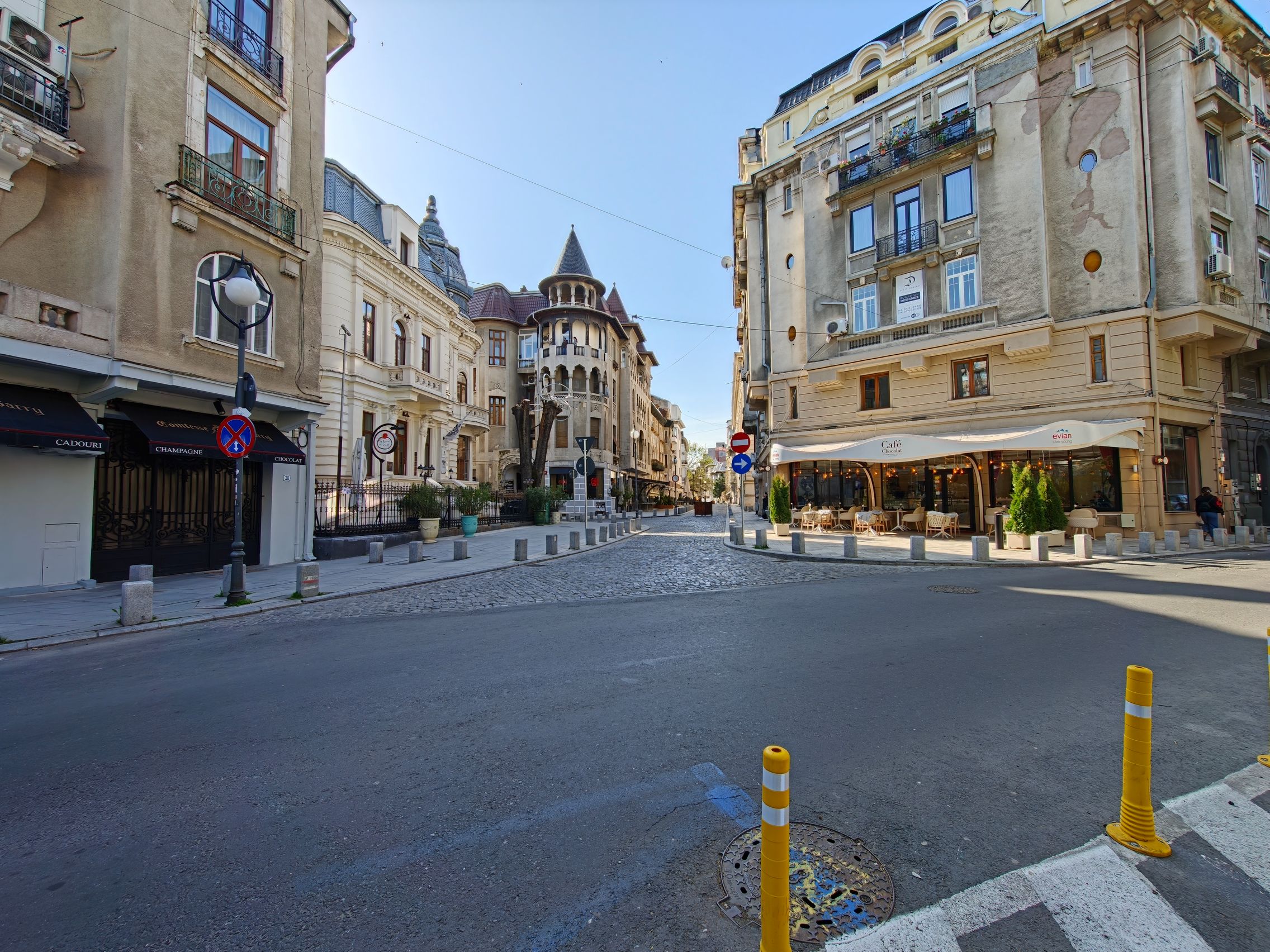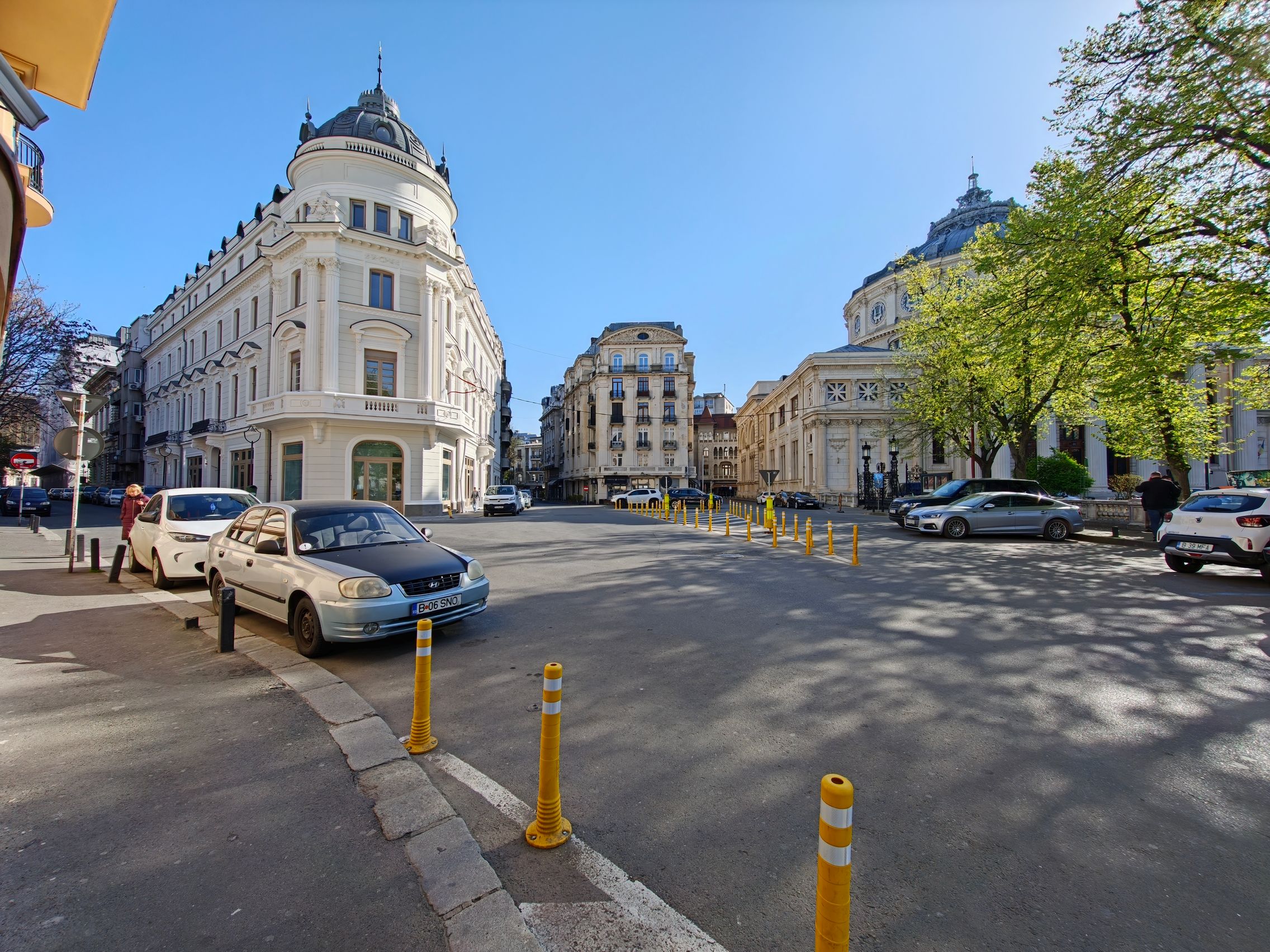 Are notă de trecere și la focalizarea pe decorațiile cu lămâi și fundal. Un alt test de zoom a fost făcut pe Ateneu și sunt tare mulțumit de ce văd aici. Spre final de tură foto/video am mai filmat și o străduță care avea un vibe parizian, cu multă vegetație, copaci, un cer albastru în zare și parcă optimizând mai bine pașii făcuți.