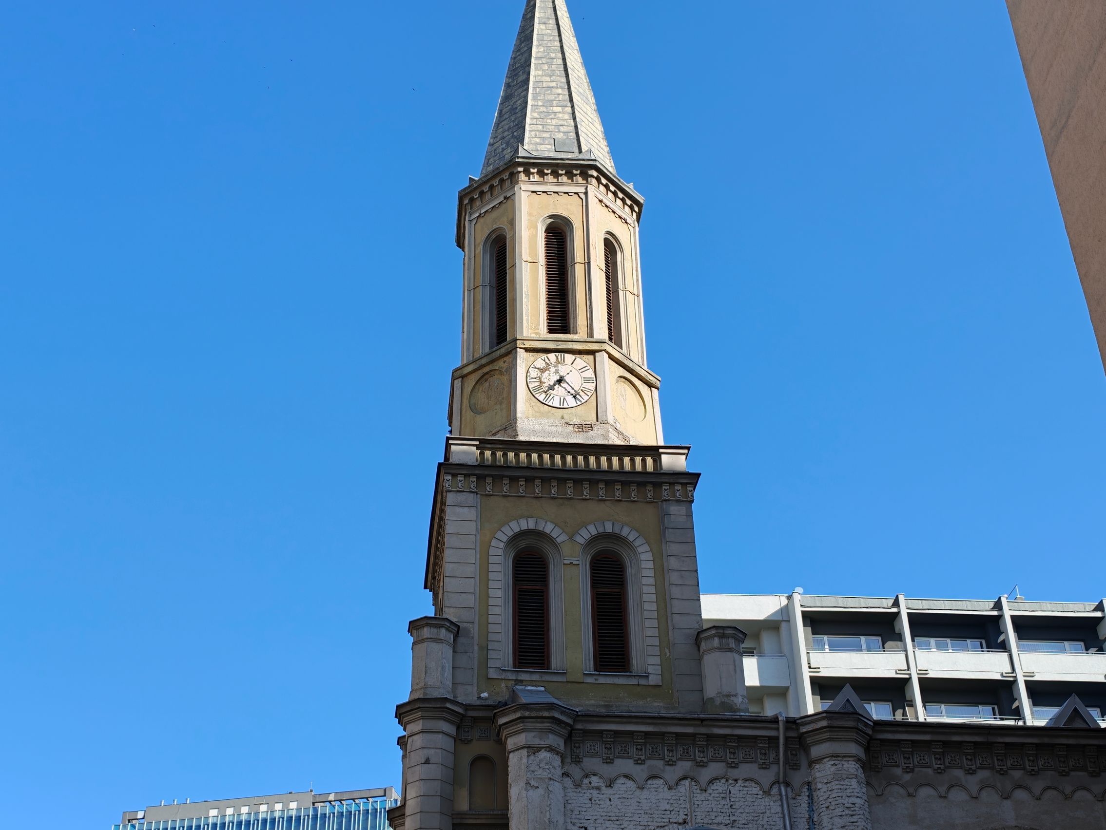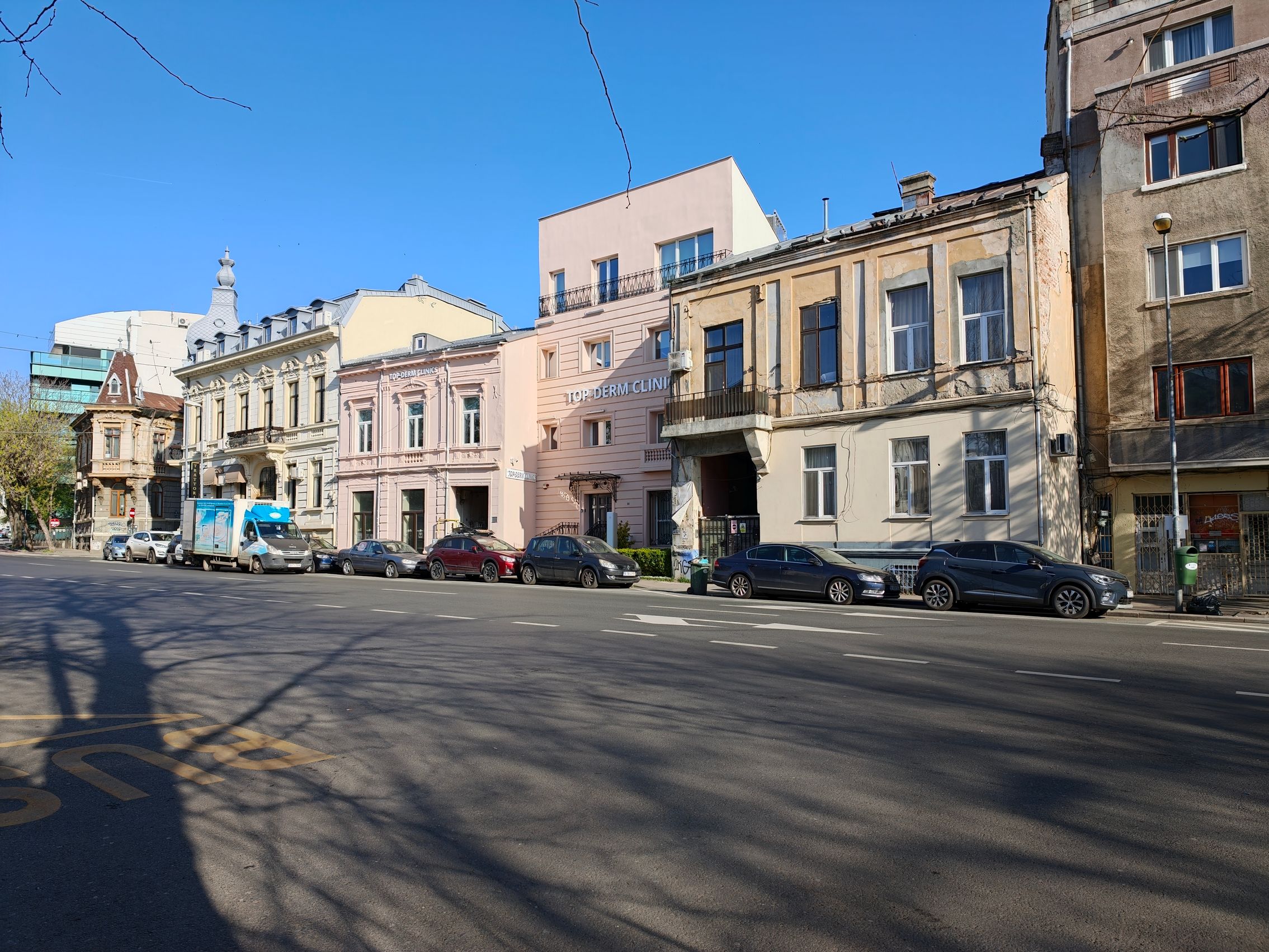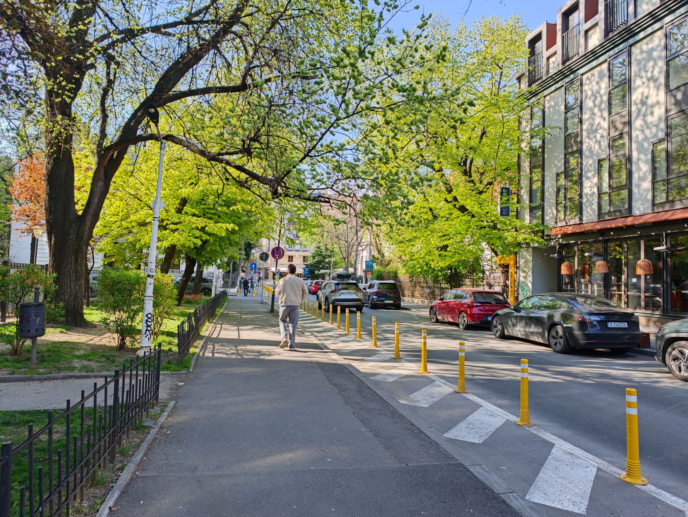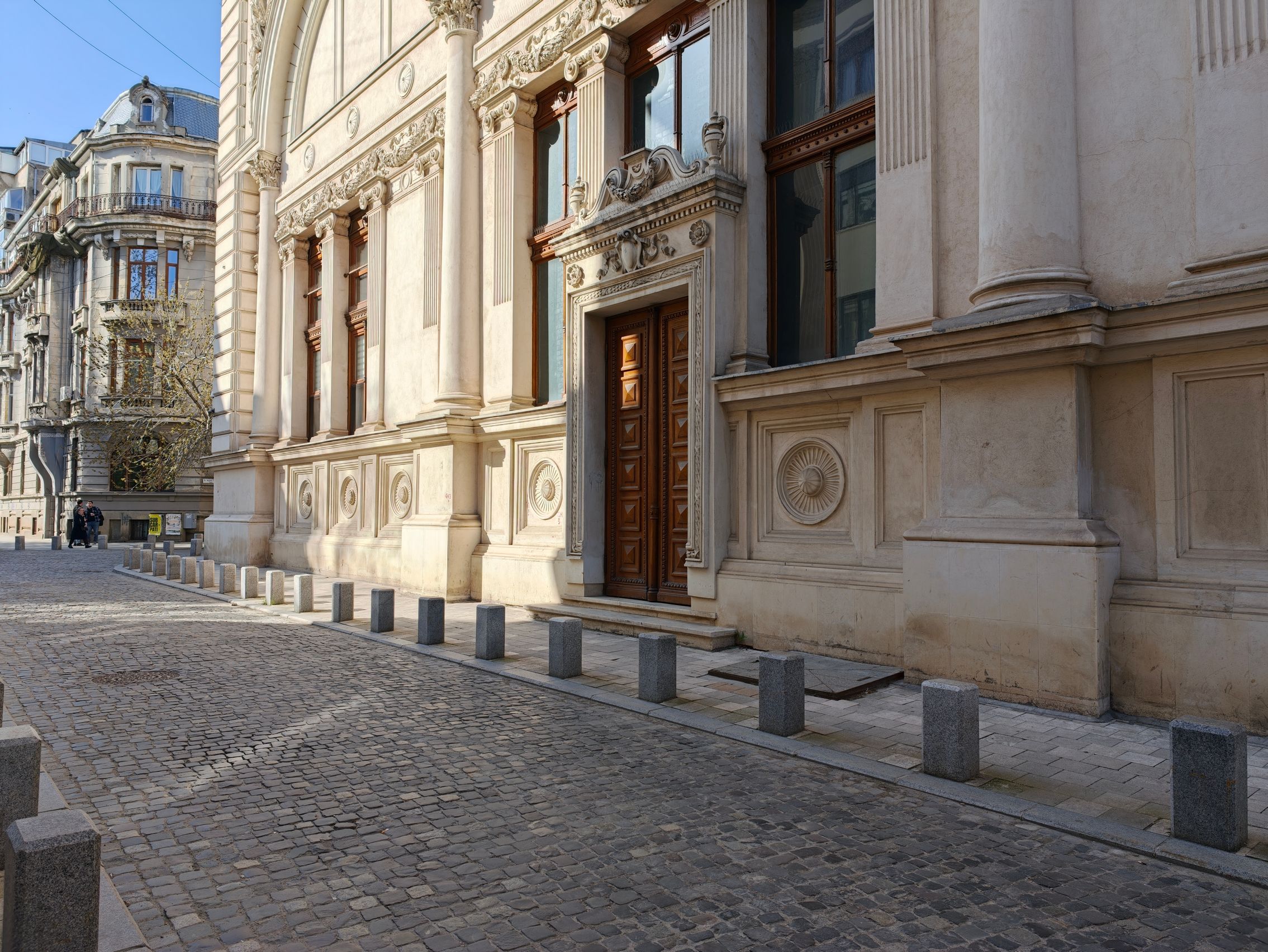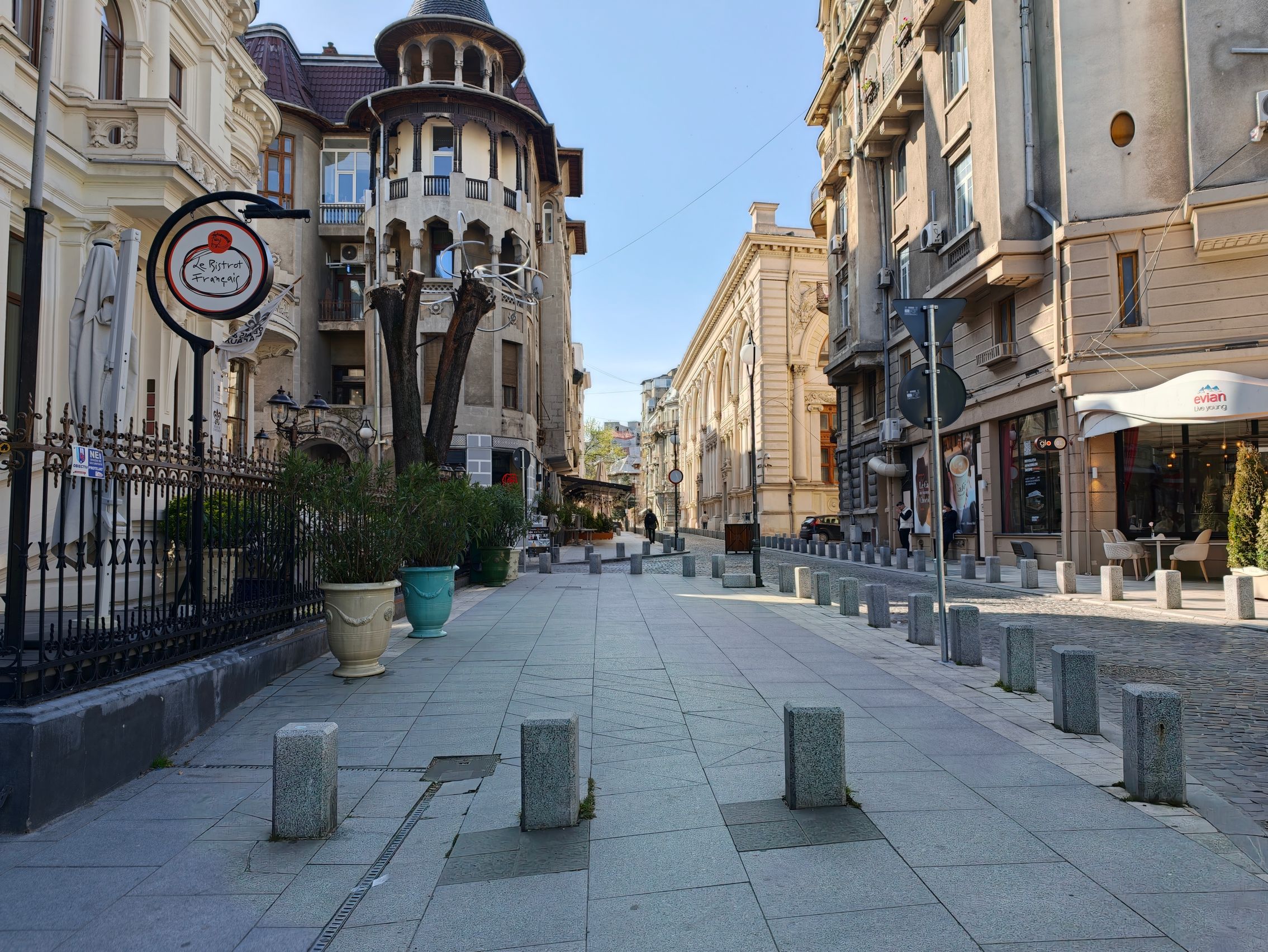 Are notă de trecere și la focalizarea pe decorațiile cu lămâi și fundal. Un alt test de zoom a fost făcut pe Ateneu și sunt tare mulțumit de ce văd aici. Spre final de tură foto/video am mai filmat și o străduță care avea un vibe parizian, cu multă vegetație, copaci, un cer albastru în zare și parcă optimizând mai bine pașii făcuți.