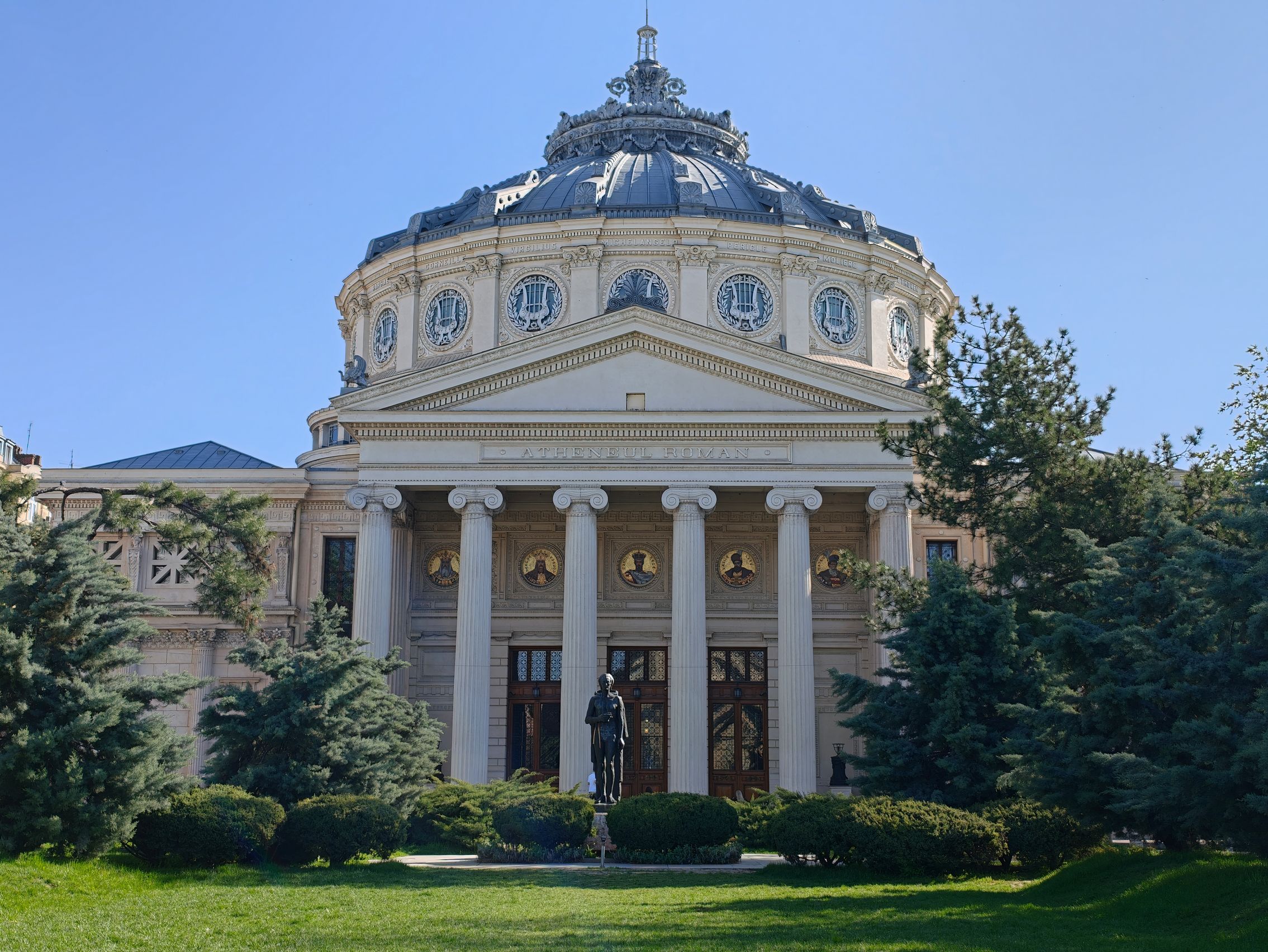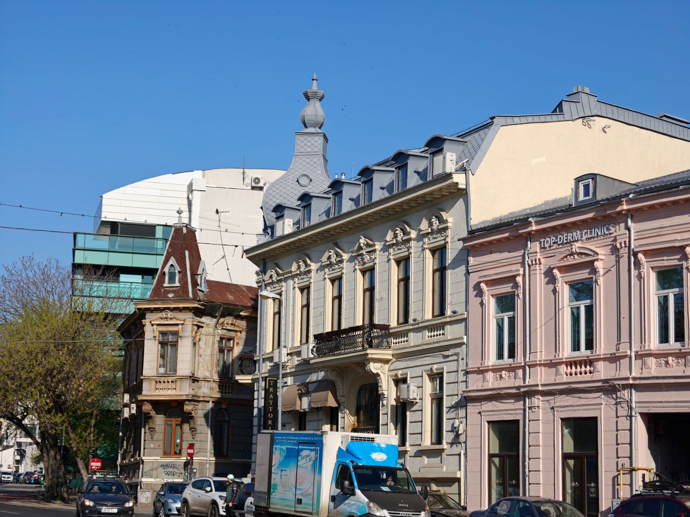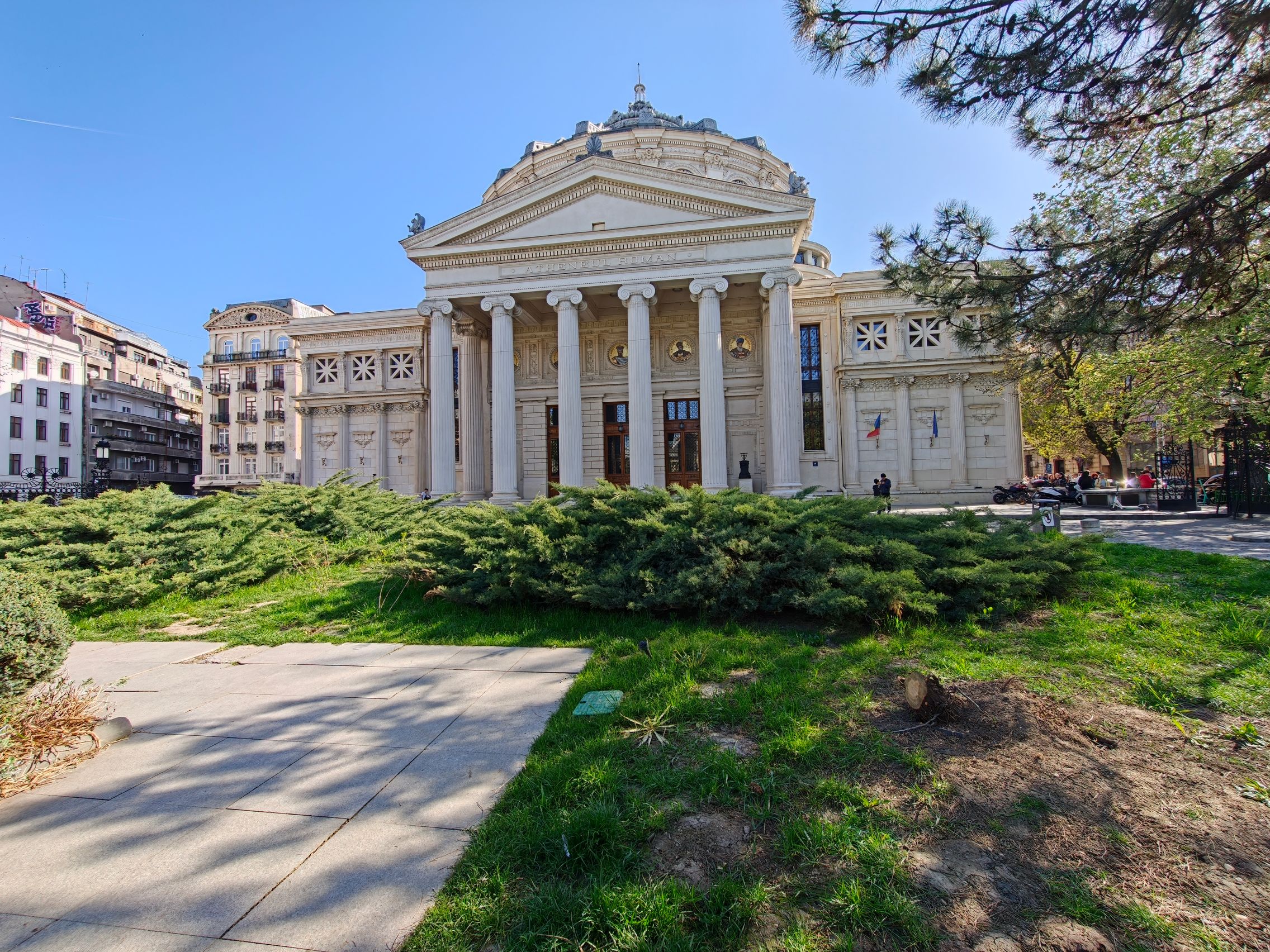 Cel mai mult simt că am folosit 10x-ul, nu de alta este și optic, iar rezultatele vorbesc de la sine. Mă uit la acele vaze cu flori care arată magnific și cu depth of field natural. Am pus ochii și pe clădirile din jurul parcului Cișmigiu, cu arhitectură care mai de care și decorații cum rar mai vezi pe blocuri noi. Am văzut vopseaua scorojită a ceasului catedralei, m-am apropiat de coloane „înflorate" din beton și nici Ateneul nu a scăpat de zoom, cu detalii senzație chiar și la nivel mare.