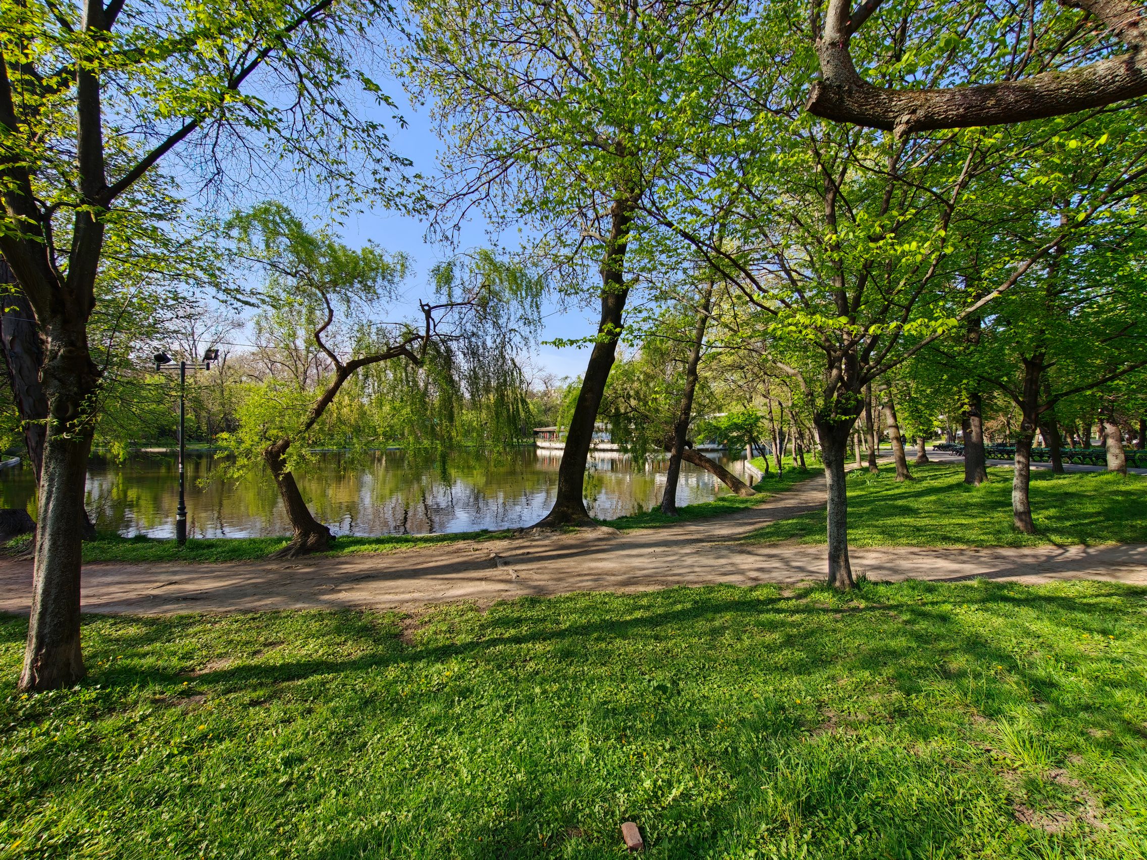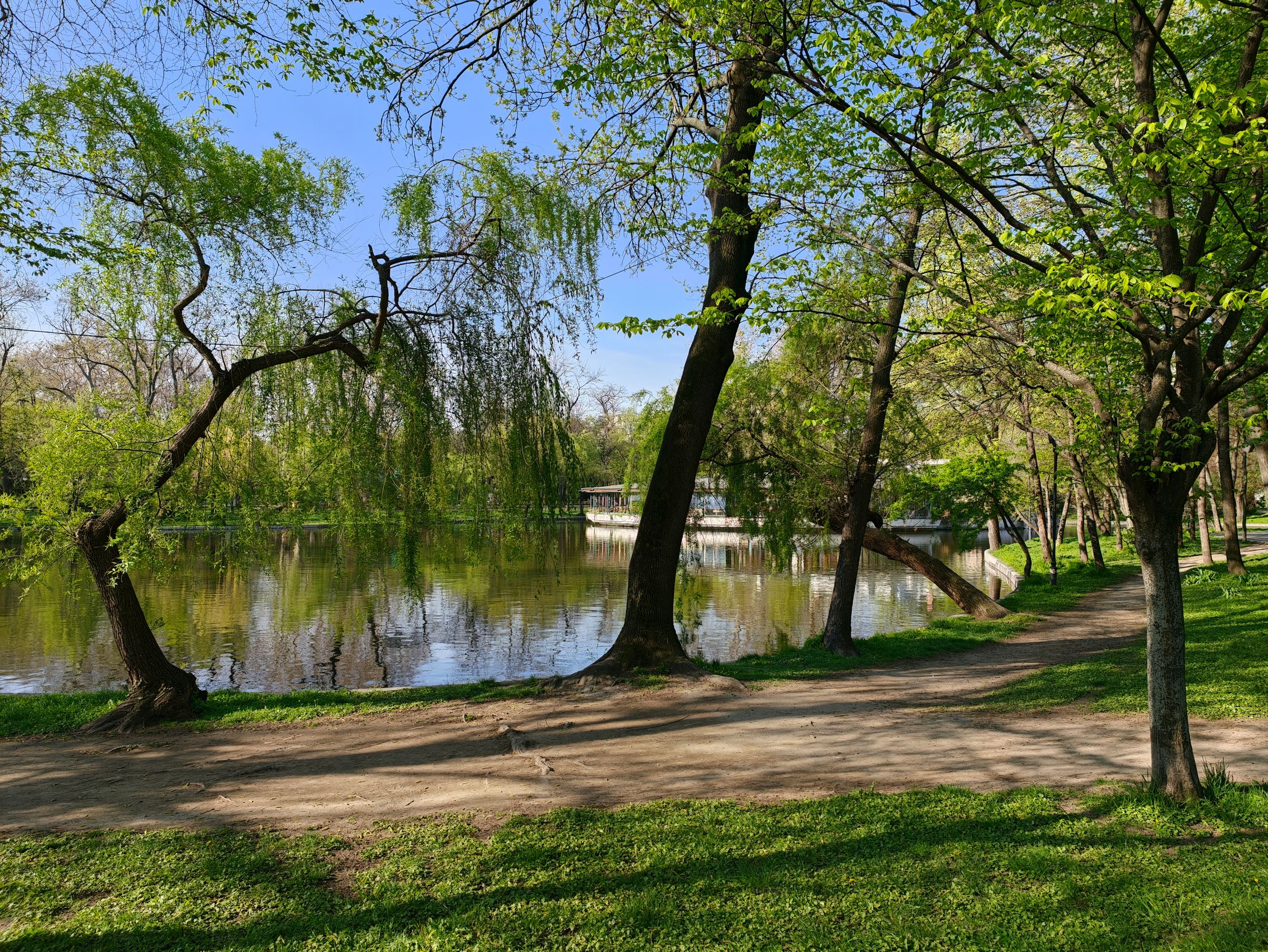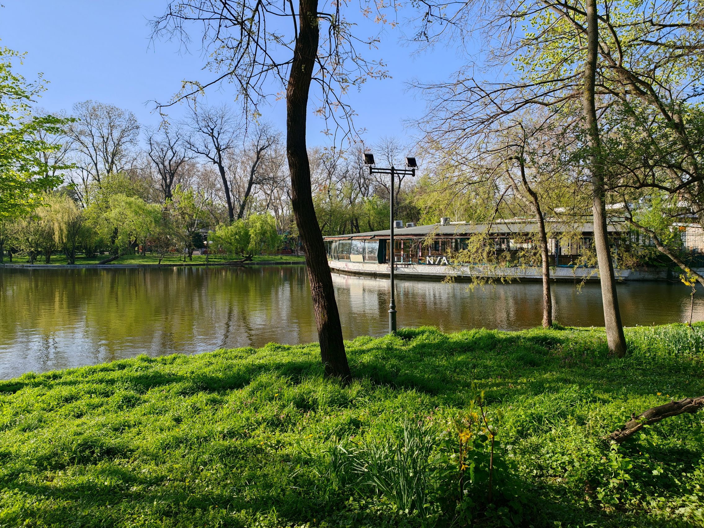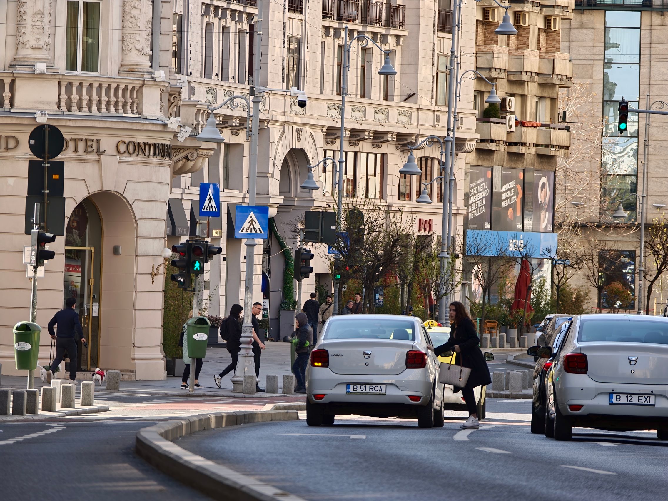 Vedem și vegetația din Cișmigiu, parcă o idee mai sus ca vibranță pe verdele de jos, dar fără exagerare. Sunt savuroase reflexiile din lac, umbrele copacilor și simt că această cameră a prins și liniștea de dimineață, cu plimbări agale prin parc și păsărele care abia se trezeau. Au fost prinse 1:1 și culorile unor grafitti de lângă parc, mai trecute prin timp și ploi. Prin zona bună de lângă hotel am văzut un Mercedes AMG colantat într-un verde care atrăgea toate privirile și la o aruncătură de băț distanță era și un Aston Martin într-un verde turcoaz ce strălucea.