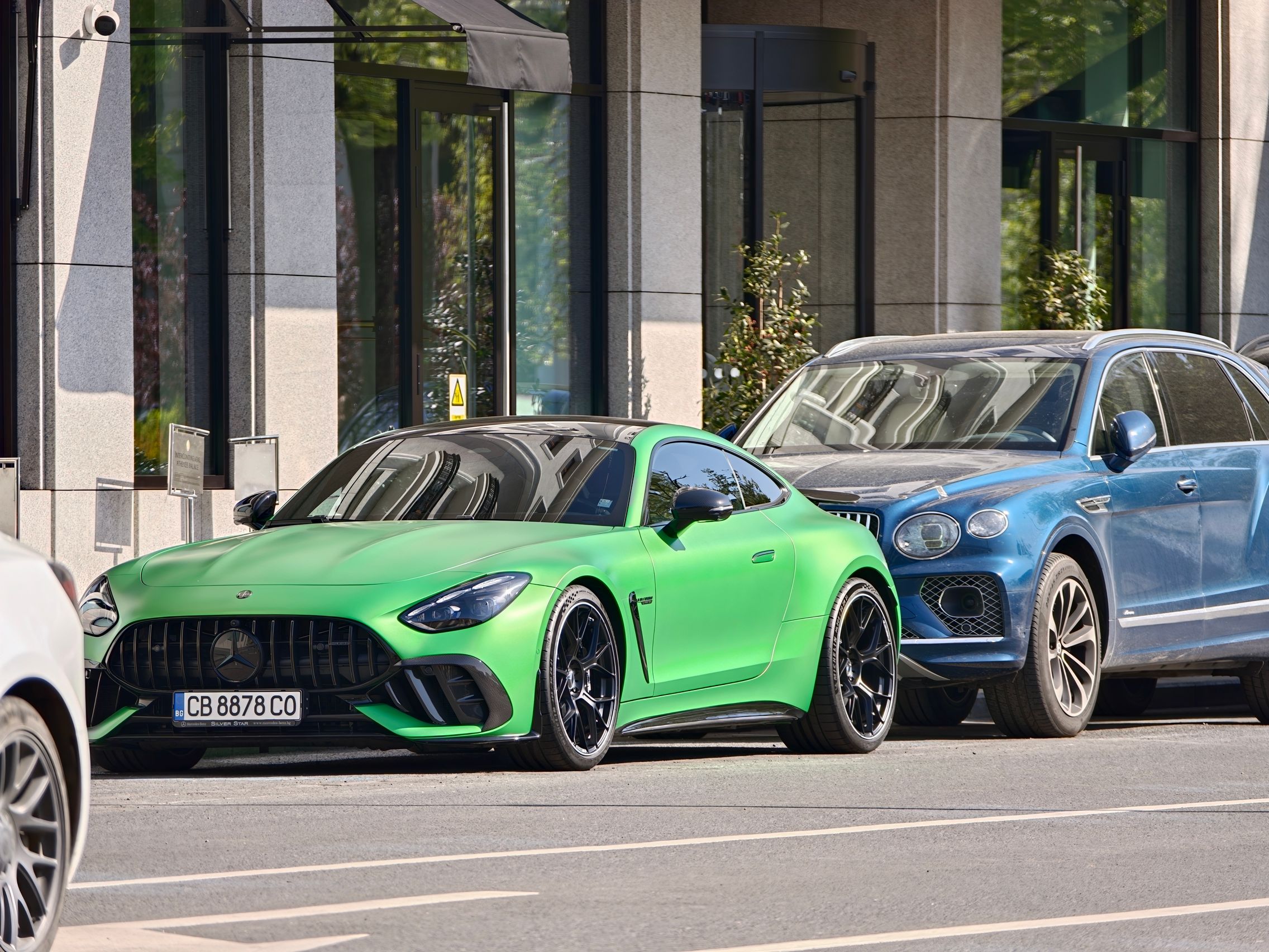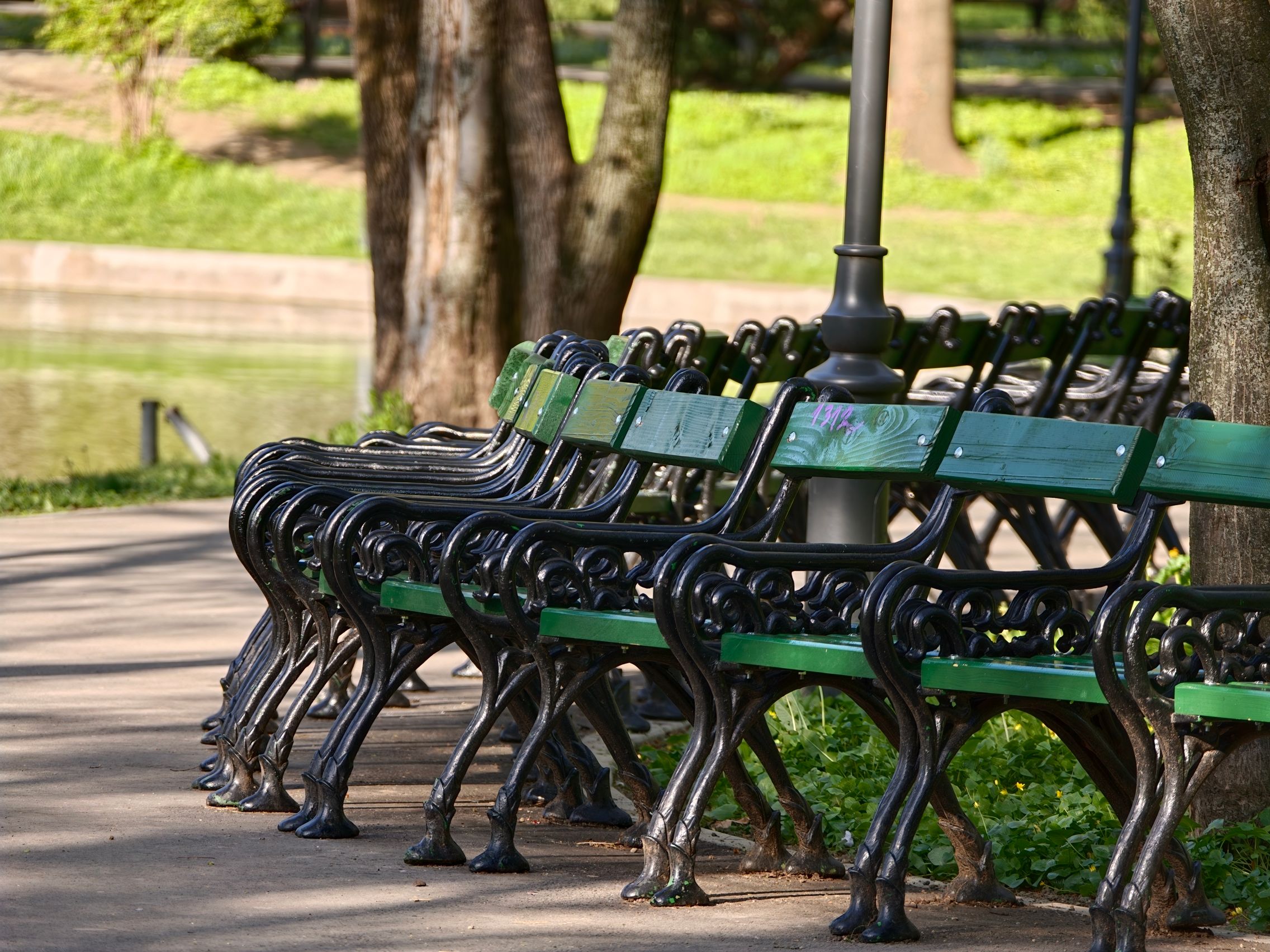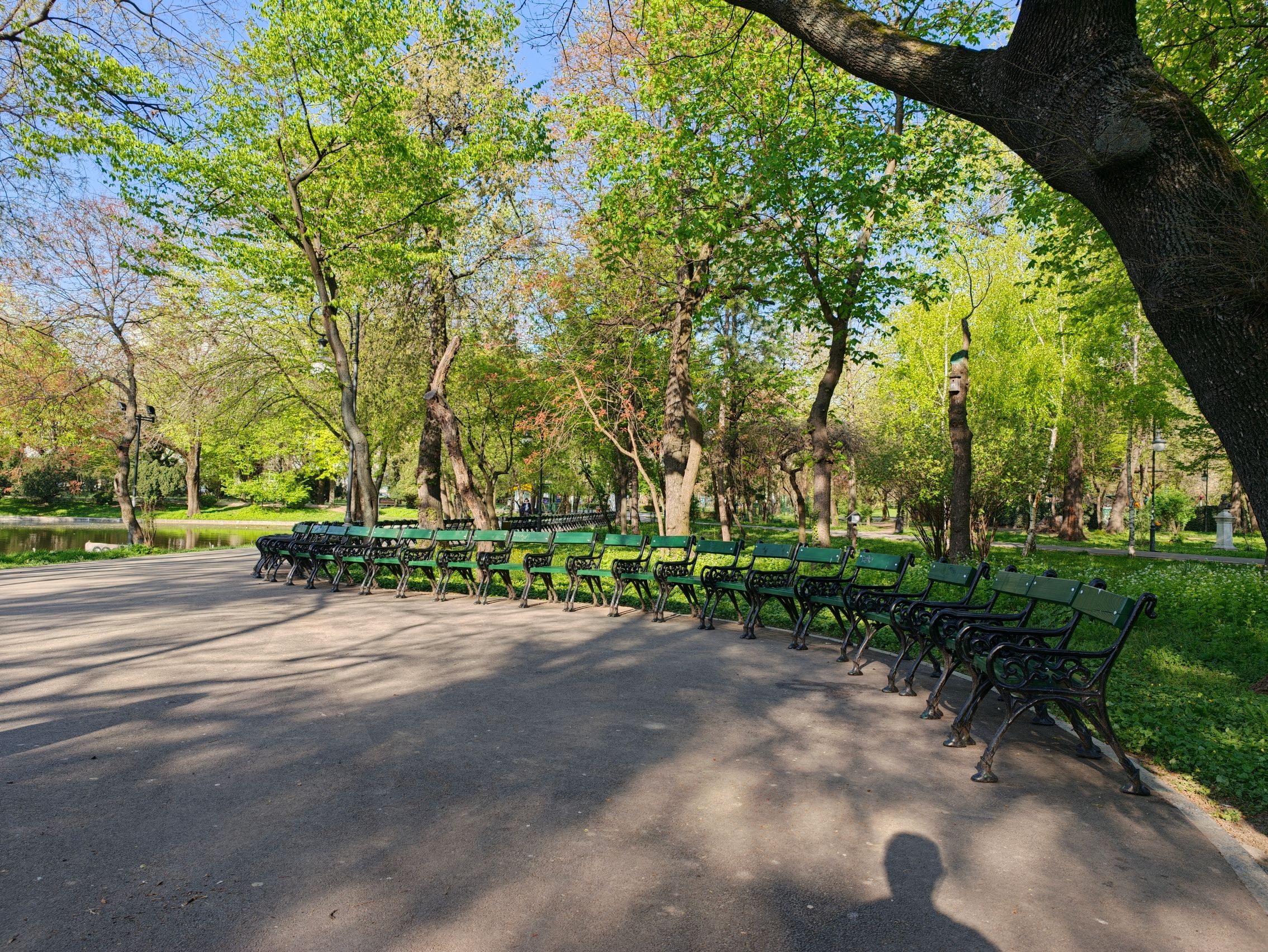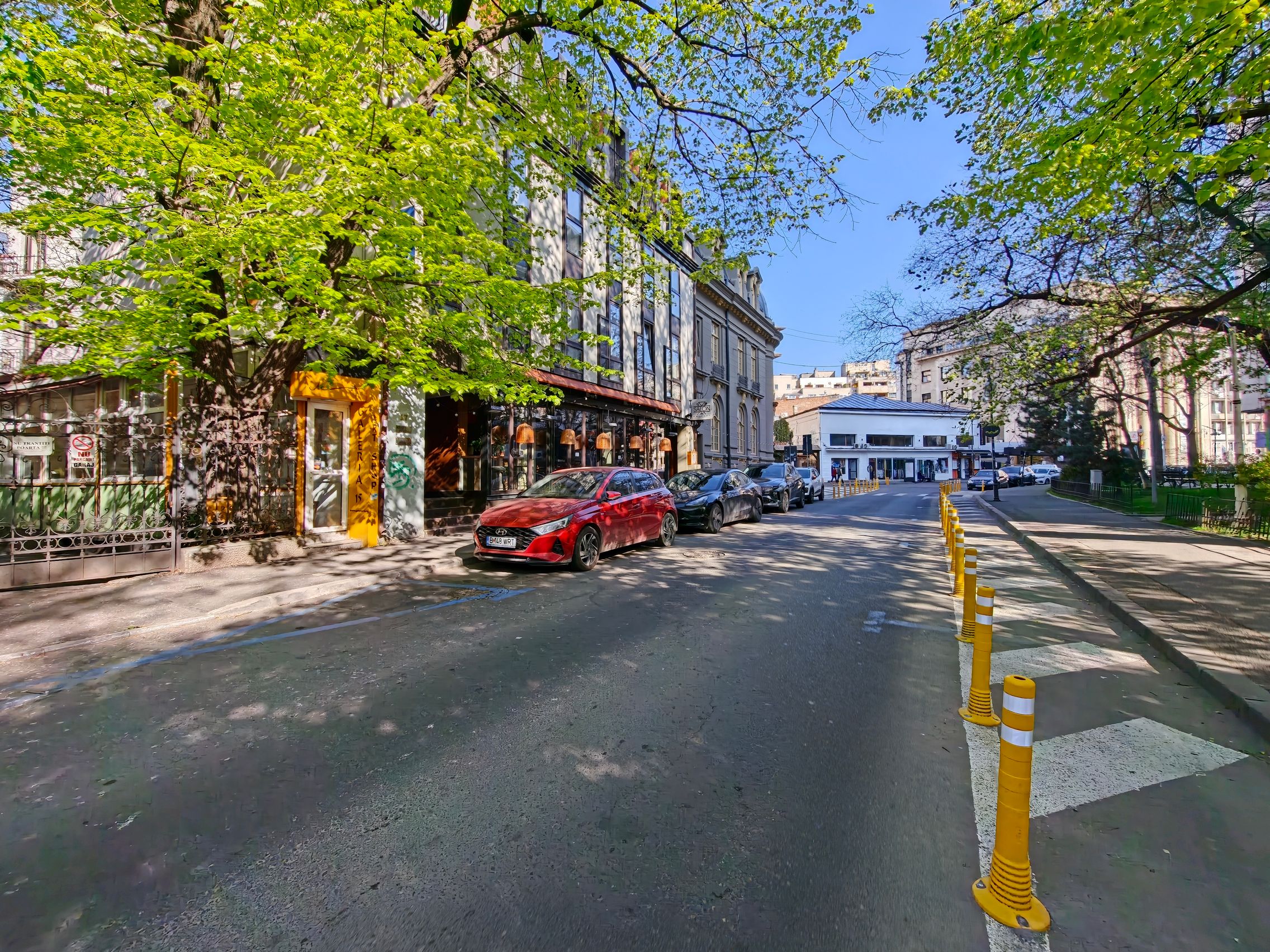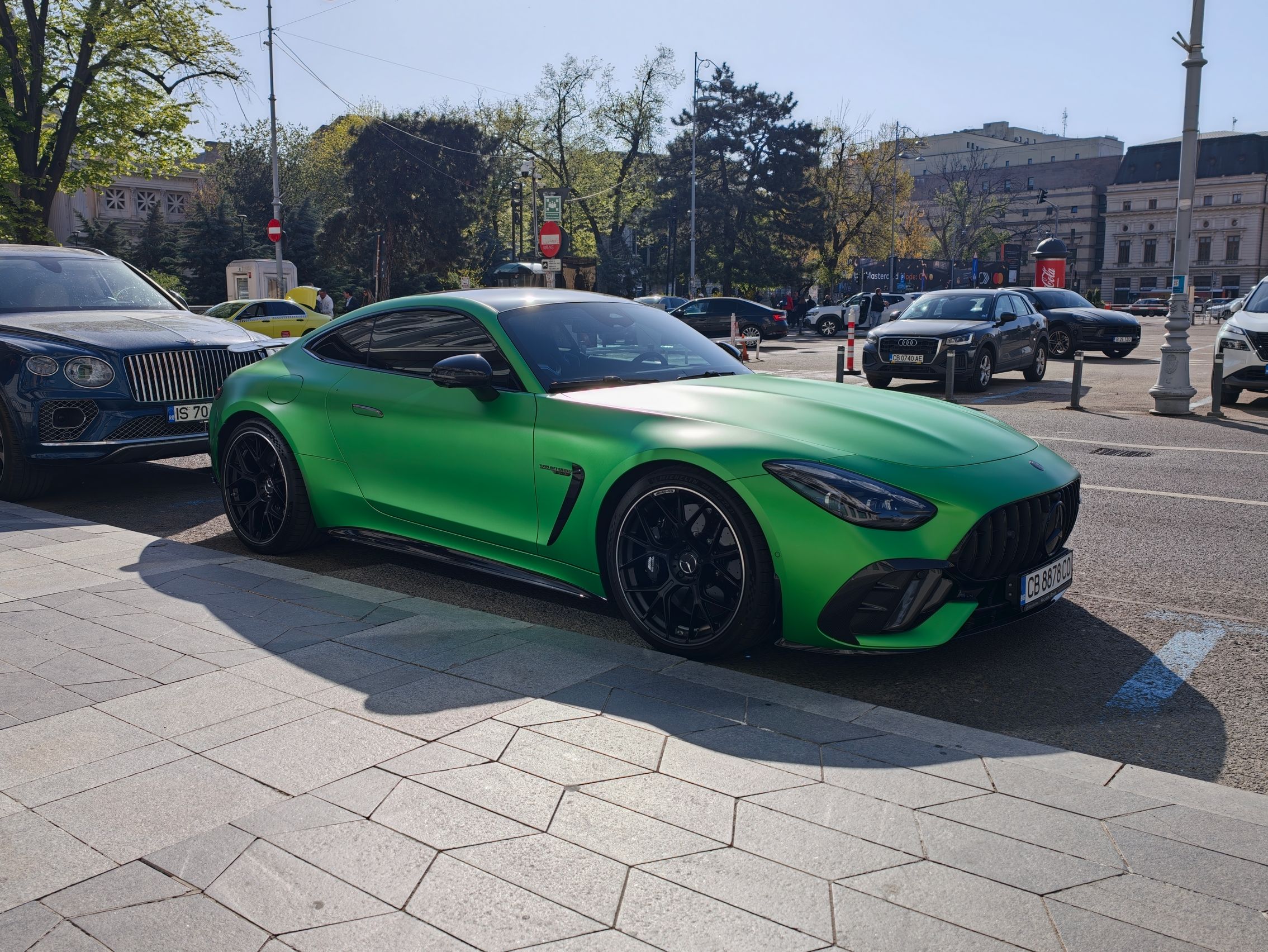 Vedem și vegetația din Cișmigiu, parcă o idee mai sus ca vibranță pe verdele de jos, dar fără exagerare. Sunt savuroase reflexiile din lac, umbrele copacilor și simt că această cameră a prins și liniștea de dimineață, cu plimbări agale prin parc și păsărele care abia se trezeau. Au fost prinse 1:1 și culorile unor grafitti de lângă parc, mai trecute prin timp și ploi. Prin zona bună de lângă hotel am văzut un Mercedes AMG colantat într-un verde care atrăgea toate privirile și la o aruncătură de băț distanță era și un Aston Martin într-un verde turcoaz ce strălucea.