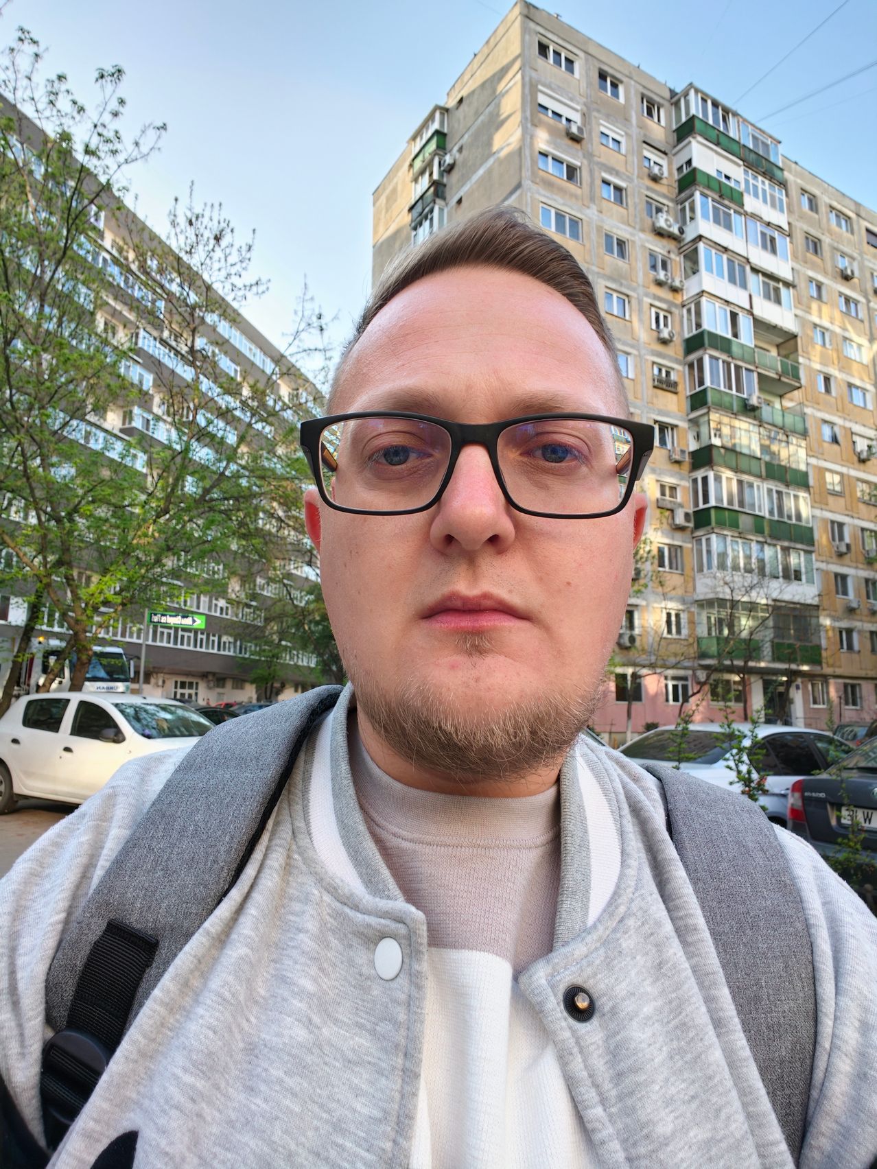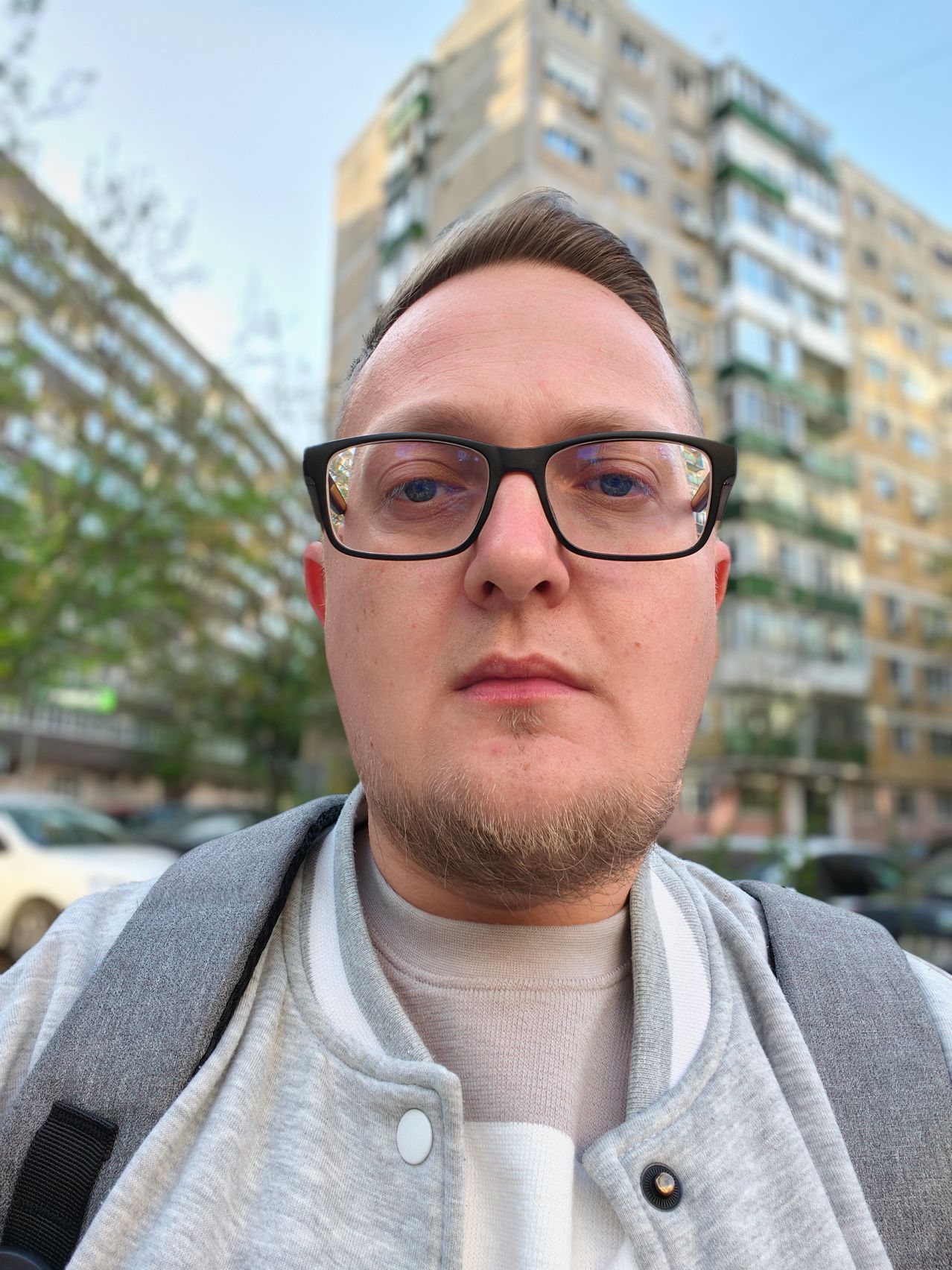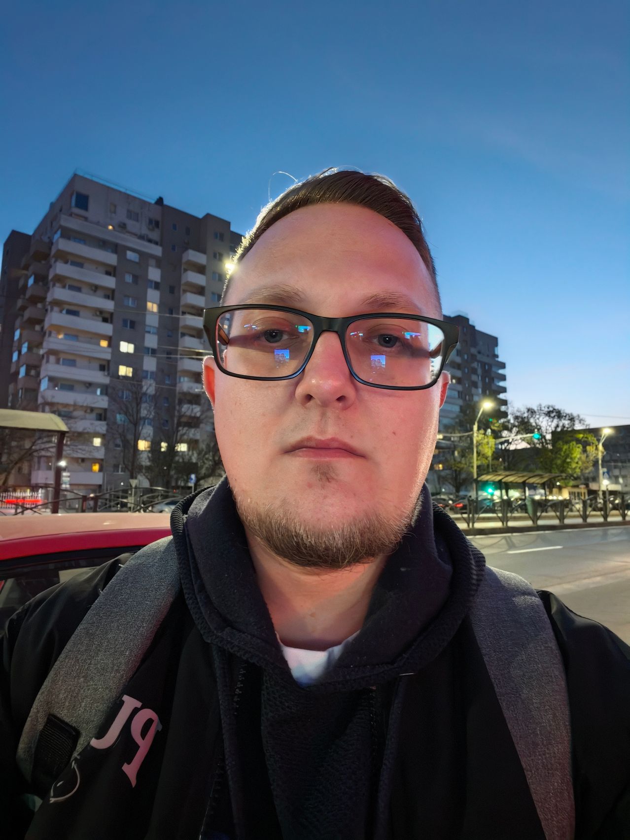 Așadar la nivel de captură selfie lucrăm cu o cameră de 50 mpx ce folosește senzor Samsung JN5 de 1/2.75", focală de 21mm, deschidere f/2.4 și ceva important AF. Primele capturi le-am făcut pe înserate și sunt foarte mulțumit de ce am prins, având și suficientă lumină de partea mea.