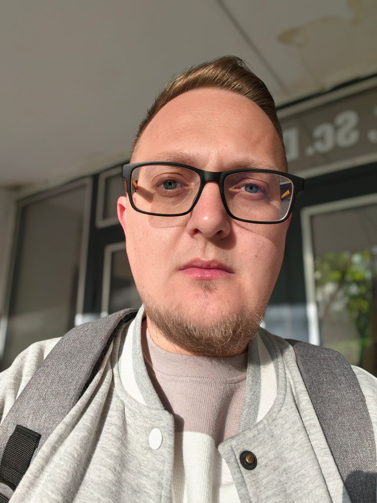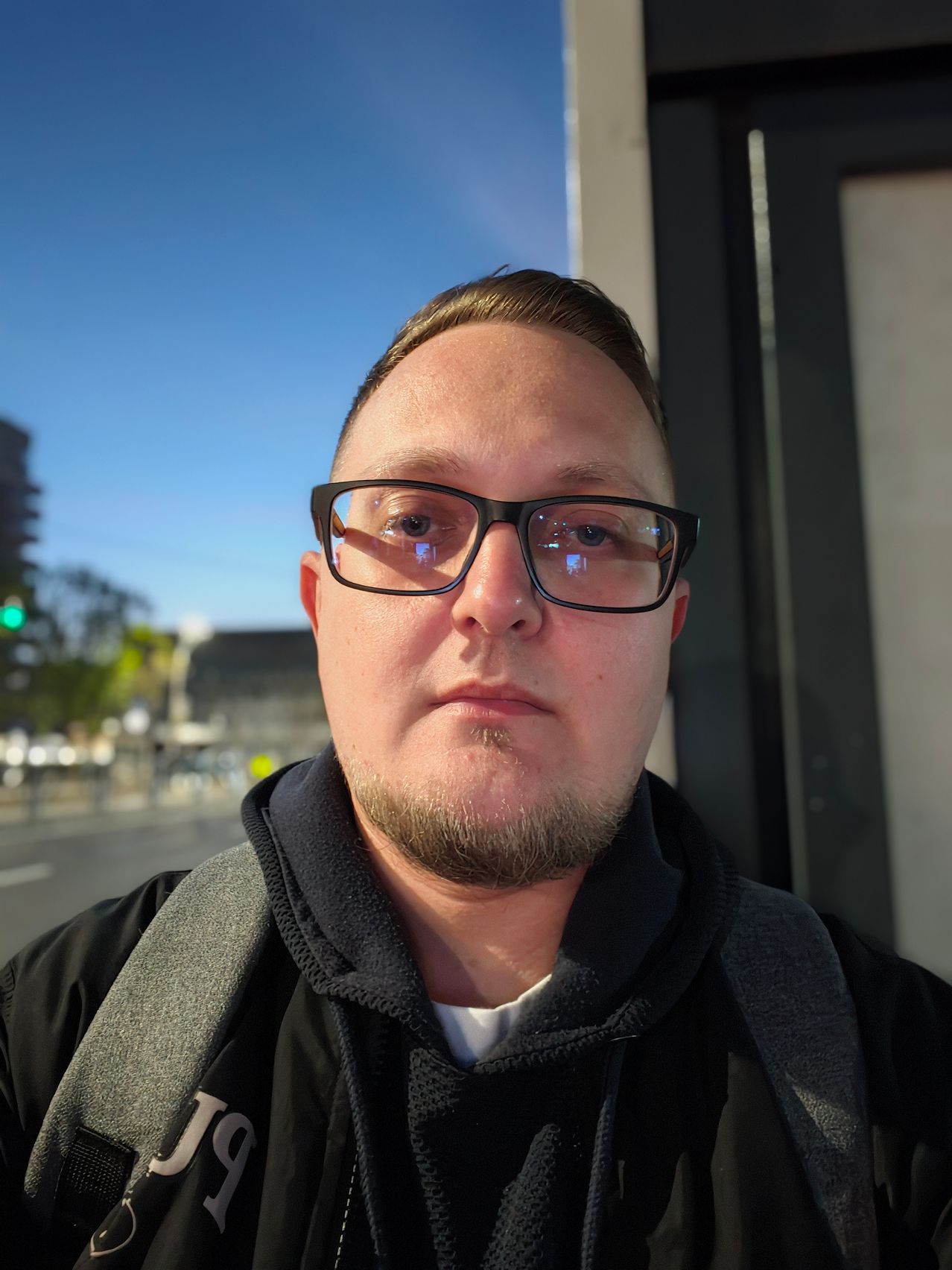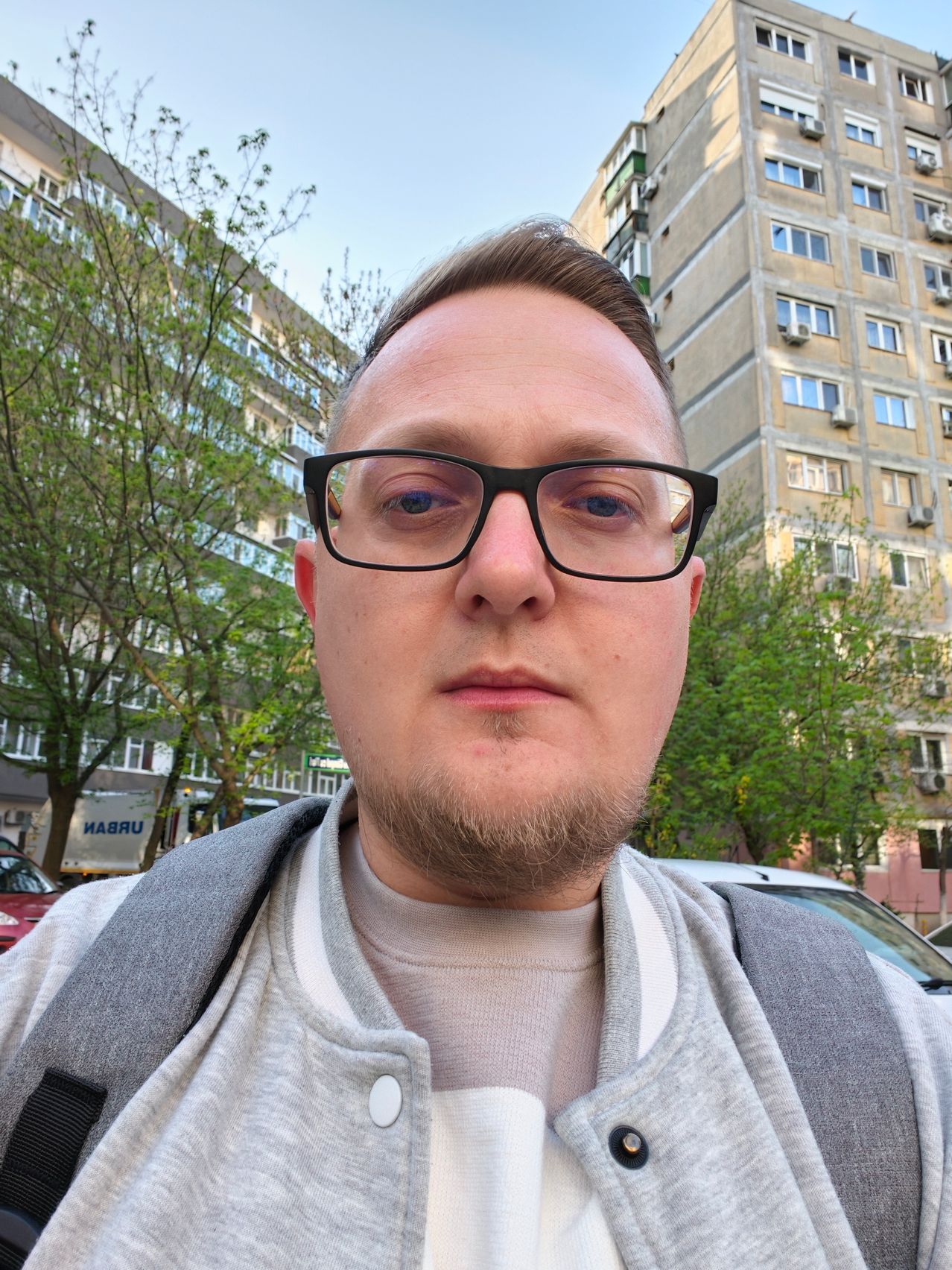 Așadar la nivel de captură selfie lucrăm cu o cameră de 50 mpx ce folosește senzor Samsung JN5 de 1/2.75", focală de 21mm, deschidere f/2.4 și ceva important AF. Primele capturi le-am făcut pe înserate și sunt foarte mulțumit de ce am prins, având și suficientă lumină de partea mea.