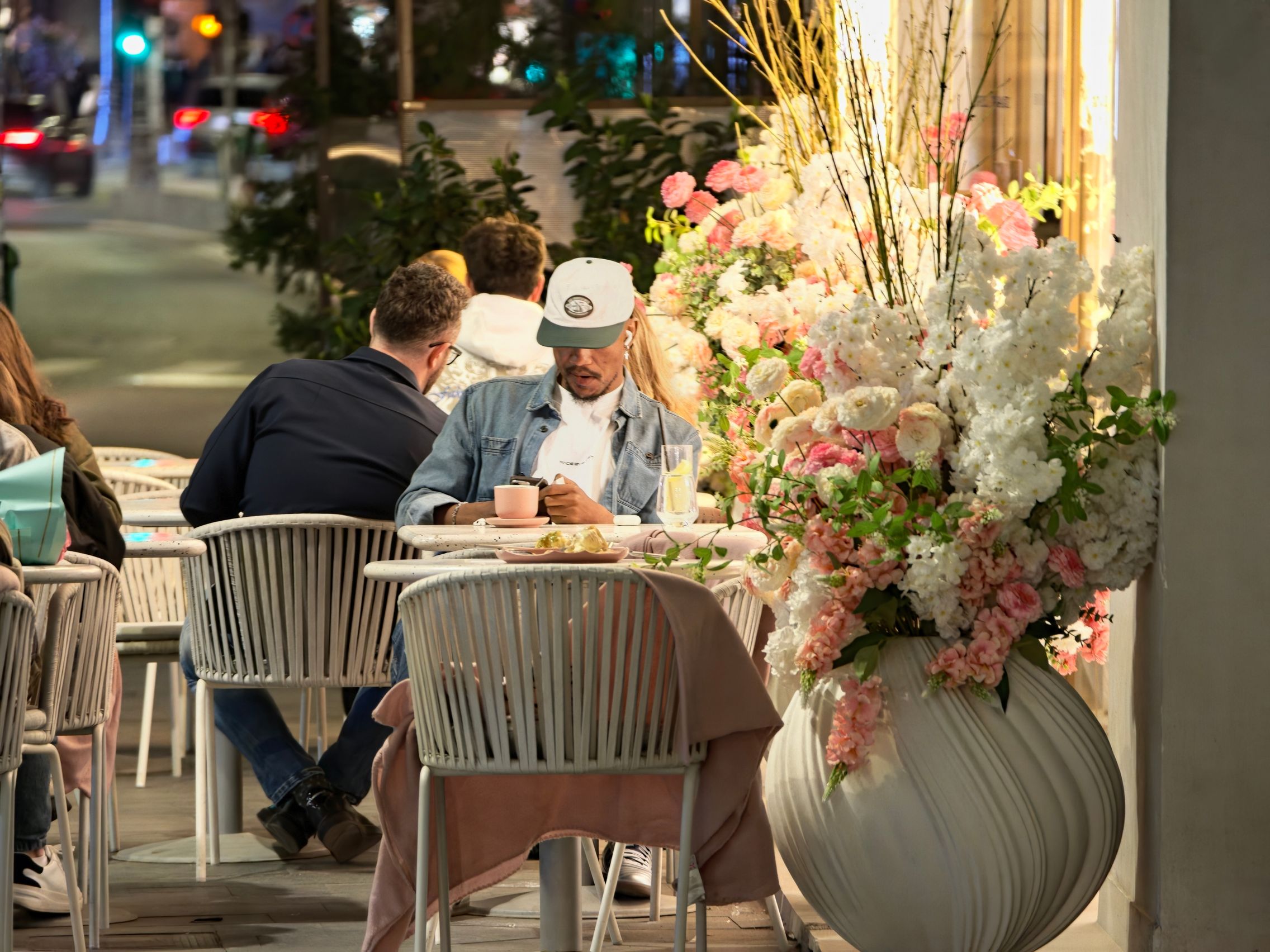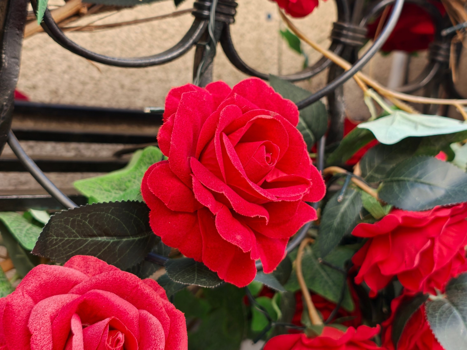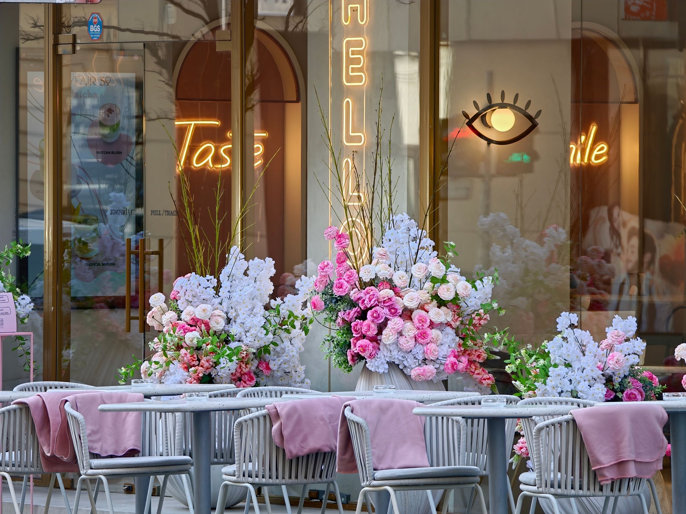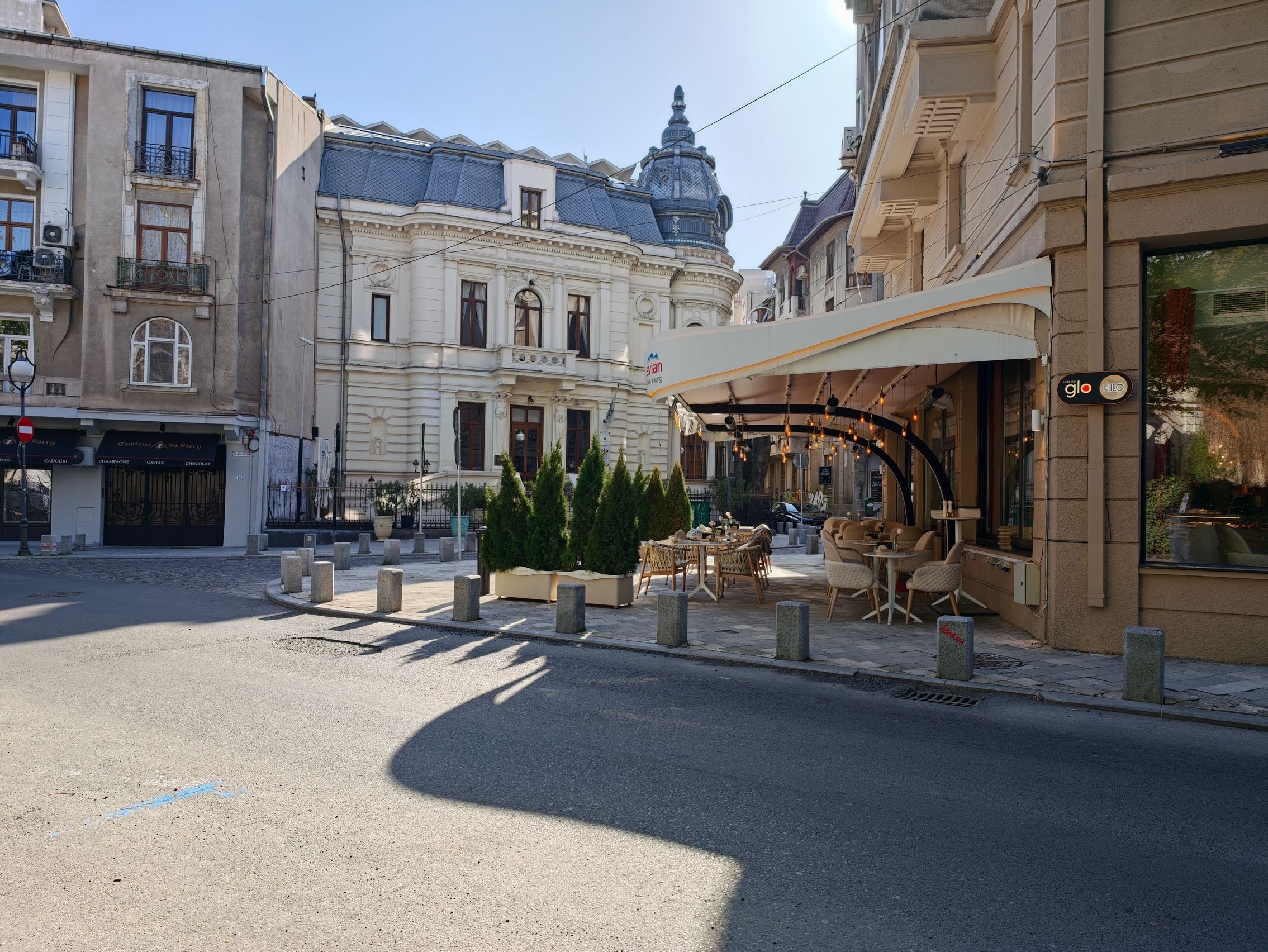 Mă întorc la clousep pentru că fotografia cu acea floare pe masa de cafenea este prea arătoasă pentru a fi trecută cu vederea. Un dynamic range excelent și la cadrele următoare, multe culori, texturi, detalii, chiar și pe ultrawide, care îți bucură privirea. Am dat o tură și prin spatele Ateneului unde sunt străduțe cu vibe parizian, cafenele îmbietoare și decorații pline de trandafiri care parcă te cheamă să le fotografiezi.