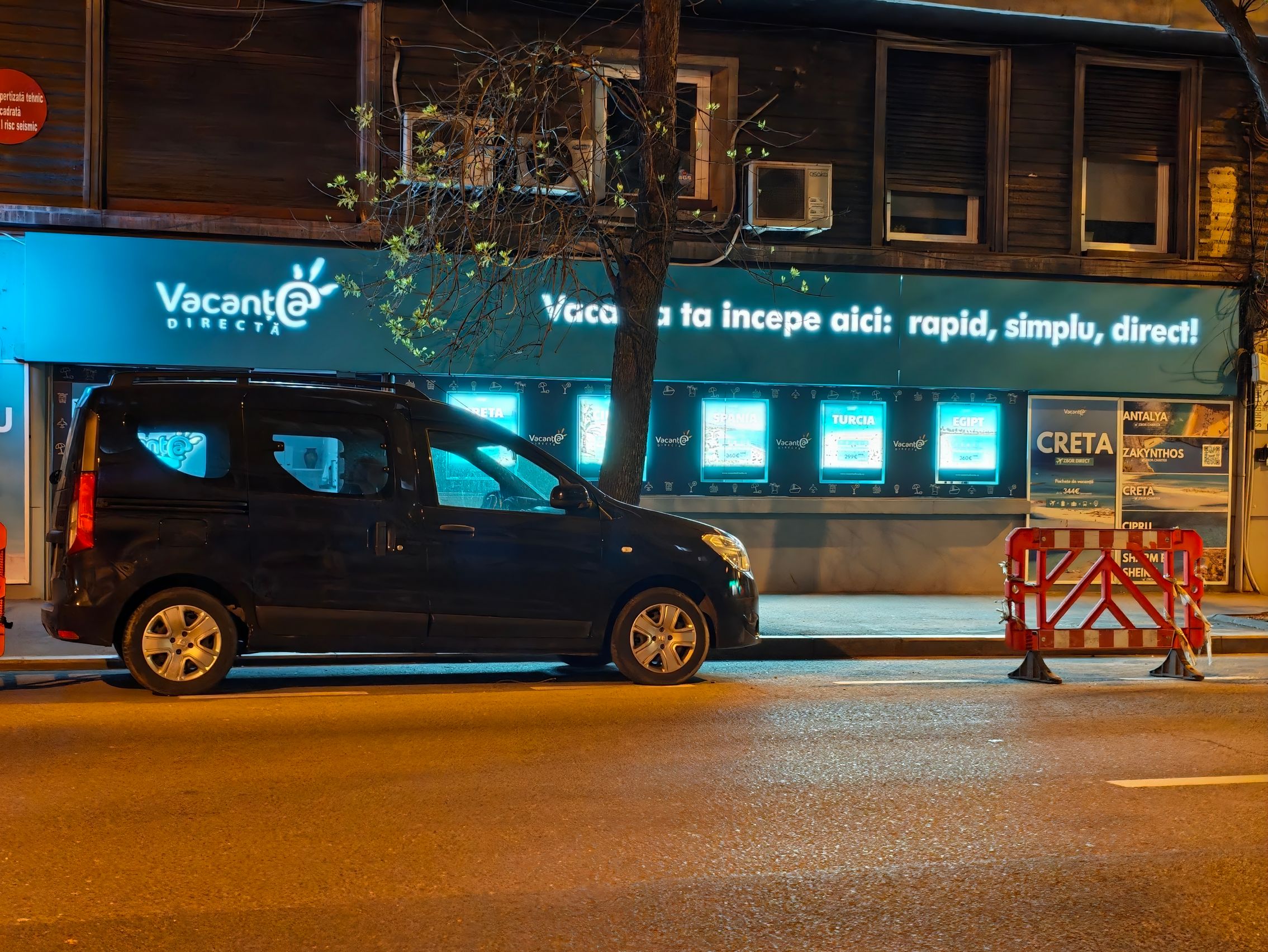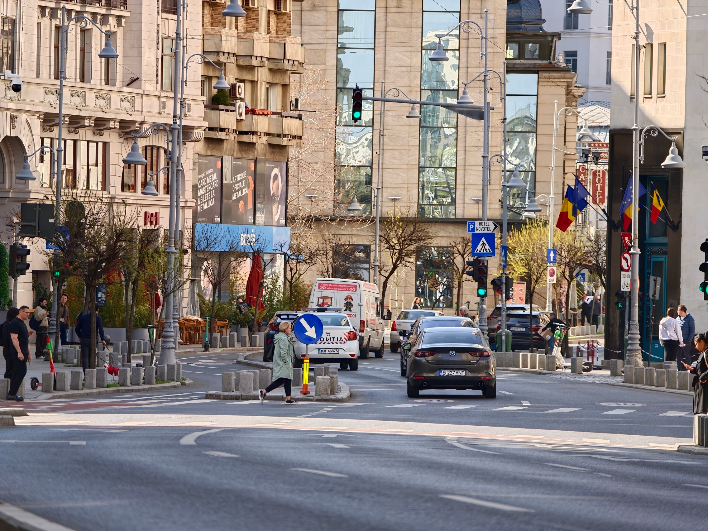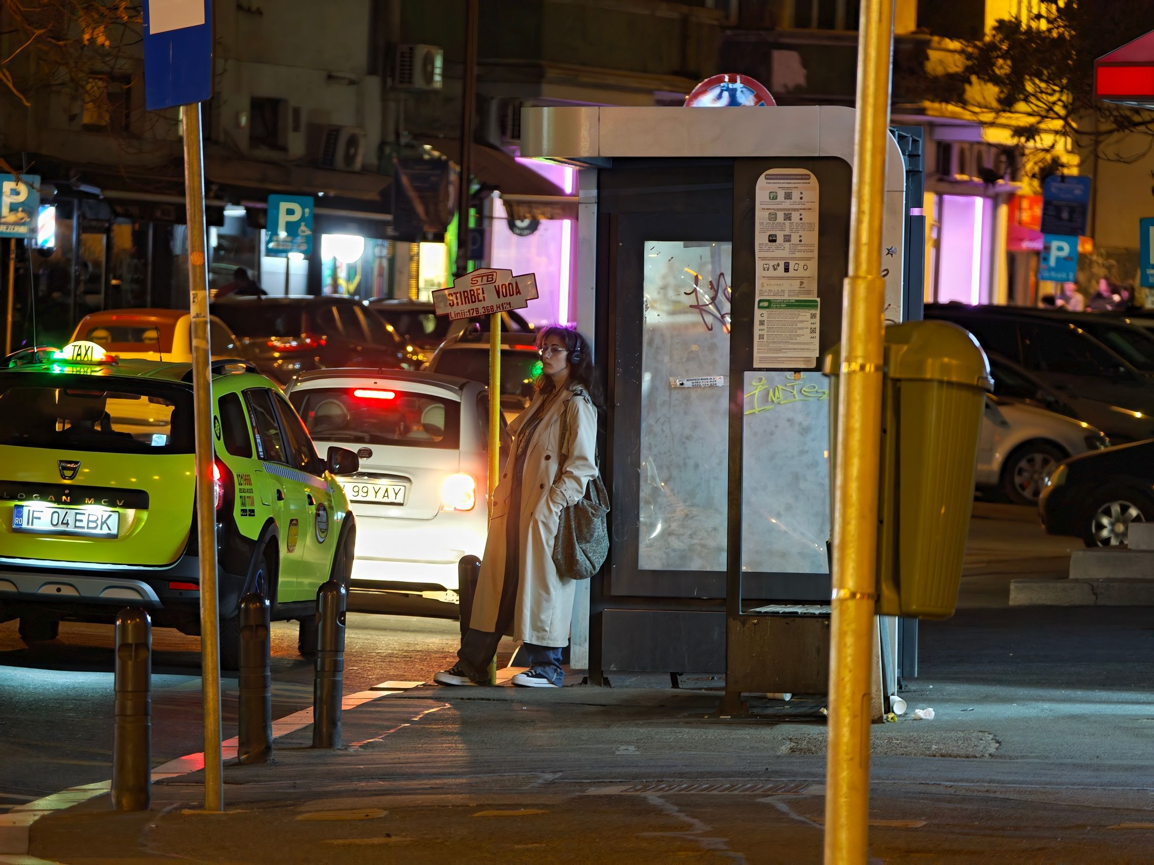 Fotografiile realizate noaptea au fost făcute înainte de cele de zi ca și timeline, asta doar ca să știți cum am pornit în explorarea orașului. Pe asfințit mi-au sărit în ochi culorile naturale, roșul mașinilor, reflexiile, siglele luminoase de la magazine, dar și faptul că această cameră nu a înghețat timpul în loc, astfel că lumea și mașinile în mișcare au fost prinse ca într-un efect timp warp. Halourile au fost micuțe în primă fază.