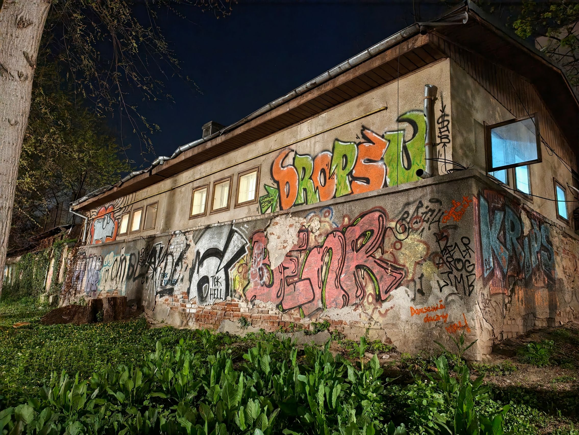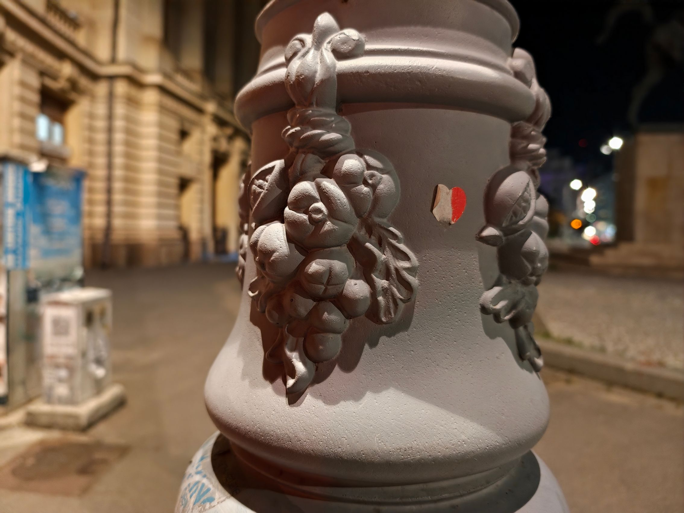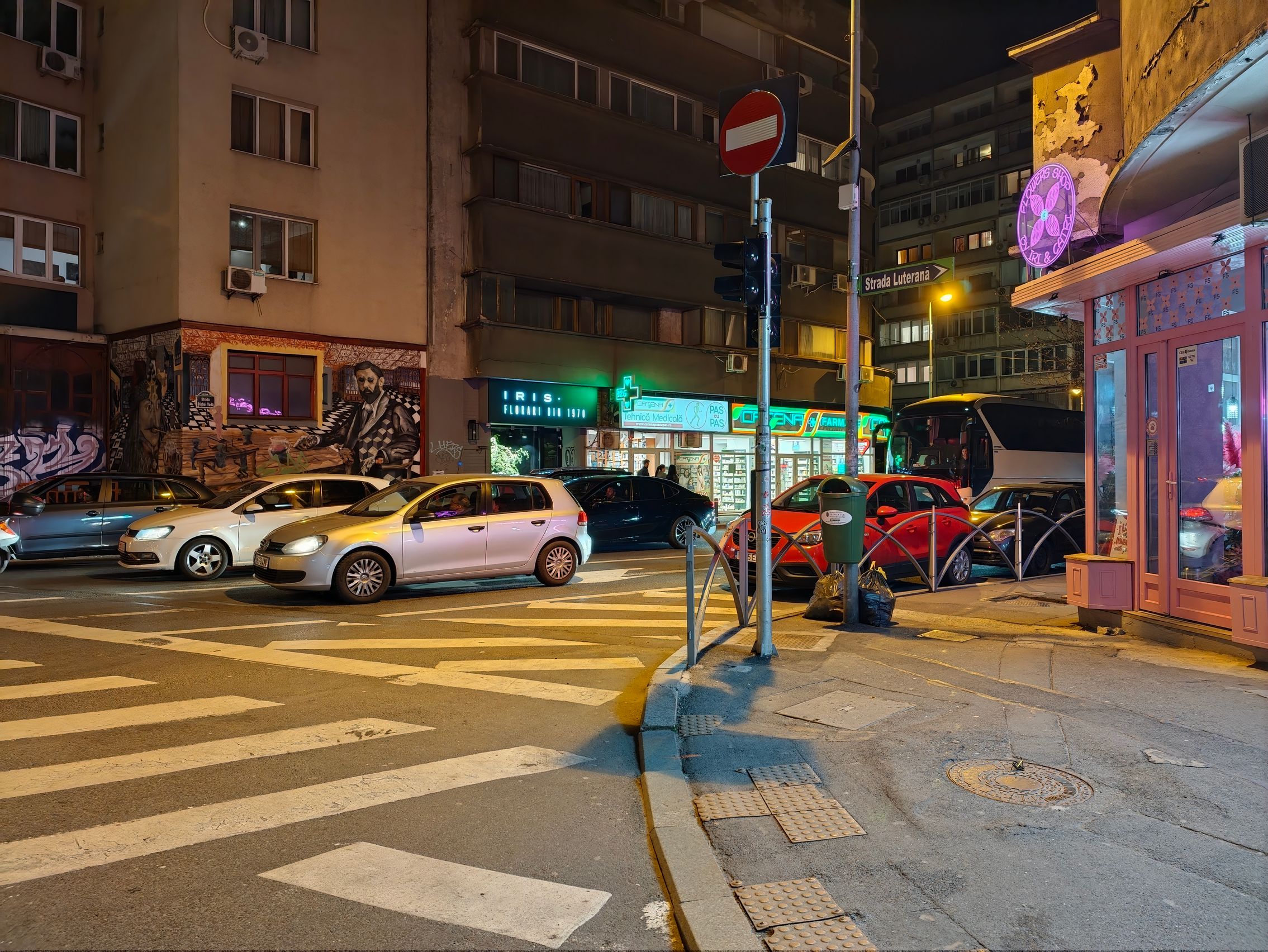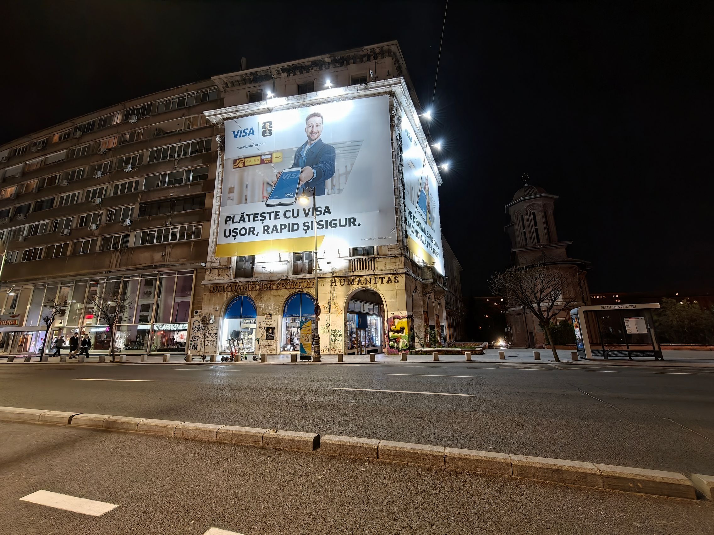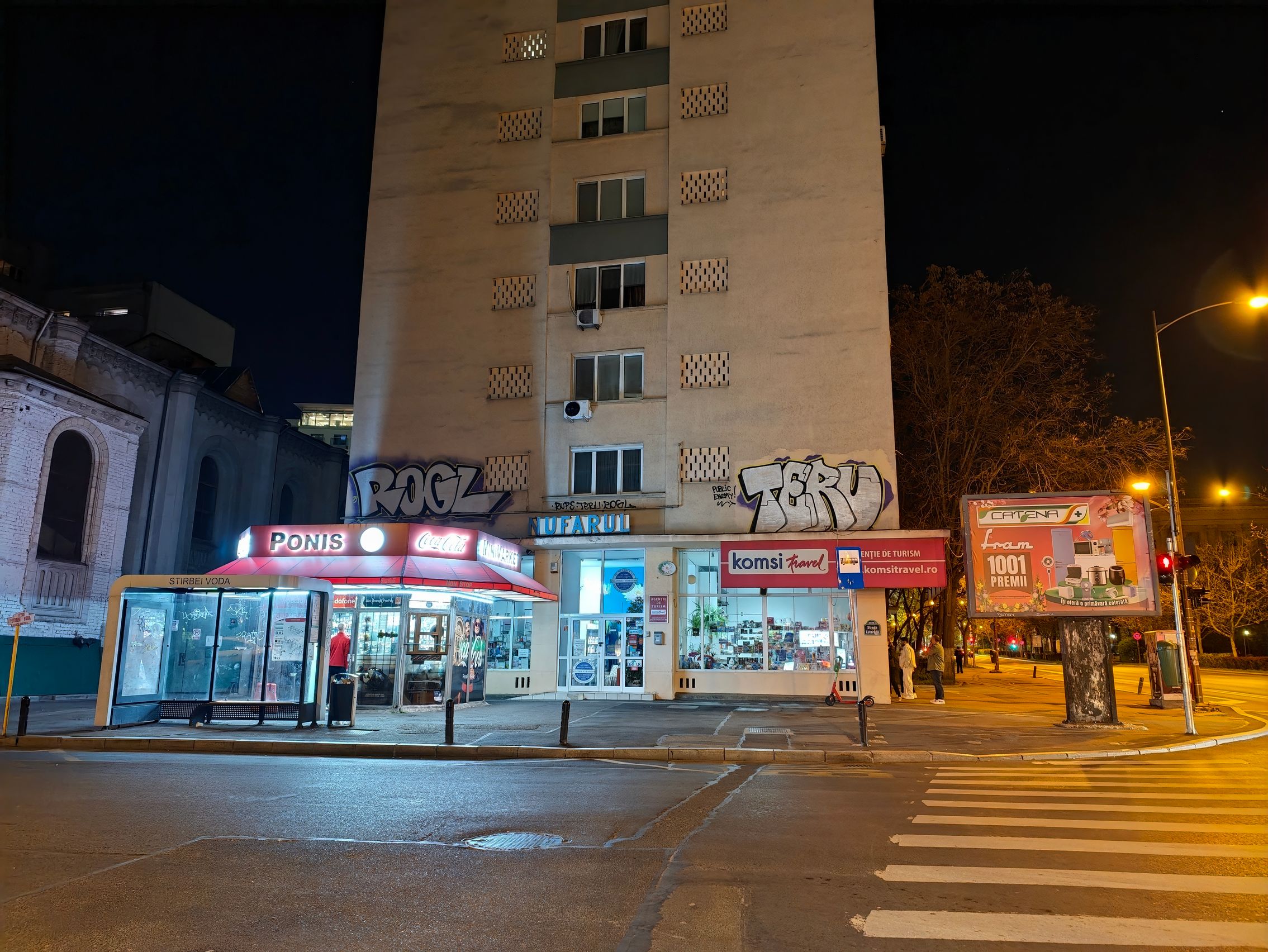 Avem zoom, zoom cât cuprinde, zoom de care am abuzat până sus spre 120x. Am avut și datele activate, iar la asemenea nivel monstru apar și acele optimizări AI care detectează marginile și ajustează în consecință fotografia. Am început cu zoom spre cel mai mare mural din zona mea, cel pictat pe un bloc de 10 etaje și am ajuns de la 2, la 3, la 10x și până departe spre porumbei care se ciondăneau sus pe terasa blocului. E un zoom care te îndeamnă să abuzezi, nu te oprești ca la alte telefoane unde simți limitările.
