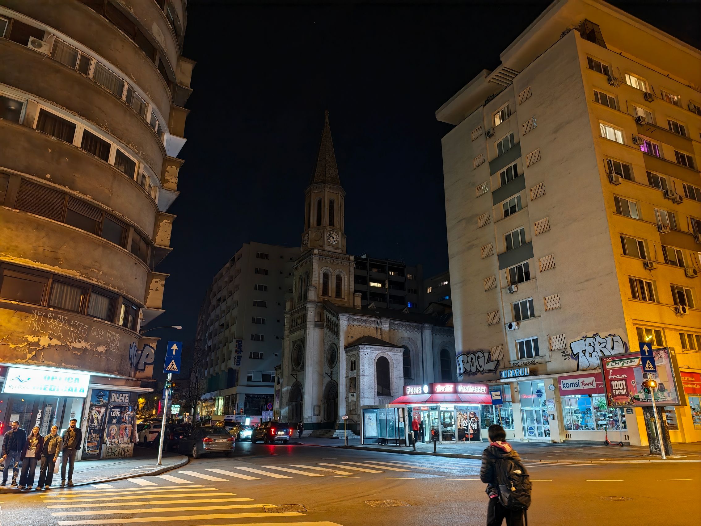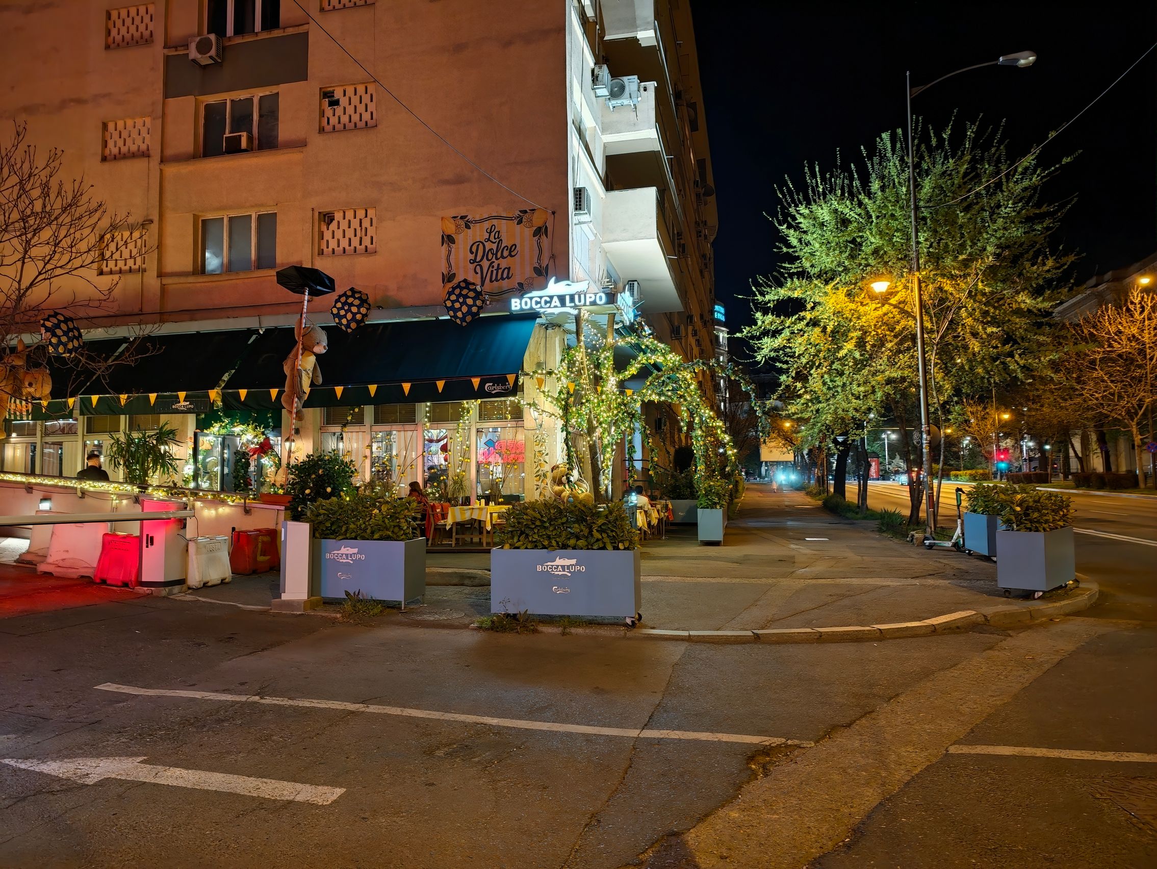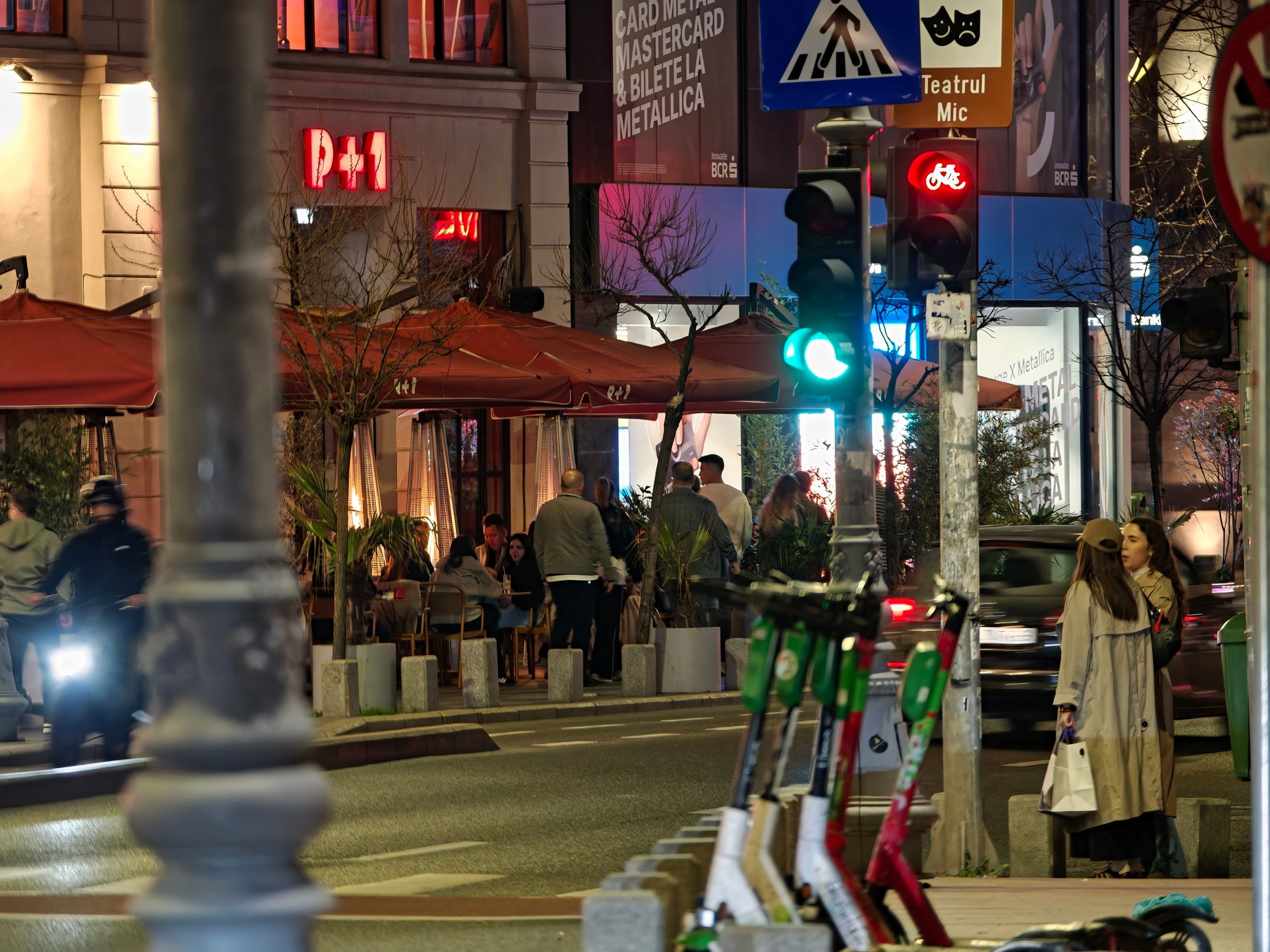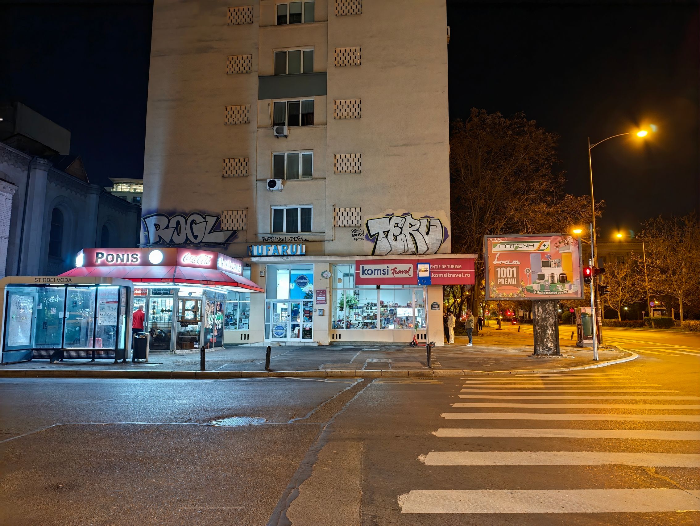 Pe timp de noapte utilizarea accesoriului tele e mai anevoioasă pentru că ai nevoie de lumina perfectă, ceea ce nu a fost mereu cazul. Lumea în mișcare mai dă bătăi de cap, dar chiar și așa sunt cadre care spun povești de seară, prind discuții la terase, plus acel depth of field fantastic, amplificat de accesoriul de față. E un DSLR nu chiar în buzunar, dar în borsetă clar merge dus în vacanțe. E un accesoriu care chiar face toți banii și nu e doar gimmick.