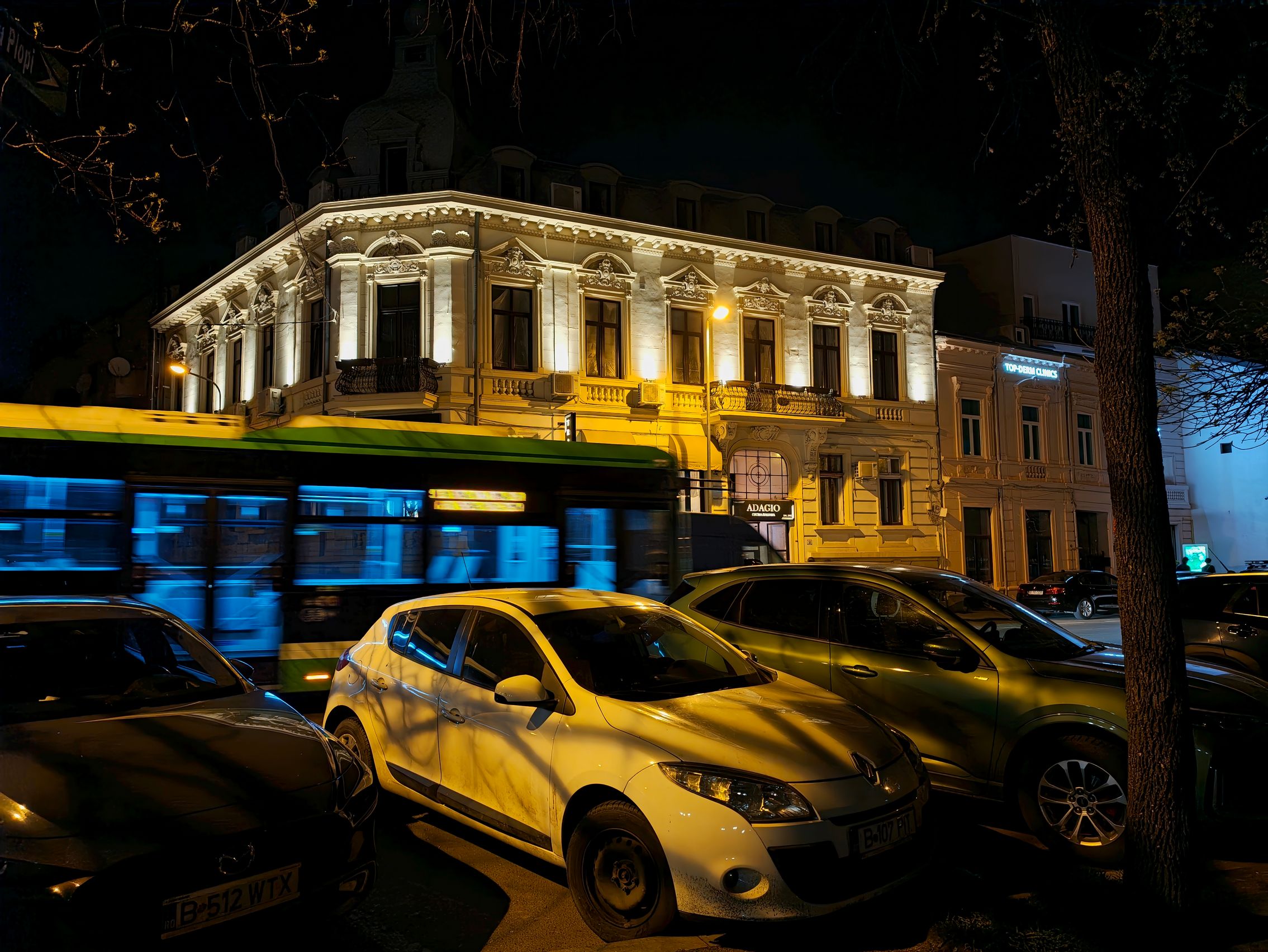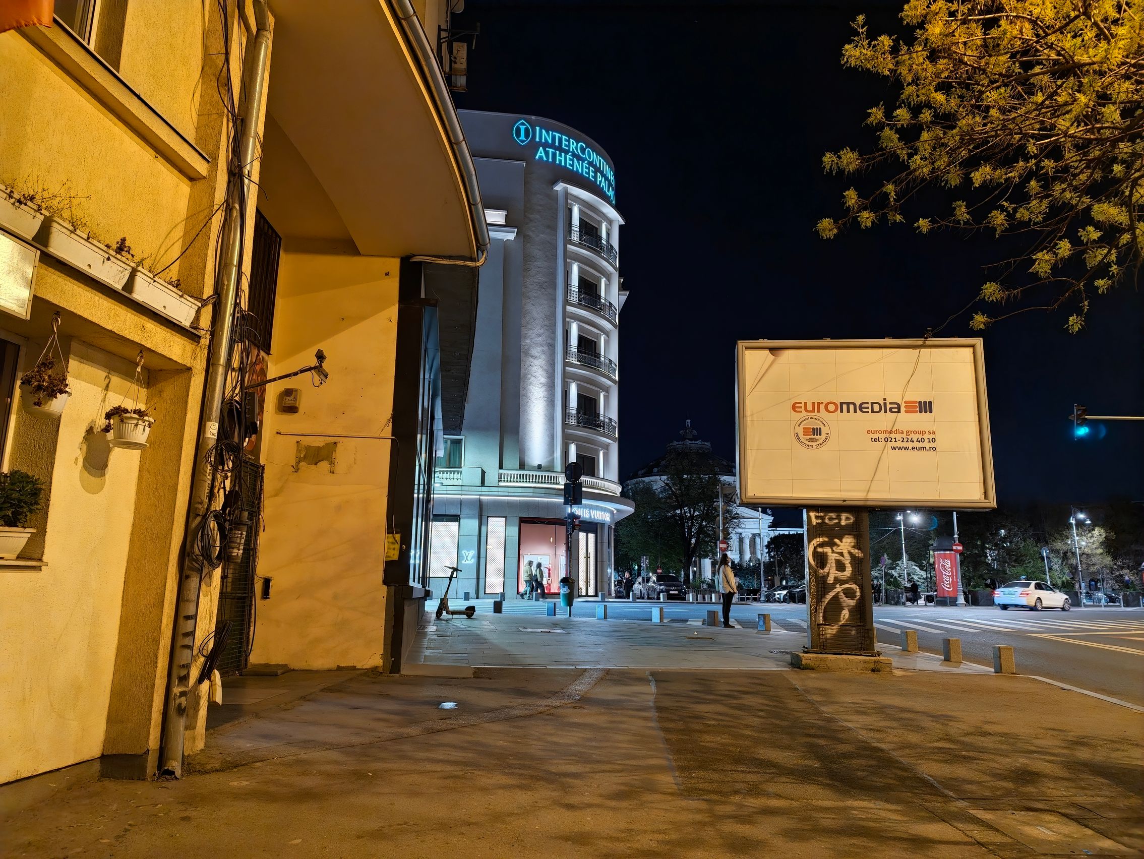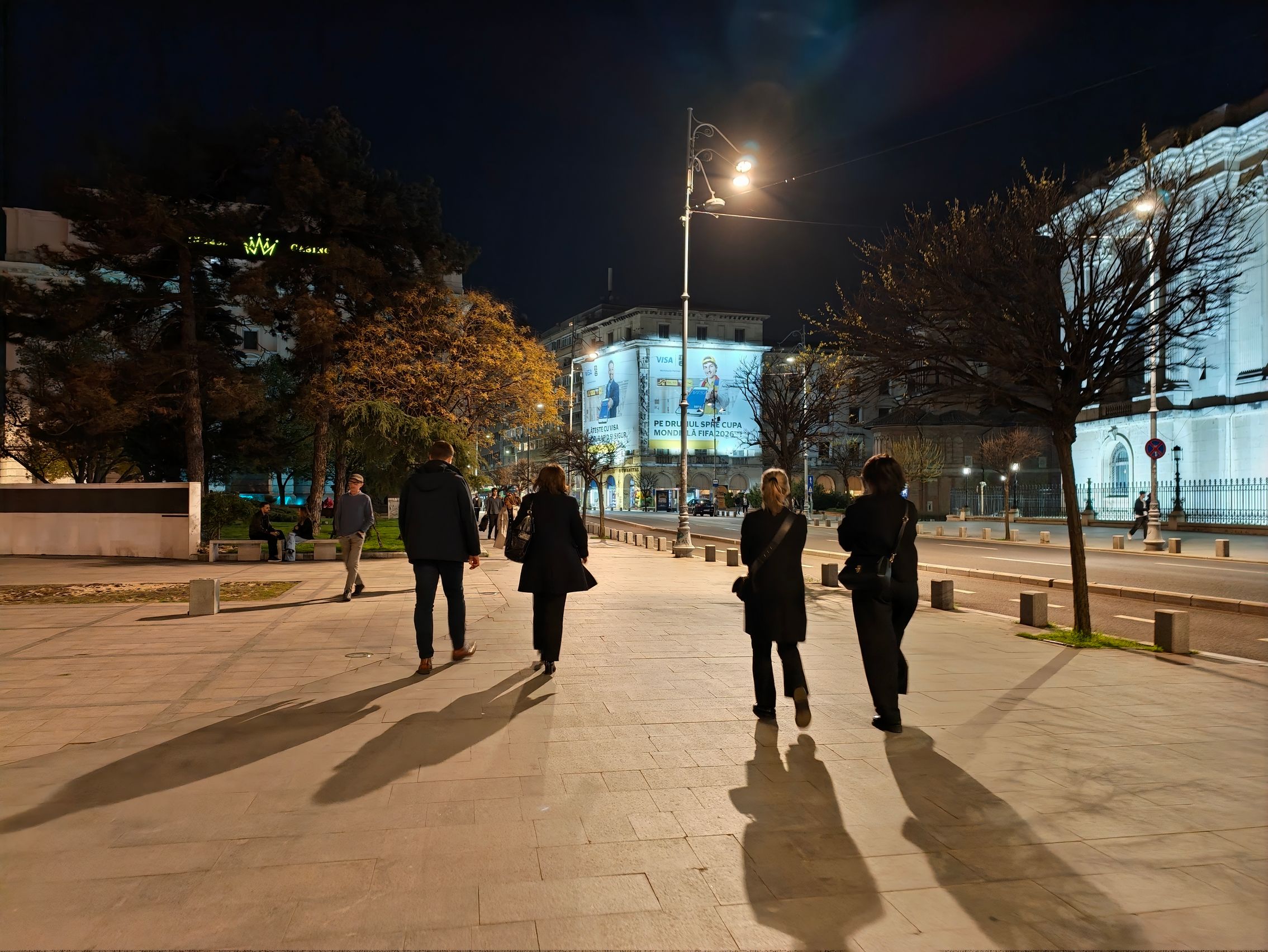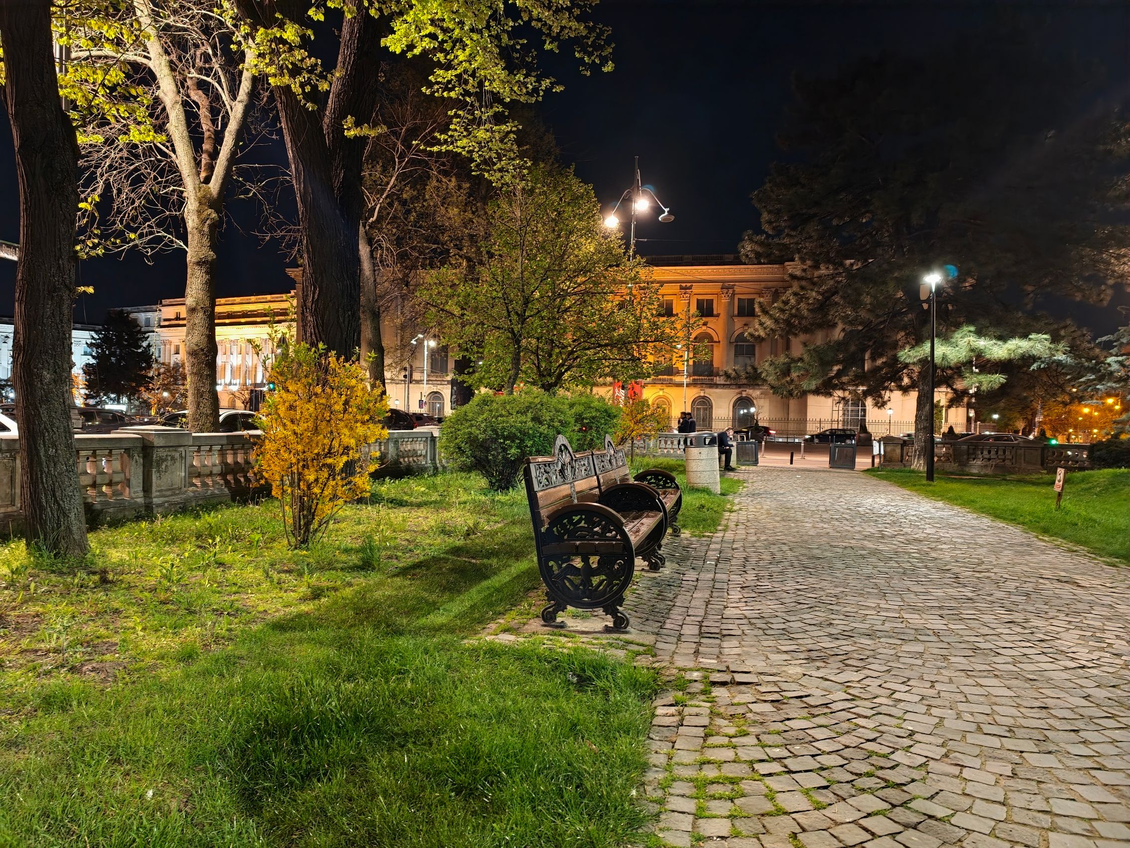 Am ales Cișmigiu și Calea Victoriei pentru tura foto, iar aici am dat și de nuanțe gălbui care îmbrăcau clădirile de lângă parc, de multă vegetație la "lumină". Closeup-ul e eficient și în low-light, iar legat de Night Mode, există și separat, dar am lăsat telefonul să decidă ce și cum, când să aplice extra secunde de captură pentru ca fotografiile să iasă perfect. În scenarii mai întunecate poți pune Night Mode la treabă.