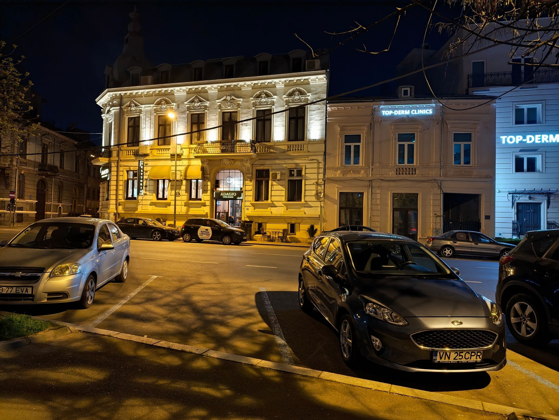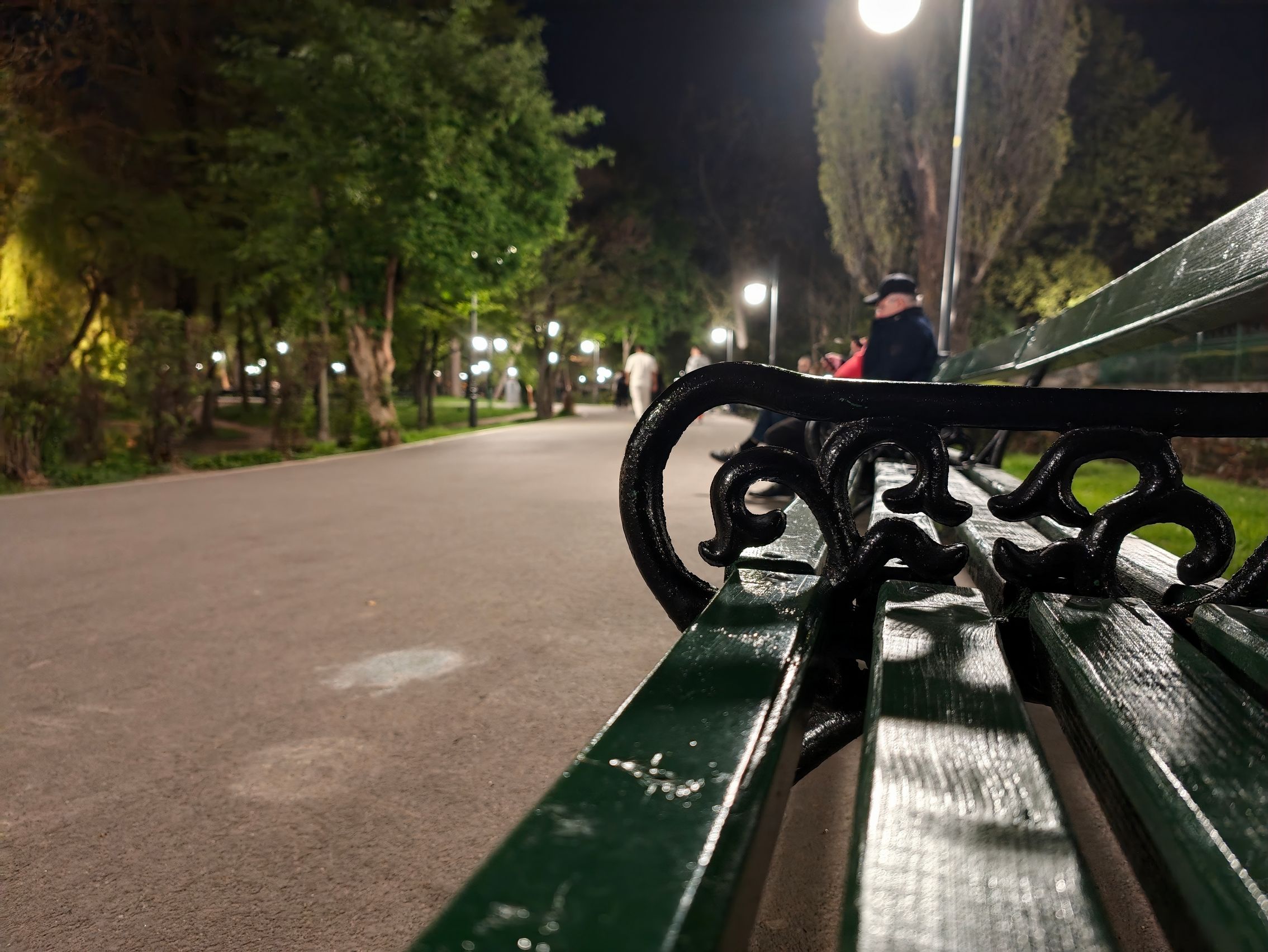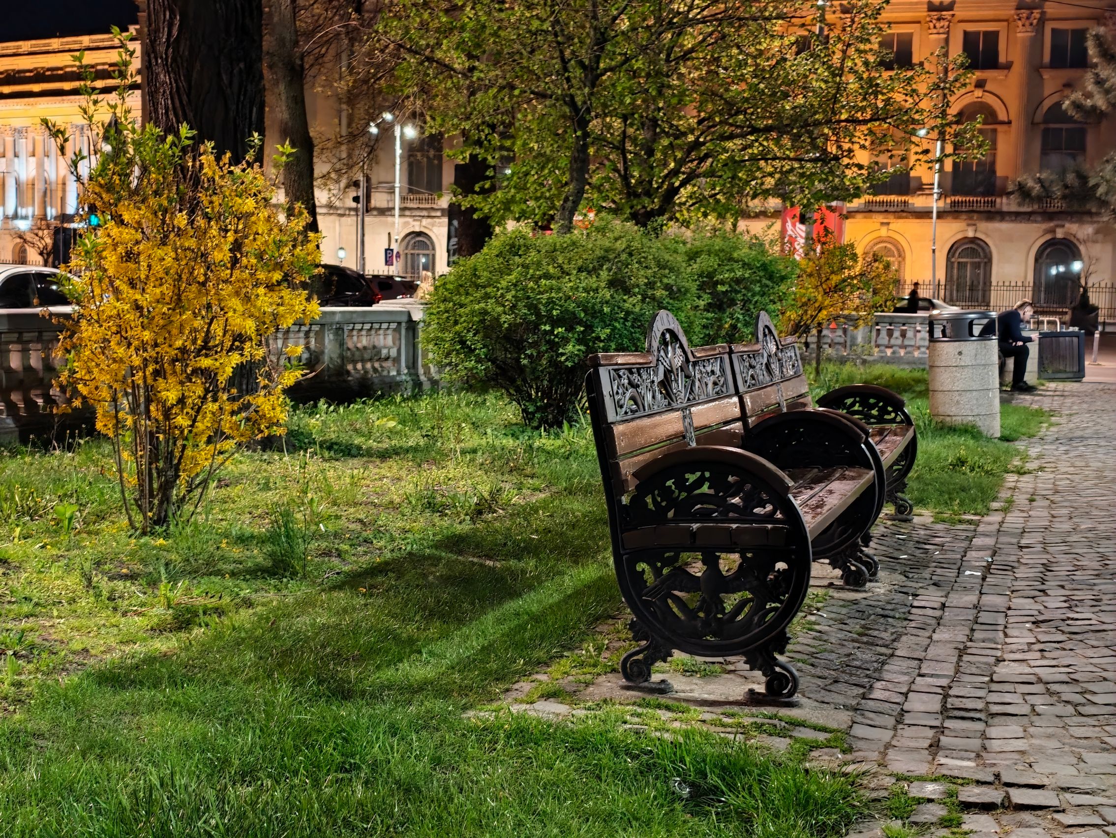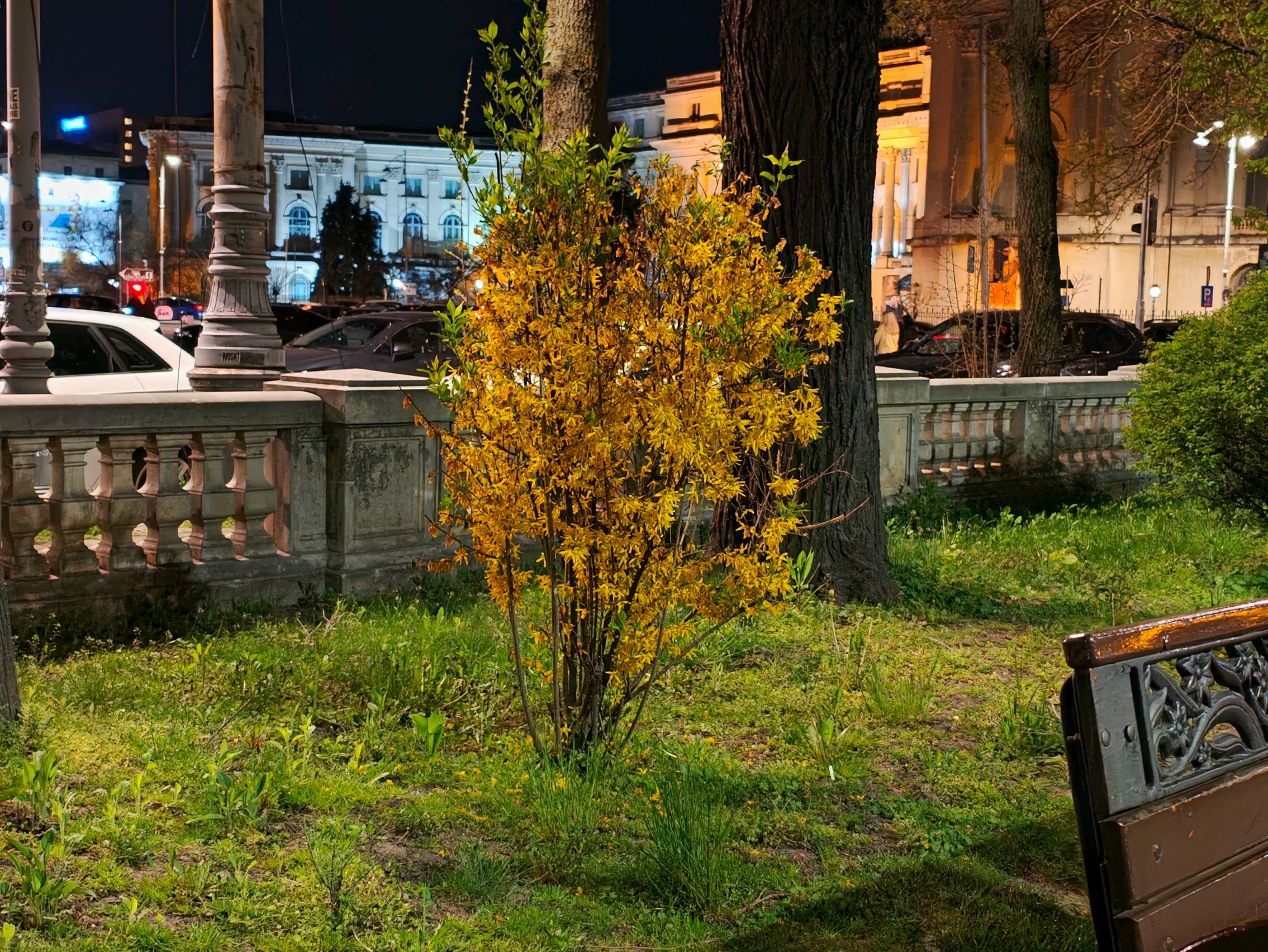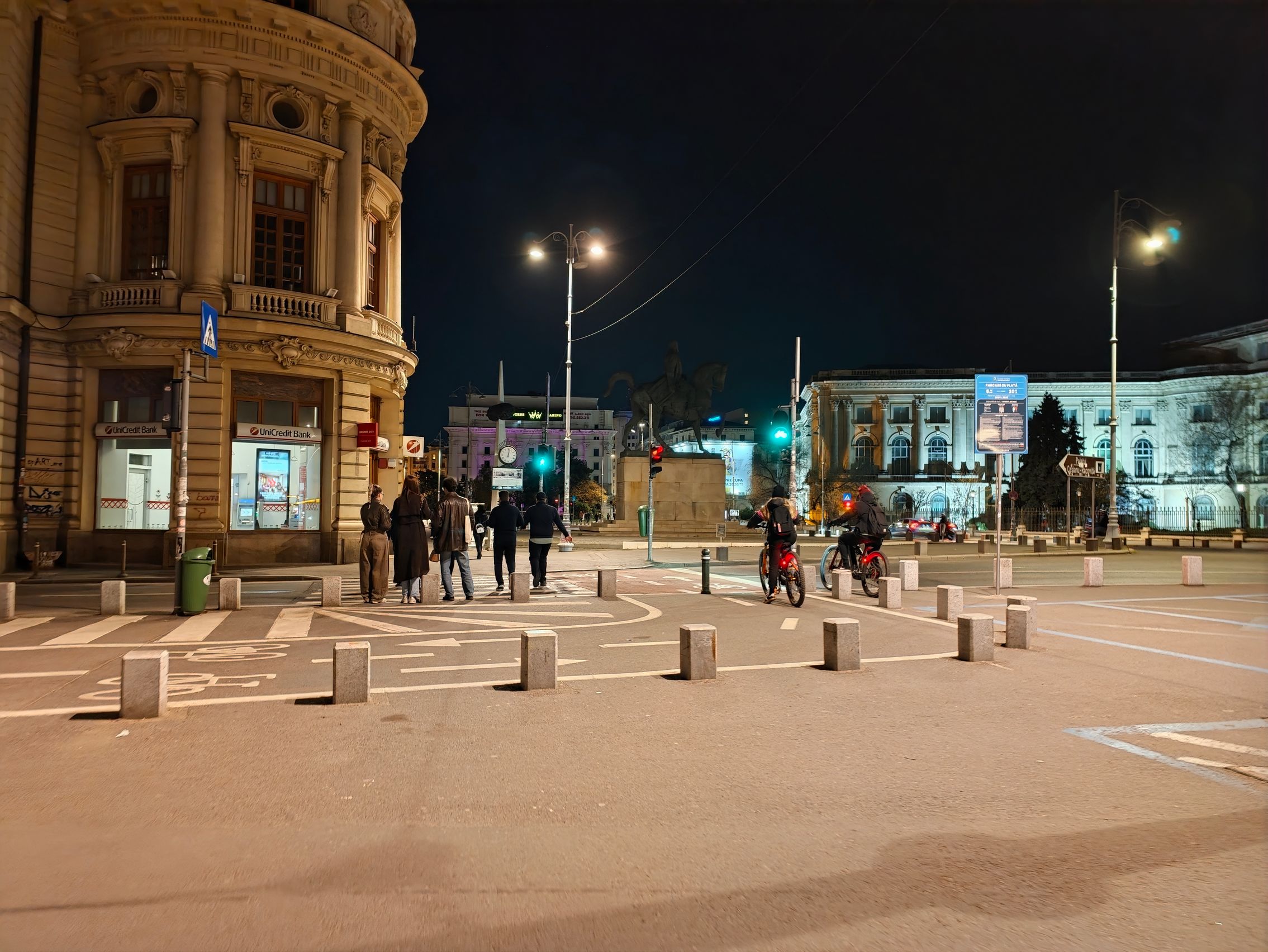 Am ales Cișmigiu și Calea Victoriei pentru tura foto, iar aici am dat și de nuanțe gălbui care îmbrăcau clădirile de lângă parc, de multă vegetație la "lumină". Closeup-ul e eficient și în low-light, iar legat de Night Mode, există și separat, dar am lăsat telefonul să decidă ce și cum, când să aplice extra secunde de captură pentru ca fotografiile să iasă perfect. În scenarii mai întunecate poți pune Night Mode la treabă.