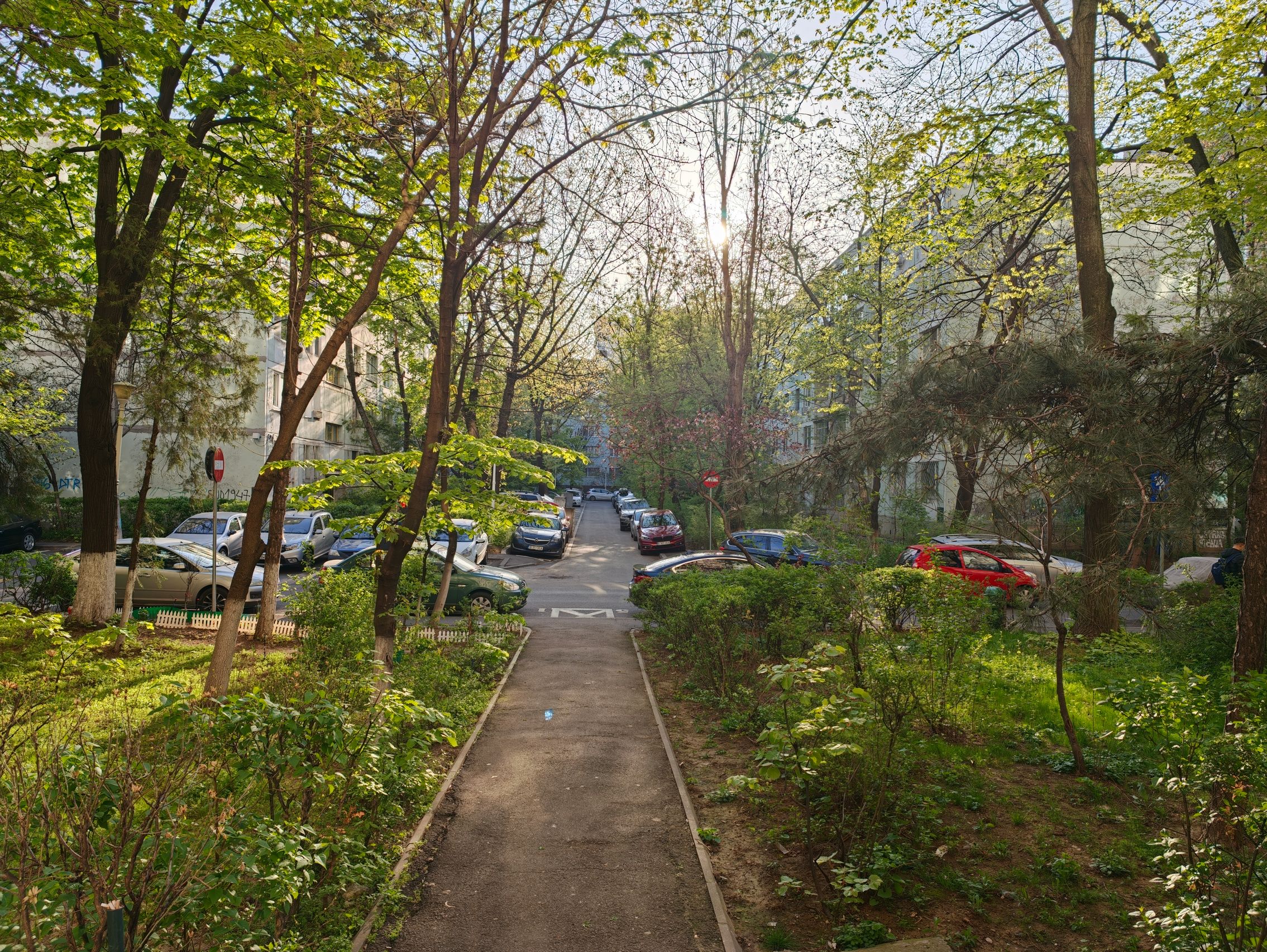 Ne mutăm acum atenția către camera din spate, cea de 200 mpx cu senzor Sony LYT-900, de 1/1.12 inch, pe care l-am detaliat în rândurile de mai sus. La primul cadru la ieșirea din bloc am fost cufundat în detalii, în vegetație, cu zeci de tonuri de verde, lumină caldă și un soare care se strecura printre crenguțe, plus un roșu ca de gărgăriță a mașinuței din parcarea imediat lângă.