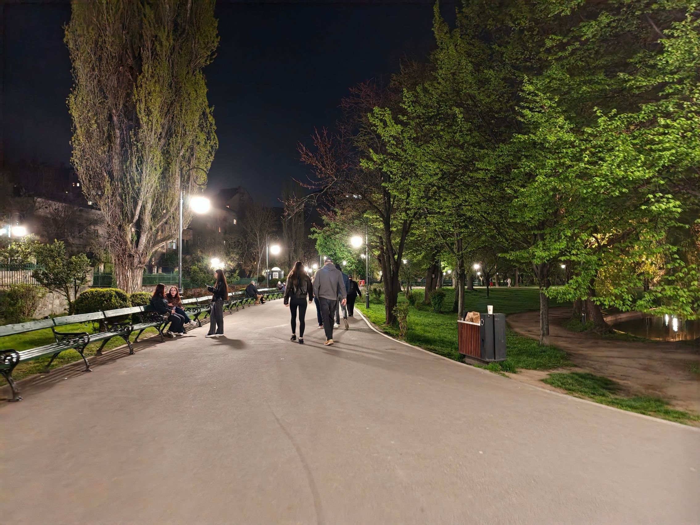 Pe timp de noapte tremuratul selfie de ziua se accentuează și nu sunt deloc încântat de ce văd, cu toate că lumină era suficientă. Îl face de recomandat mai degrabă de pe loc noaptea la filmare selfie, ceva ce spunem de obicei la midrange-uri. Captura din spate e clar mai bună, iar la o plimbare agale pe lângă parc nu văd mari neajunsuri, lumina e okay, nuanțele de galben nu cuprind întreg cadrul, iar halourile sunt timide.