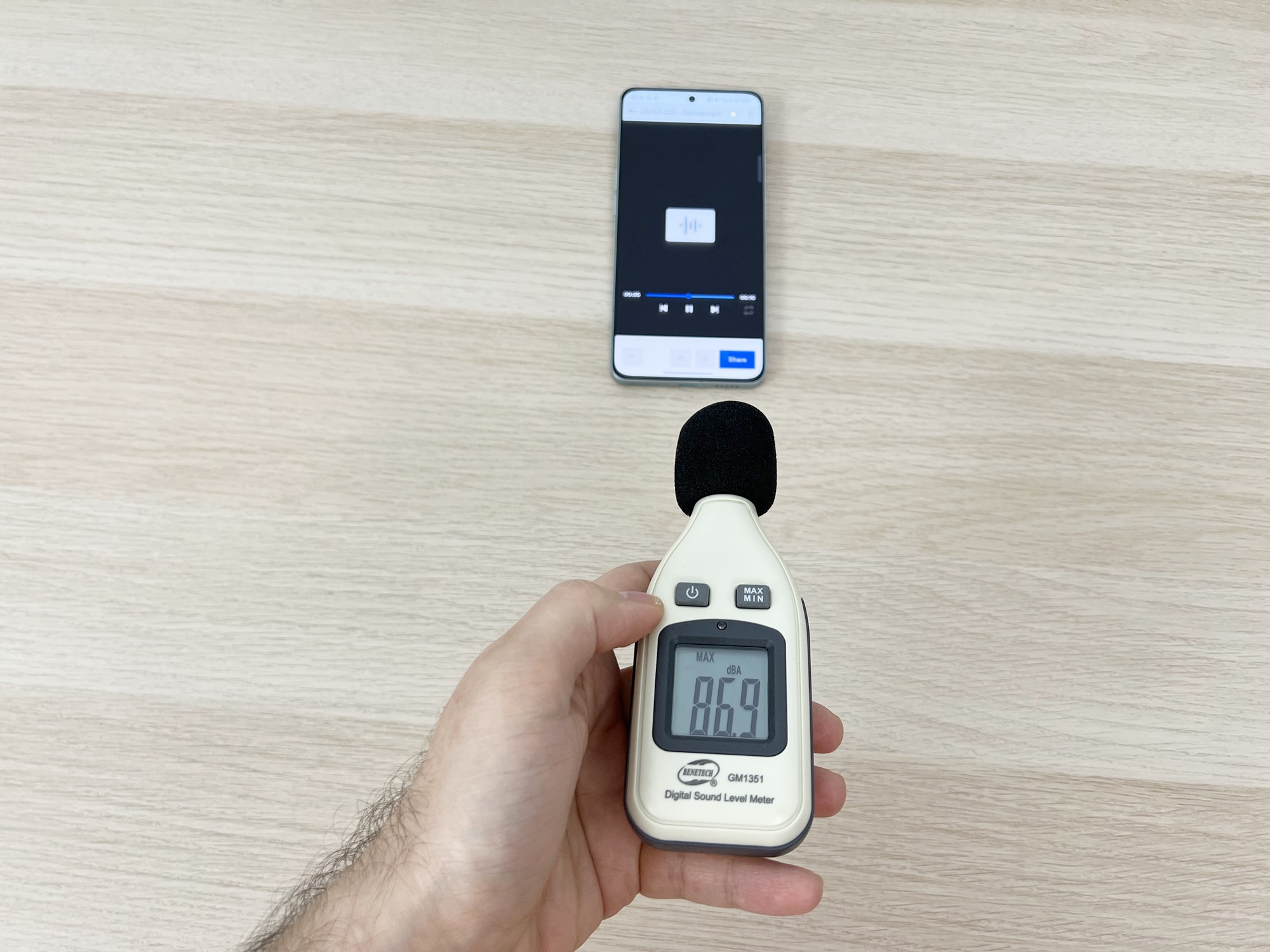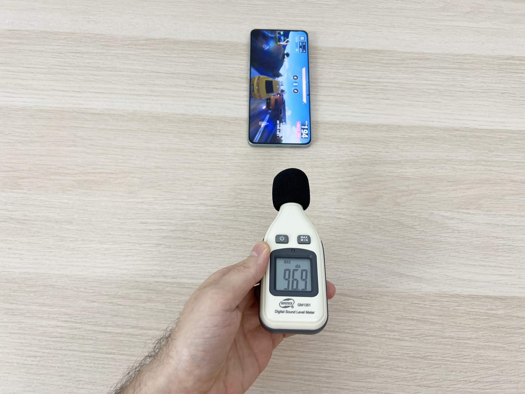 Trecem la testul cu decibelmetrul şi începem cu testul cu sample-ul acustic. Am ajuns la 80.8 dBA sus şi 86.9 dBA jos. Cu acel rezultat a depăşit Xiaomi 12T Pro şi POCO X4 GT, dar e sub OPPO Reno6 Pro şi Vivo X60 Pro. E egal cu Moto Edge 30 Pro apropo.