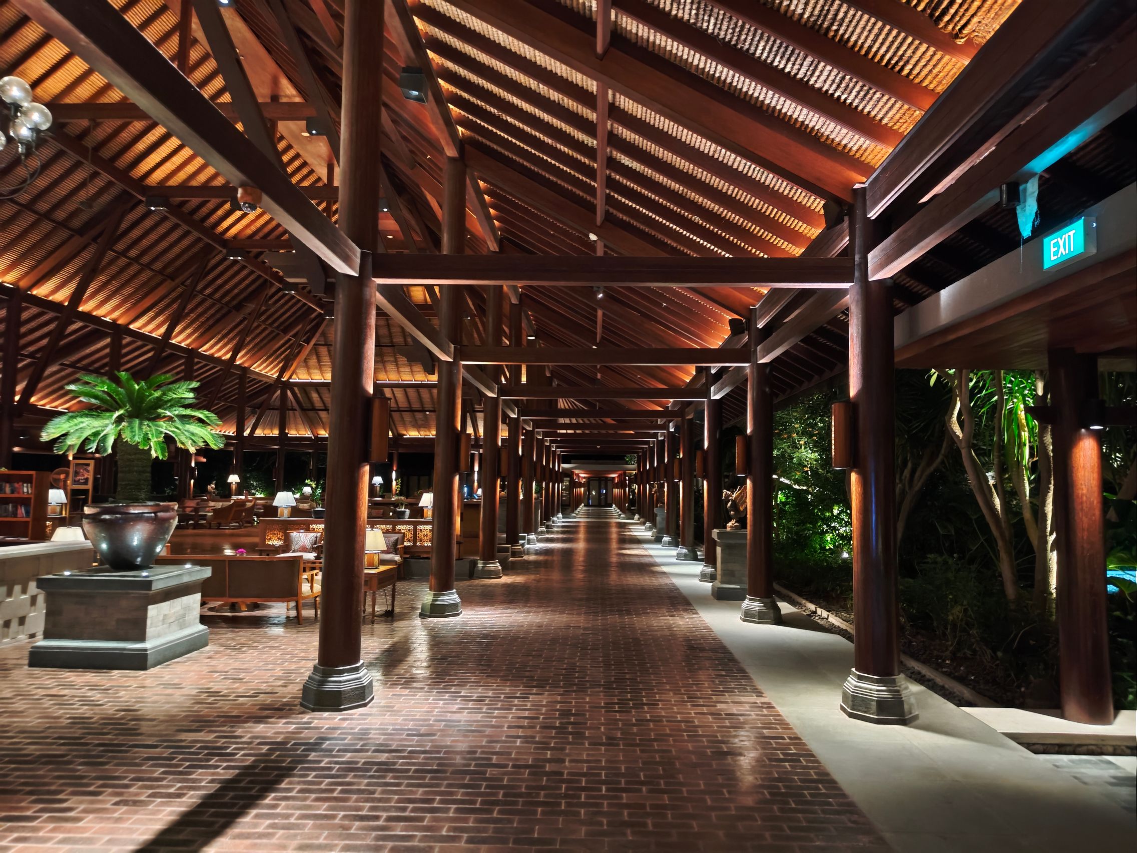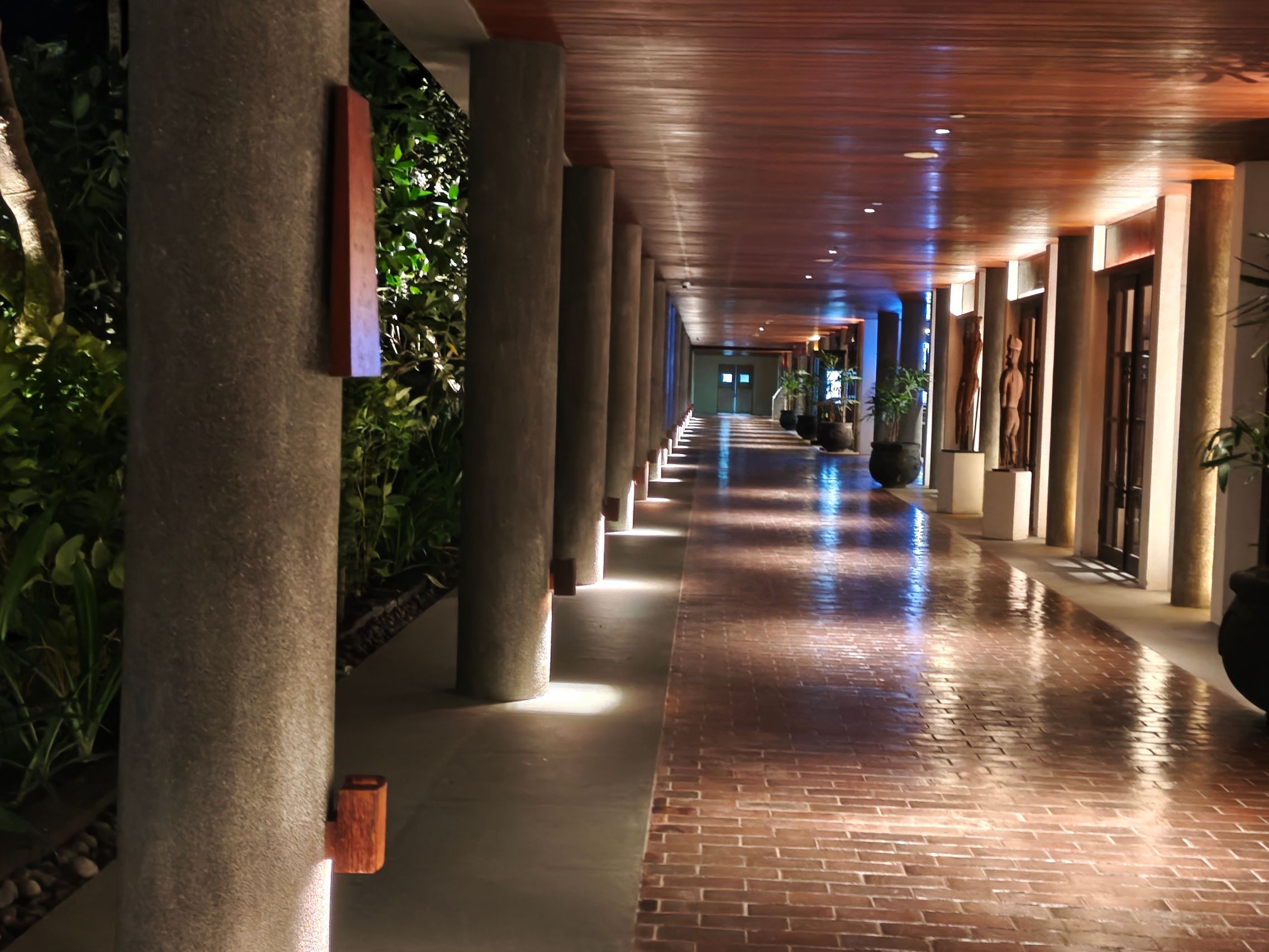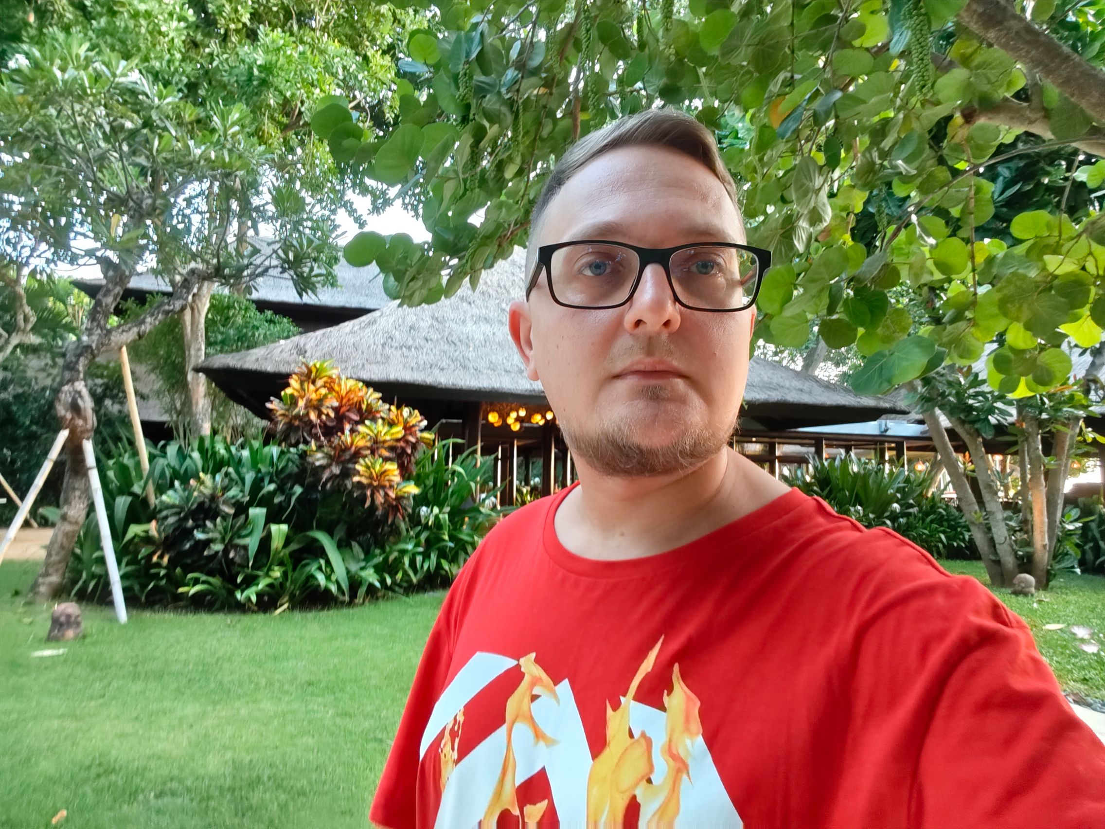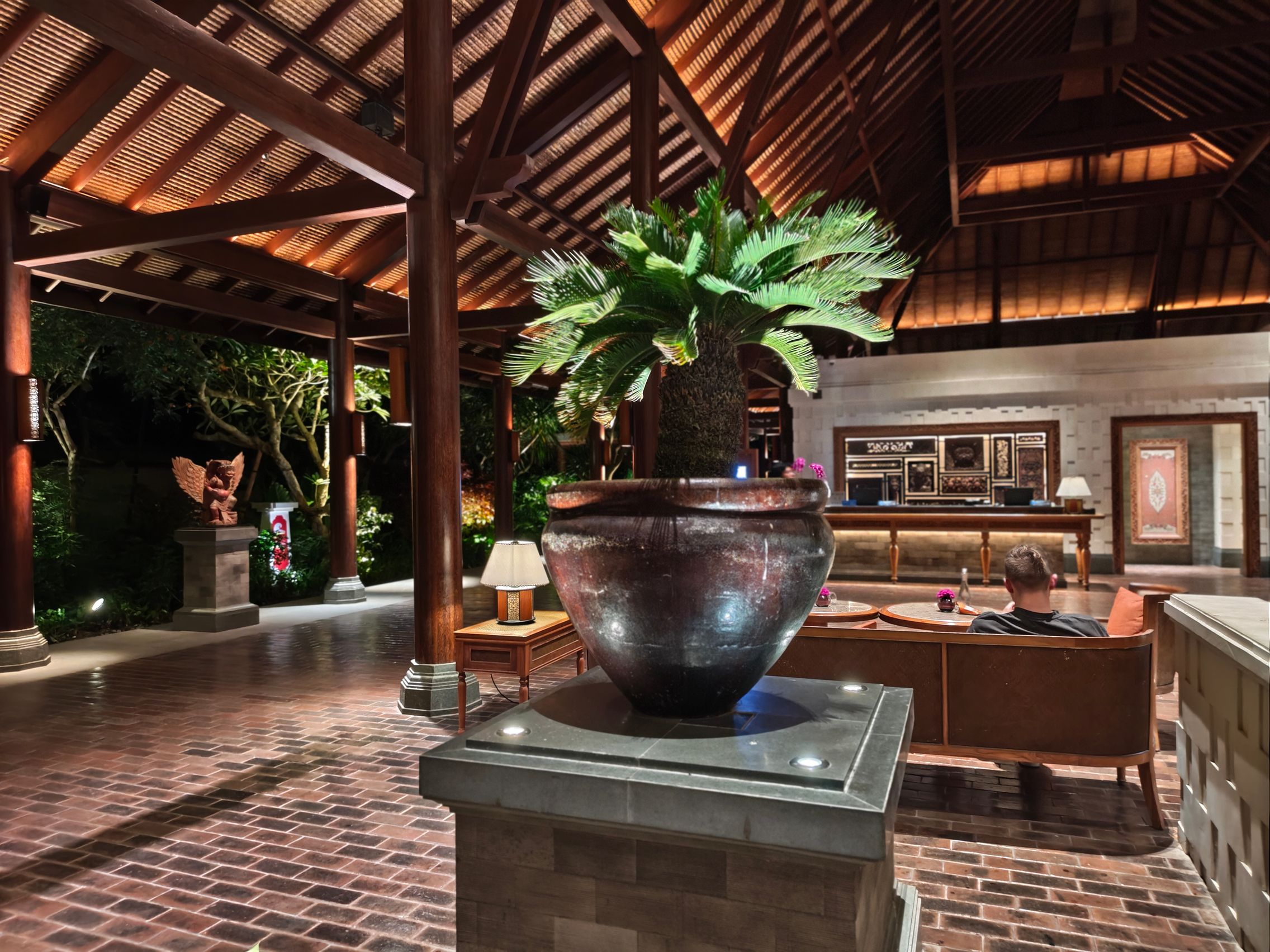 La 10 ore distanță eram deja la hotel în Bali și foloseam telefonul pentru a fotografia culoarele luminoase ale resortului, cu multe reflexii prinse perfect. Primul selfie nu a ieșit tocmai bine, topit după ce am dat din nou de căldură după câteva minute petrecute în cameră cu AC-ul în funcțiune. La fel ca și ziua, nu trebuie să te grăbești cu selfie-urile. Trebuie să îi acorzi puțină stabilitate pentru a prinde cum trebuie chipul tău.