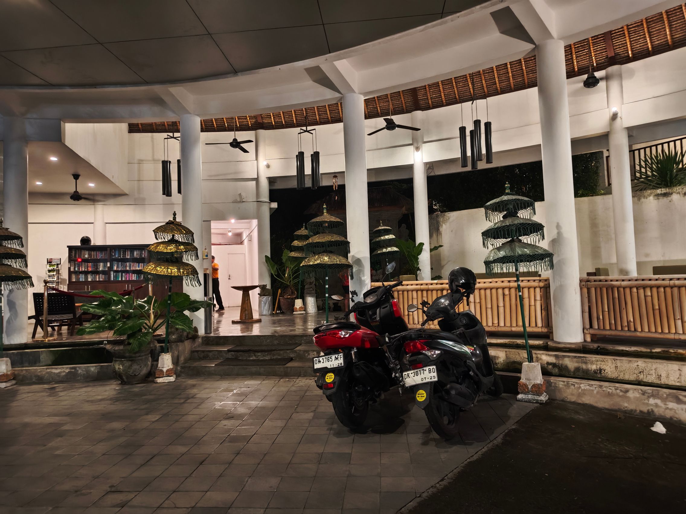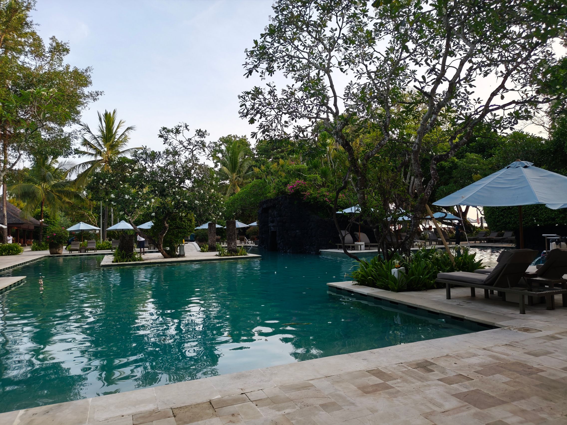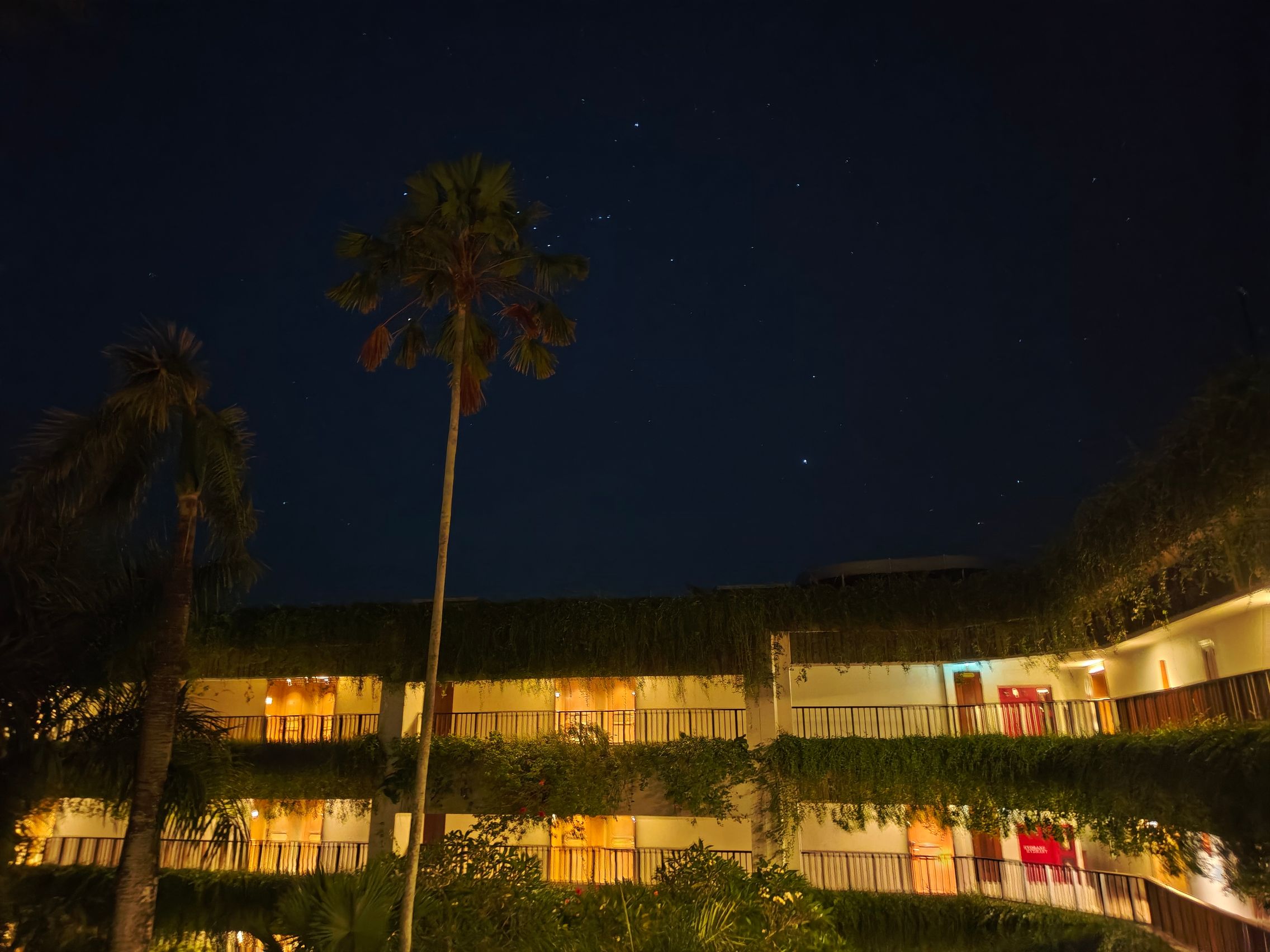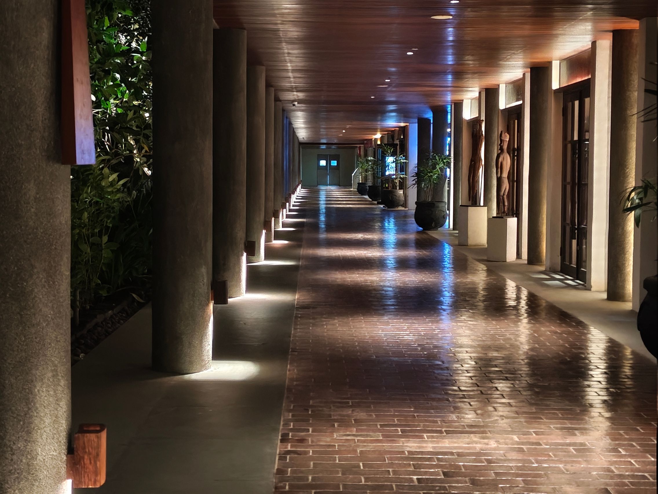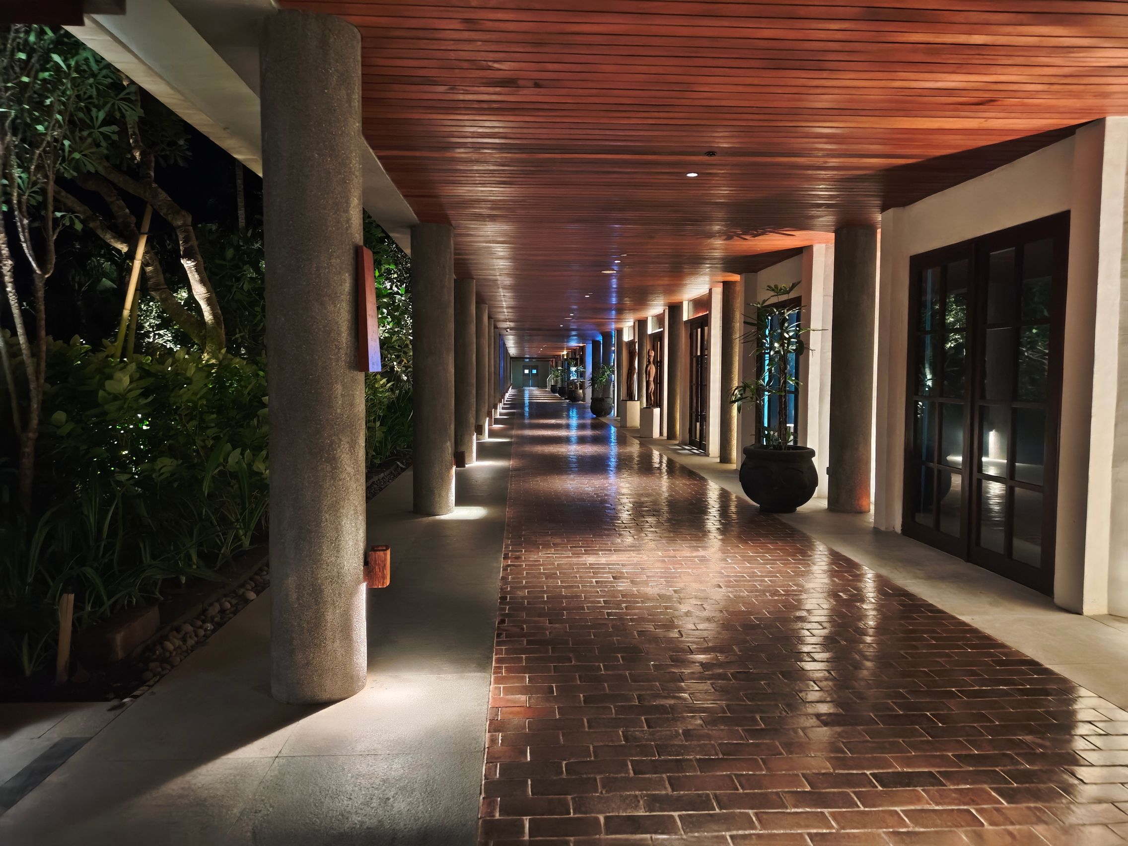 La 10 ore distanță eram deja la hotel în Bali și foloseam telefonul pentru a fotografia culoarele luminoase ale resortului, cu multe reflexii prinse perfect. Primul selfie nu a ieșit tocmai bine, topit după ce am dat din nou de căldură după câteva minute petrecute în cameră cu AC-ul în funcțiune. La fel ca și ziua, nu trebuie să te grăbești cu selfie-urile. Trebuie să îi acorzi puțină stabilitate pentru a prinde cum trebuie chipul tău.