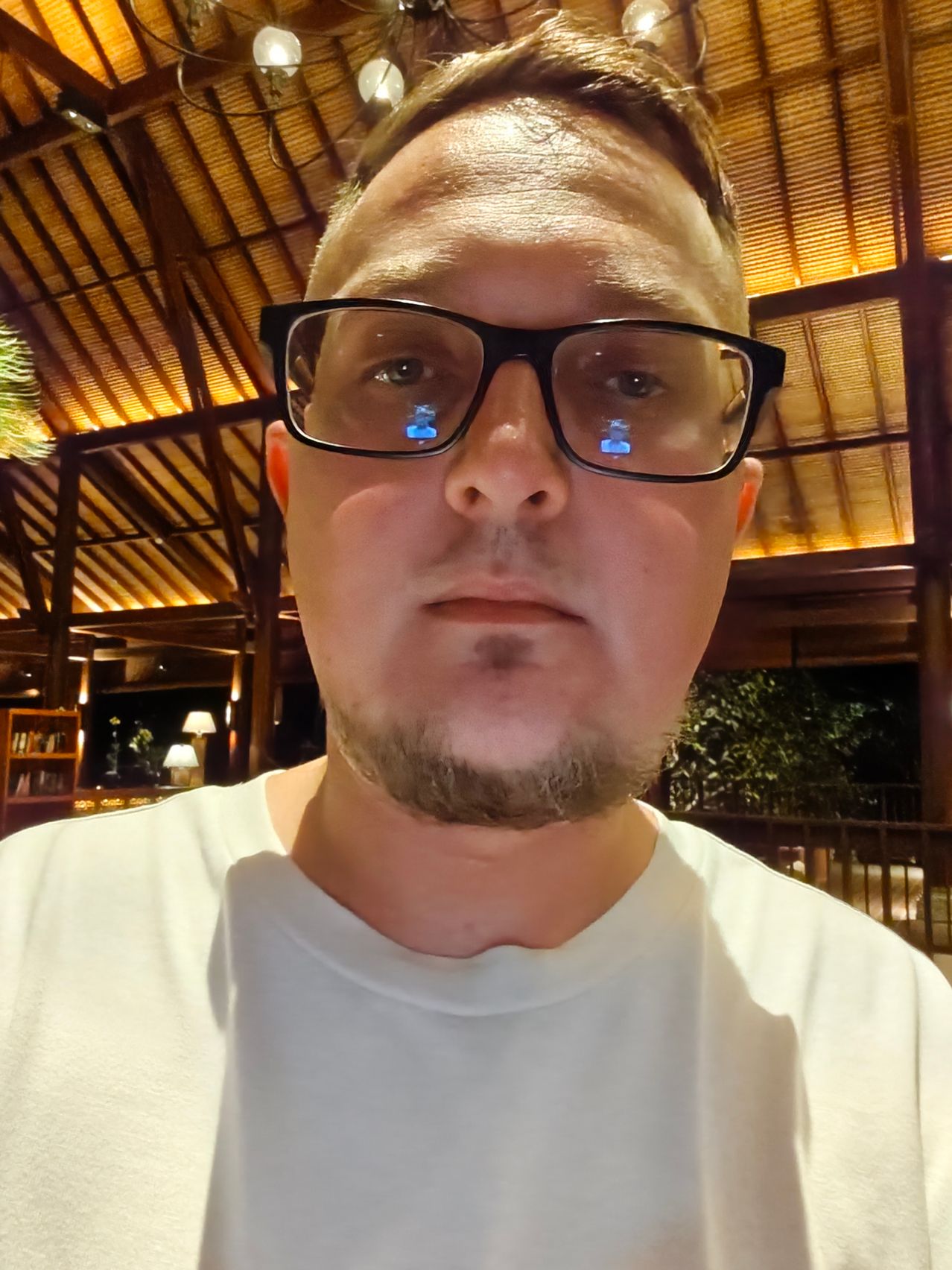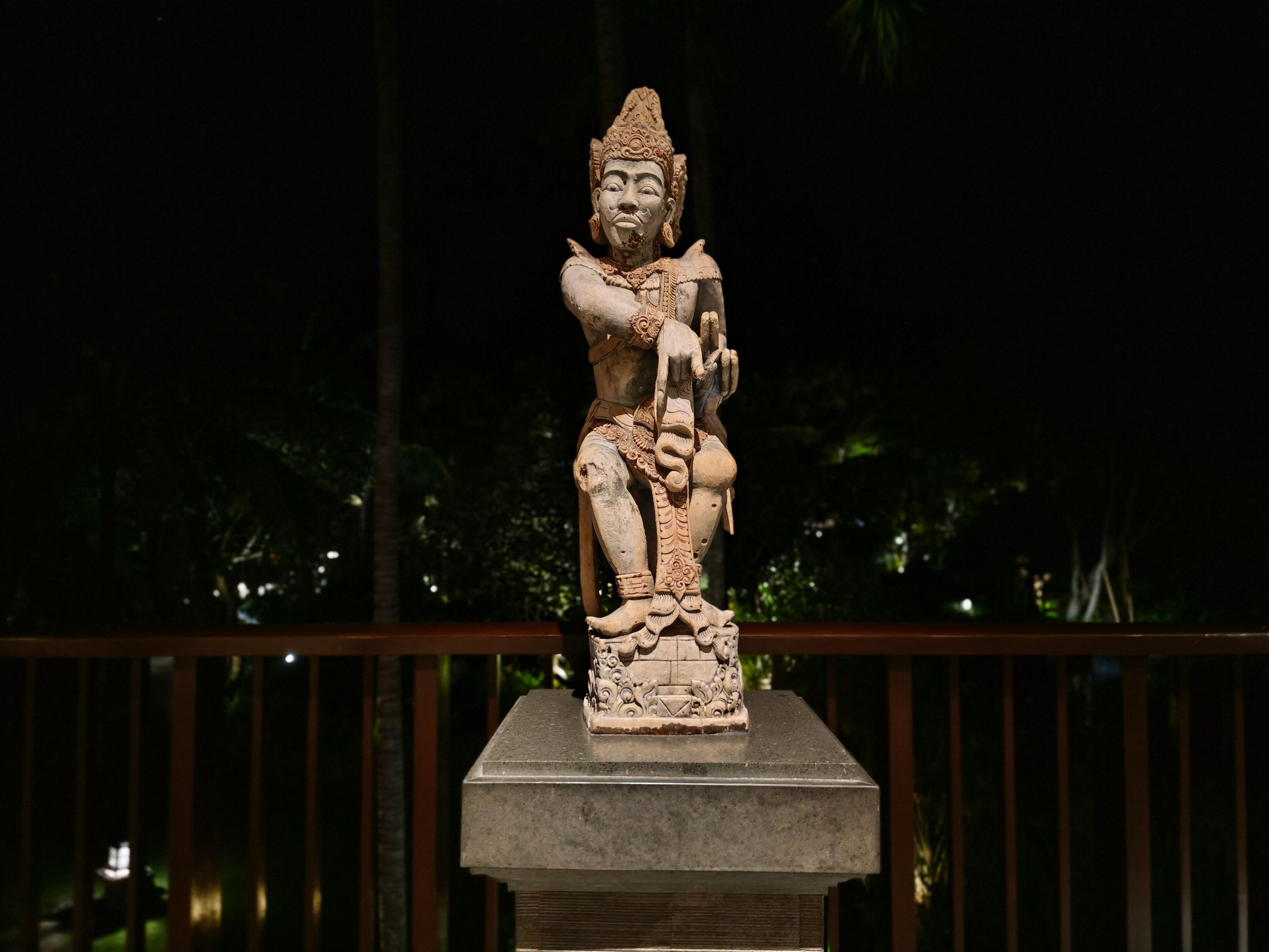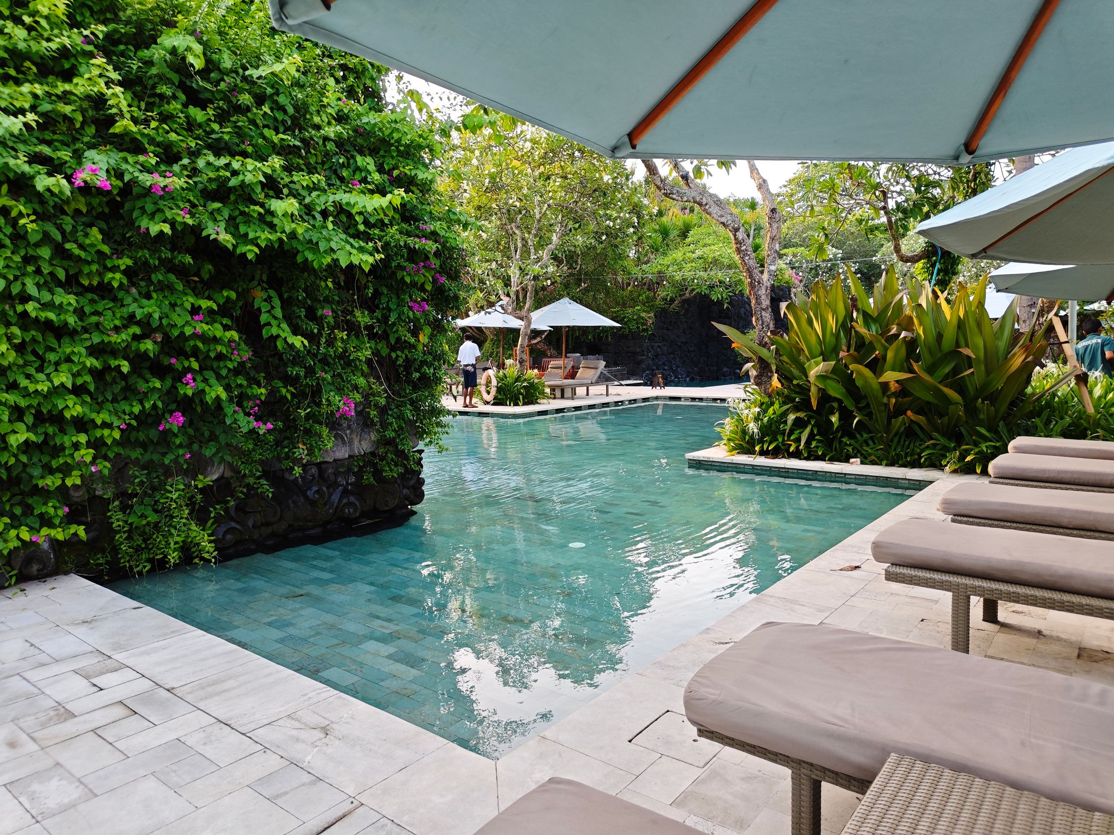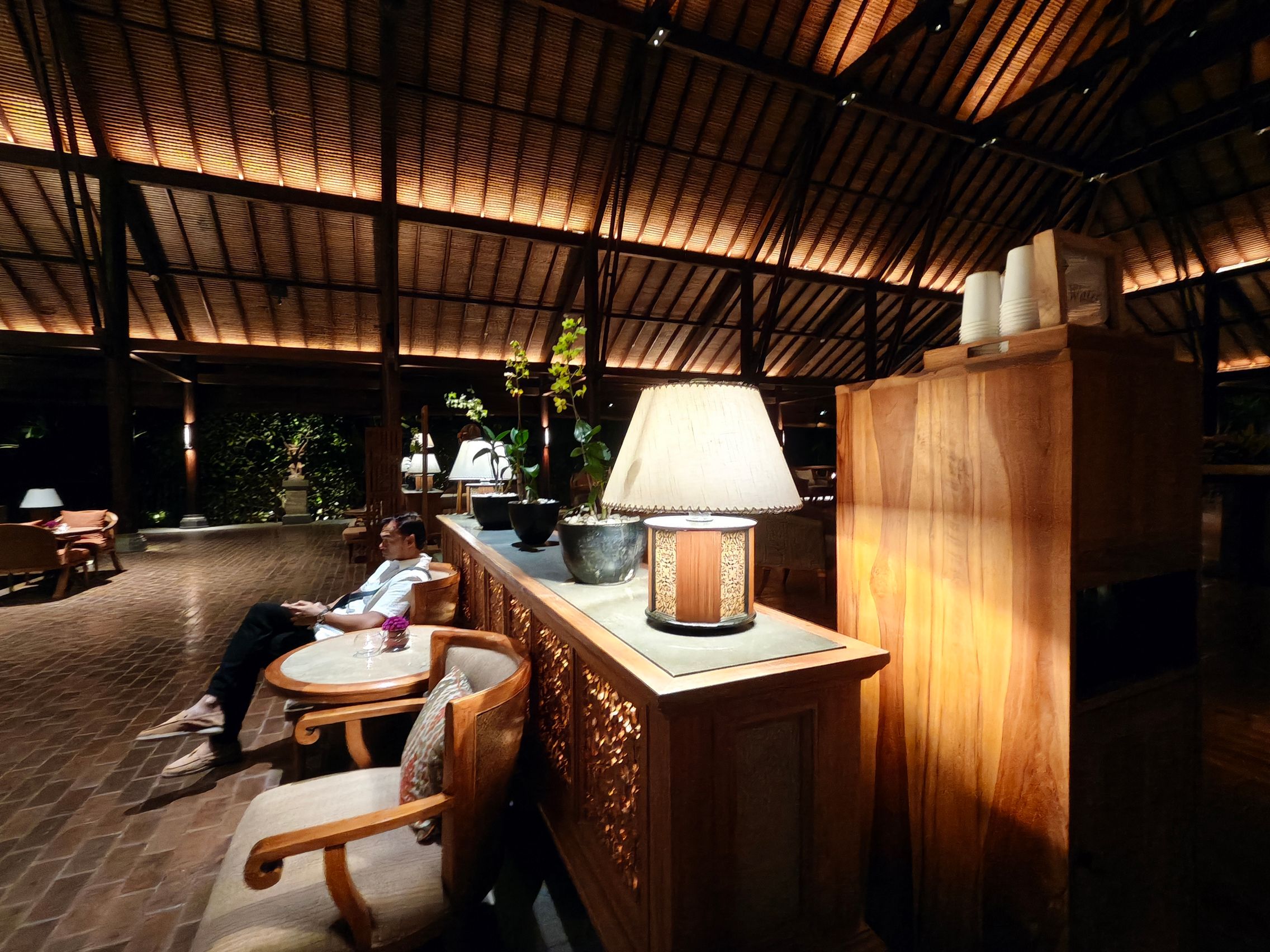 La 10 ore distanță eram deja la hotel în Bali și foloseam telefonul pentru a fotografia culoarele luminoase ale resortului, cu multe reflexii prinse perfect. Primul selfie nu a ieșit tocmai bine, topit după ce am dat din nou de căldură după câteva minute petrecute în cameră cu AC-ul în funcțiune. La fel ca și ziua, nu trebuie să te grăbești cu selfie-urile. Trebuie să îi acorzi puțină stabilitate pentru a prinde cum trebuie chipul tău.