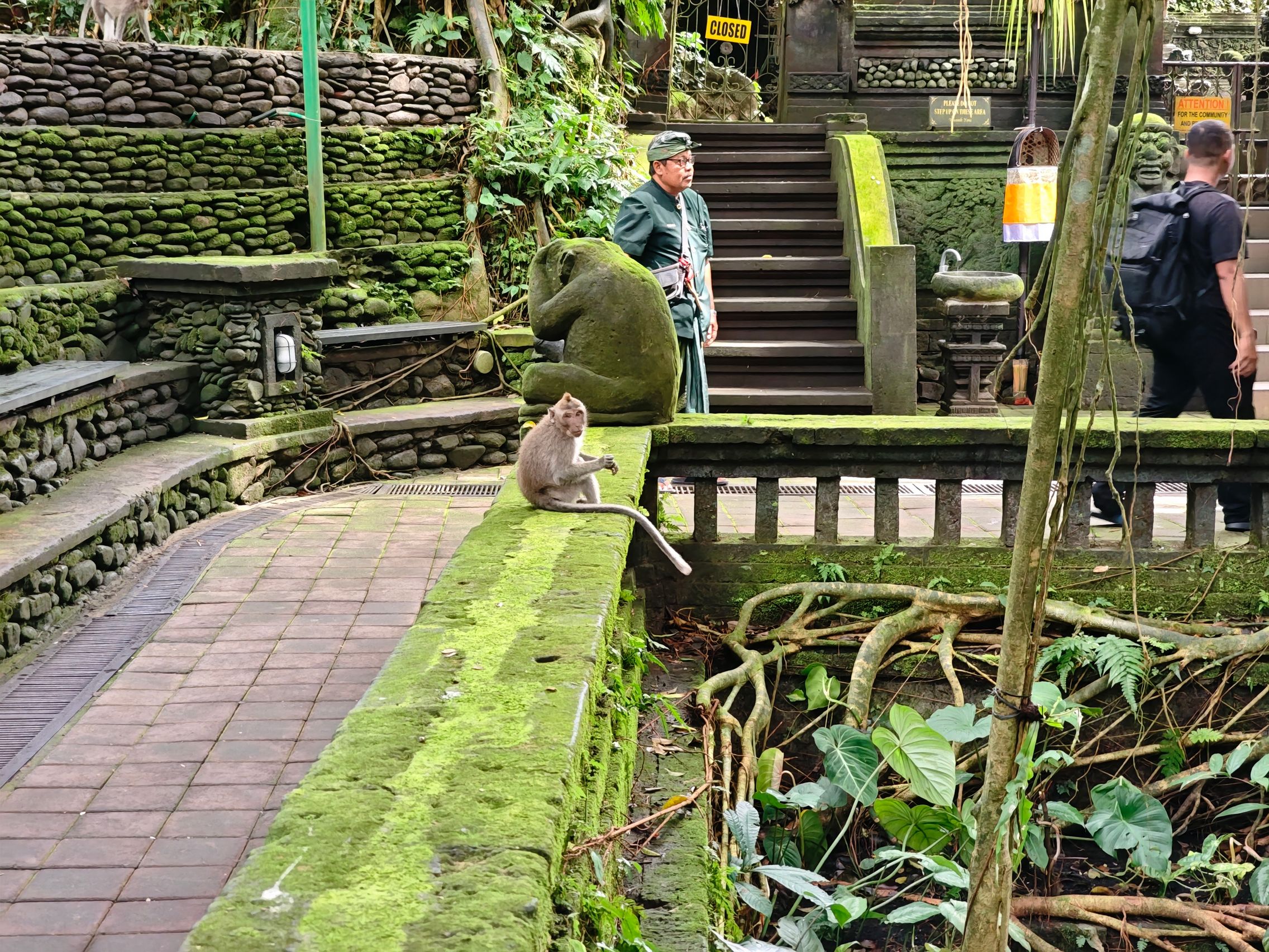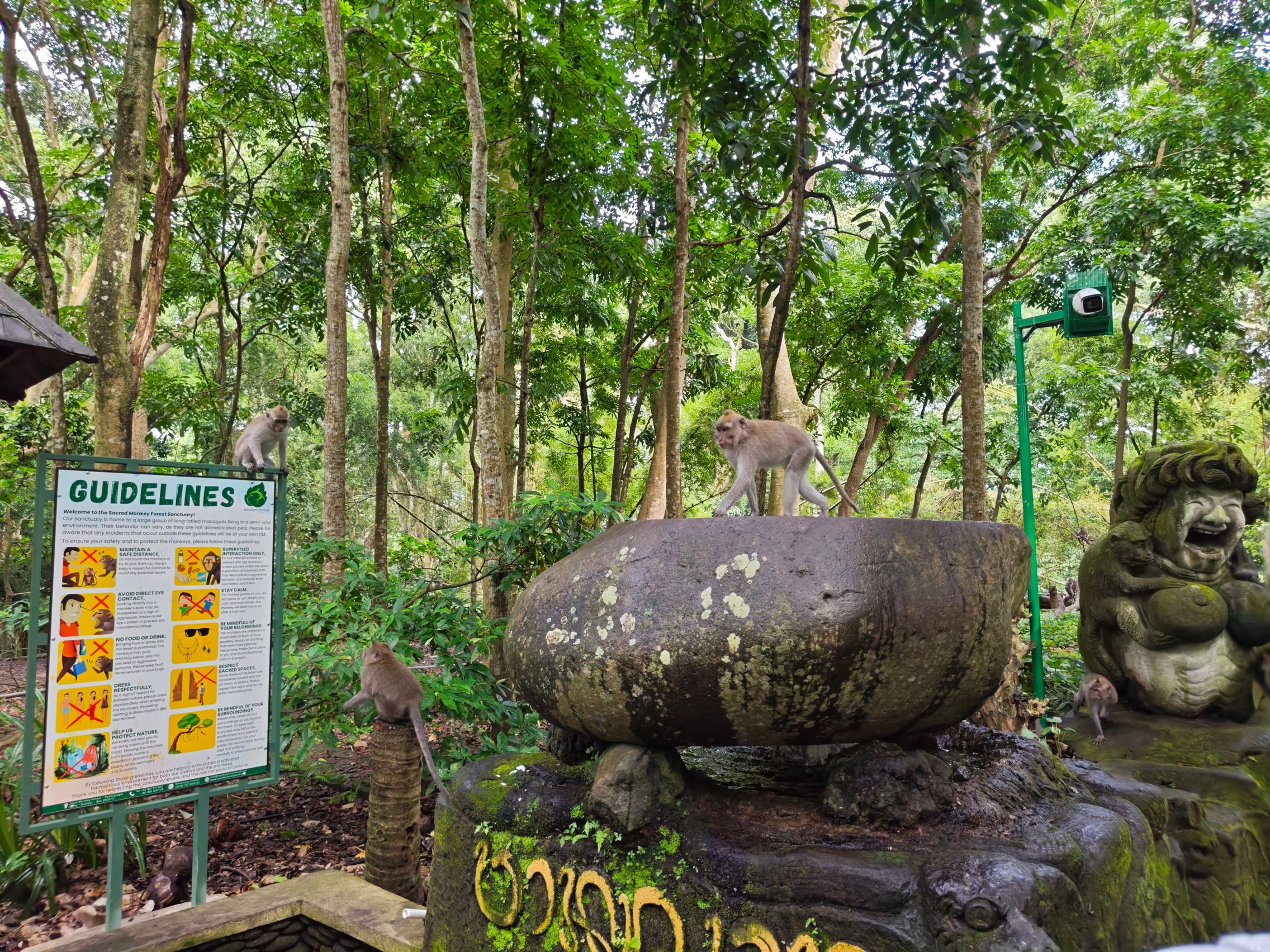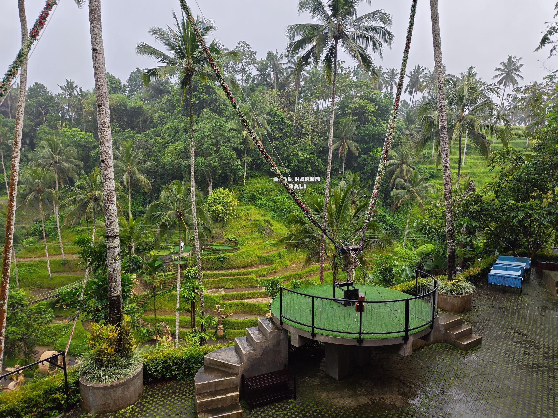 După cafea, am ajuns în pădurea plină de maimuțe obraznice, care au furat de prin ghiozdane și tras de cerceii unei domnișoare, iar din câte am auzit au fost mai pașnice decât de obicei, pentru că se mai lasă și cu ochelari rupți, telefoane furate de către maimuțici. Am stat mai la distanță și am folosit zoom-ul pentru a le vedea mai îndeaproape. Spre final de călătorie am făcut și panoramare, teste de zoom peste câmpurile fascinante de orez, locul de unde vin fotografiile cu leagănele în care se urcă îndrăgostiții. Sunt foarte mulțumit de cum livrează culorile la video această cameră, de detalii, focus și de zoom-ul 2.5x. Nu e tocmai camera pentru filmat din mers totuși.
