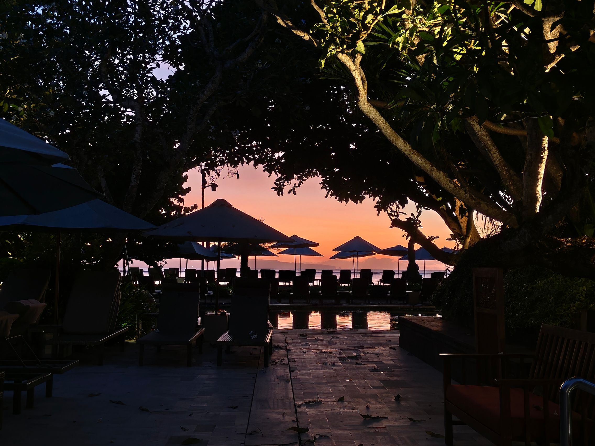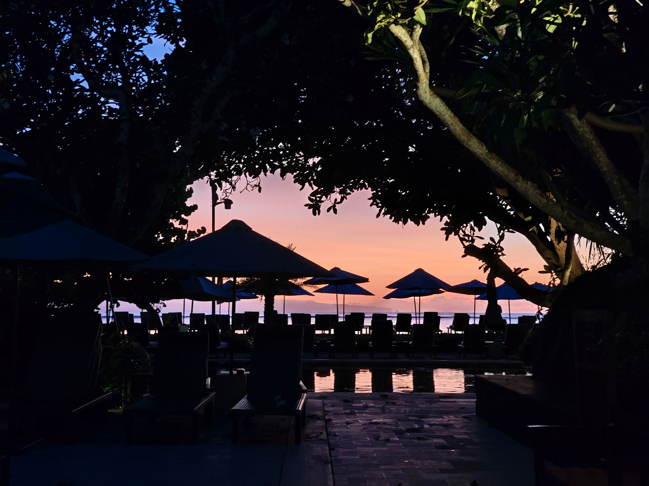 Ziua s-a terminat rapid, cu un drum spre hotel și o cină scurtă. Cu schimbul de fus orar și cu gândul la un răsărit maiestuos, m-am trezit foarte devreme, de pe la 5 dimineața și am avut noroc pentru că a fost singura zi cu răsărit, fiind sezon de ploi în Bali, cu furtuni serioase în zilele ce au urmat. Am prins un răsărit superb cu jocuri de culori pe cer, asistând la trezirea tuturor viețuitoarelor și a turiștilor care sunt puși serios pe jogging.