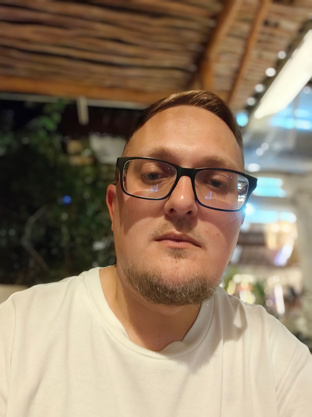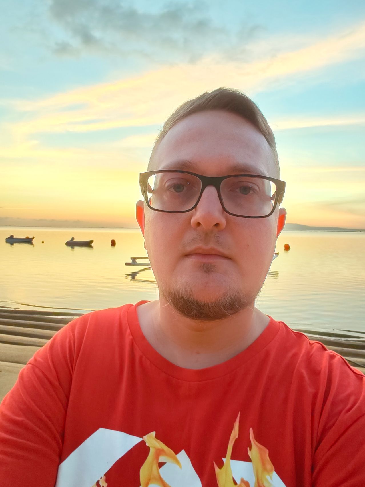 Văd și expresivitate și îmi place că tenul este excelent redat, fără a optimiza culoarea sa, având diferite tonuri în funcție de cum pică lumina. Pe plajă soarele puternic din fundal a cam supraexpus cadrul, dar sunt mulțumit că subiectul, eu, am rămas redat destul de clar. Simt că este o cameră care are nevoie de stabilitate, nu e pentru grabă și fotografiere din mers. Ar fi fost binevenit autofocusul pentru a mai regla din neajunsuri.