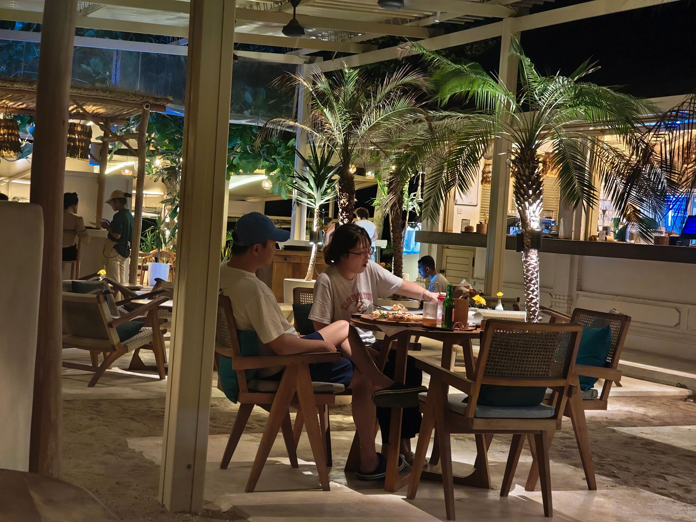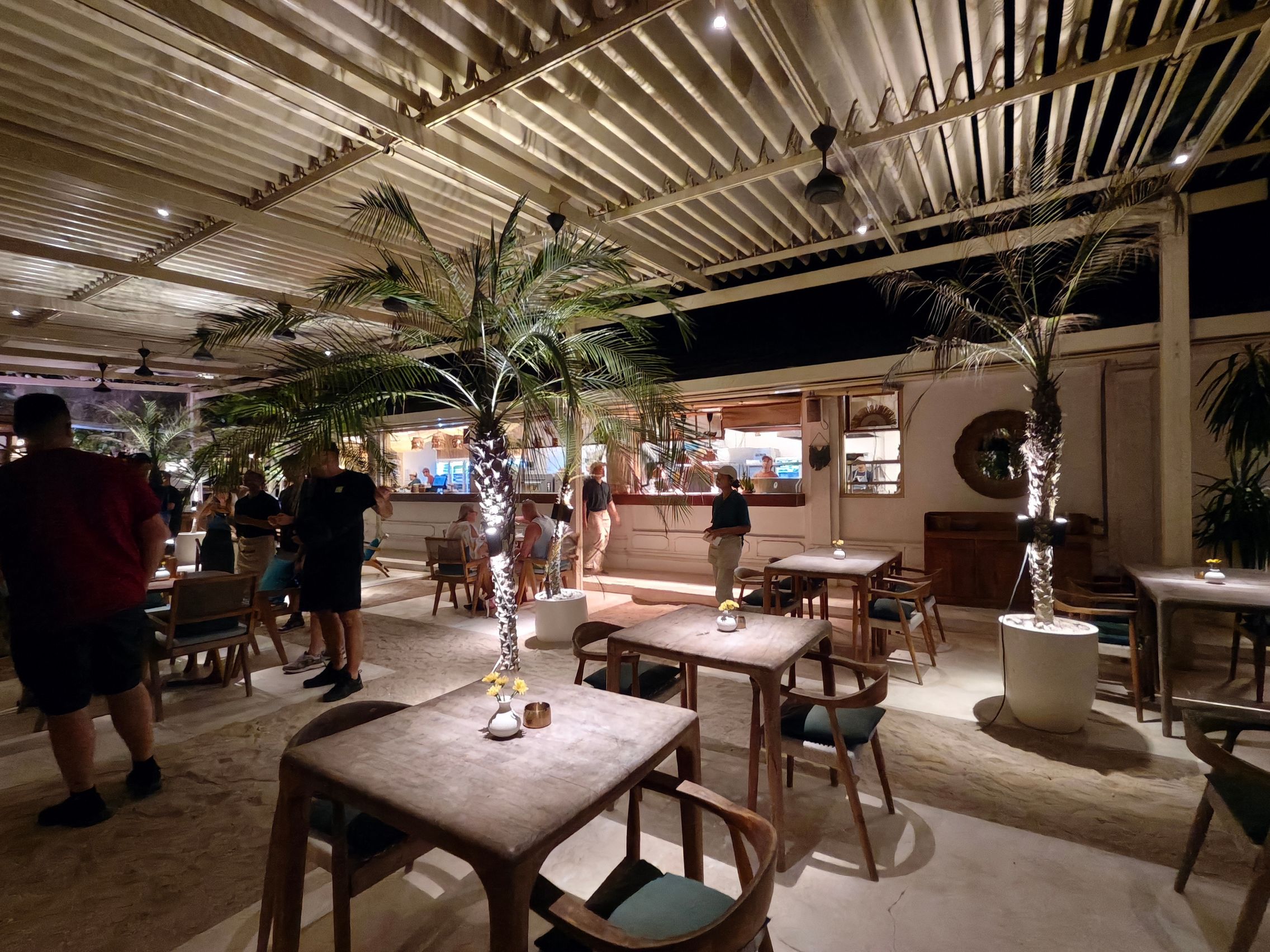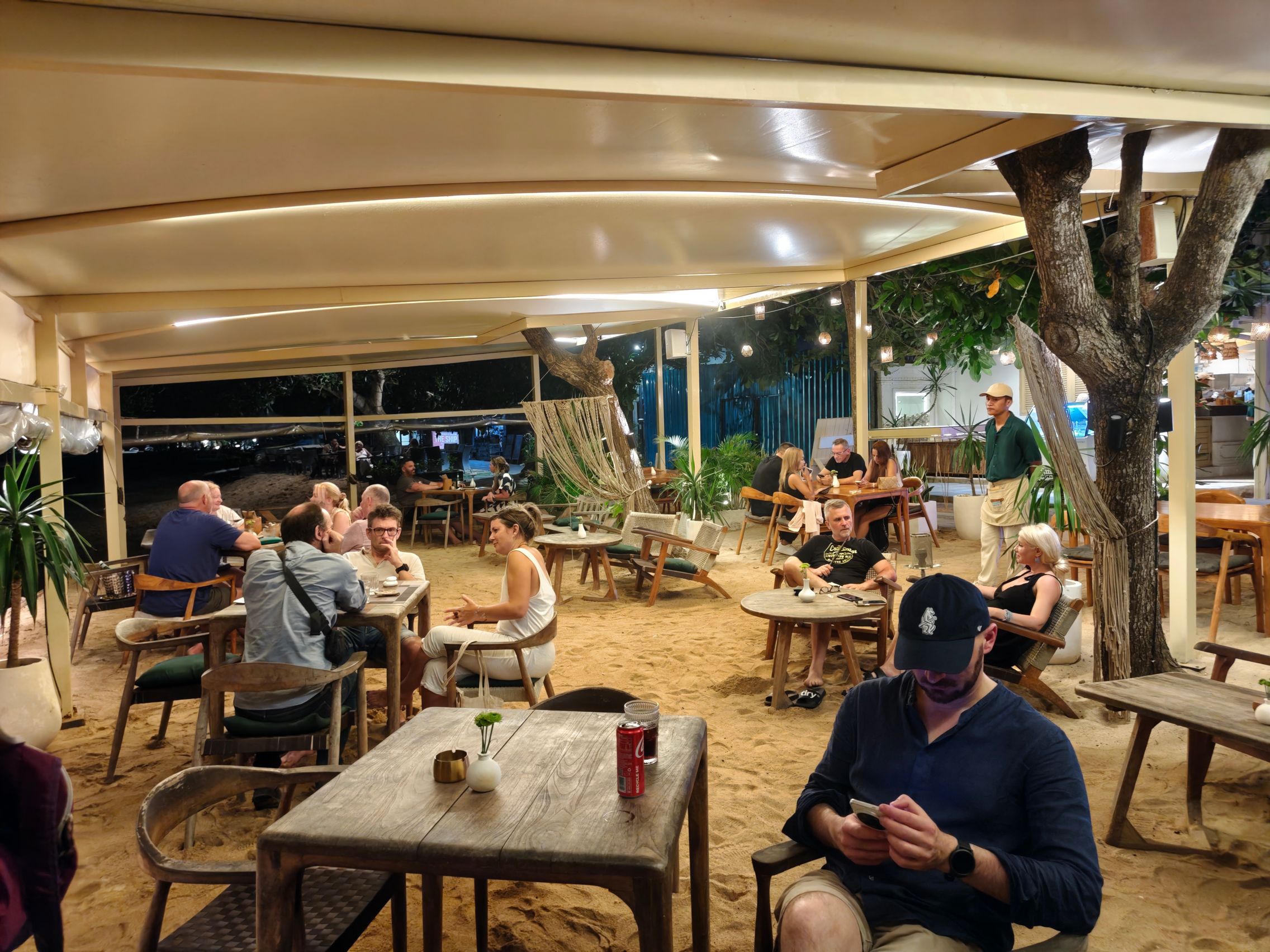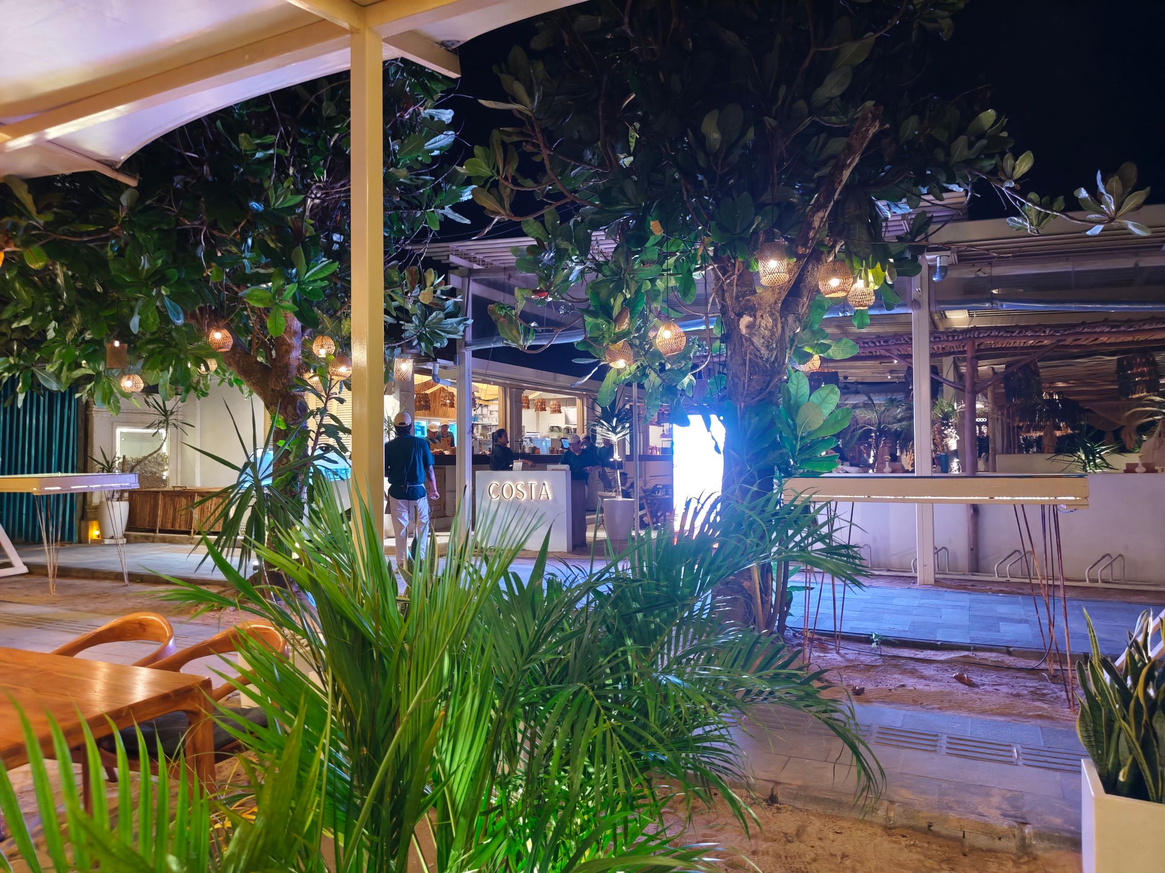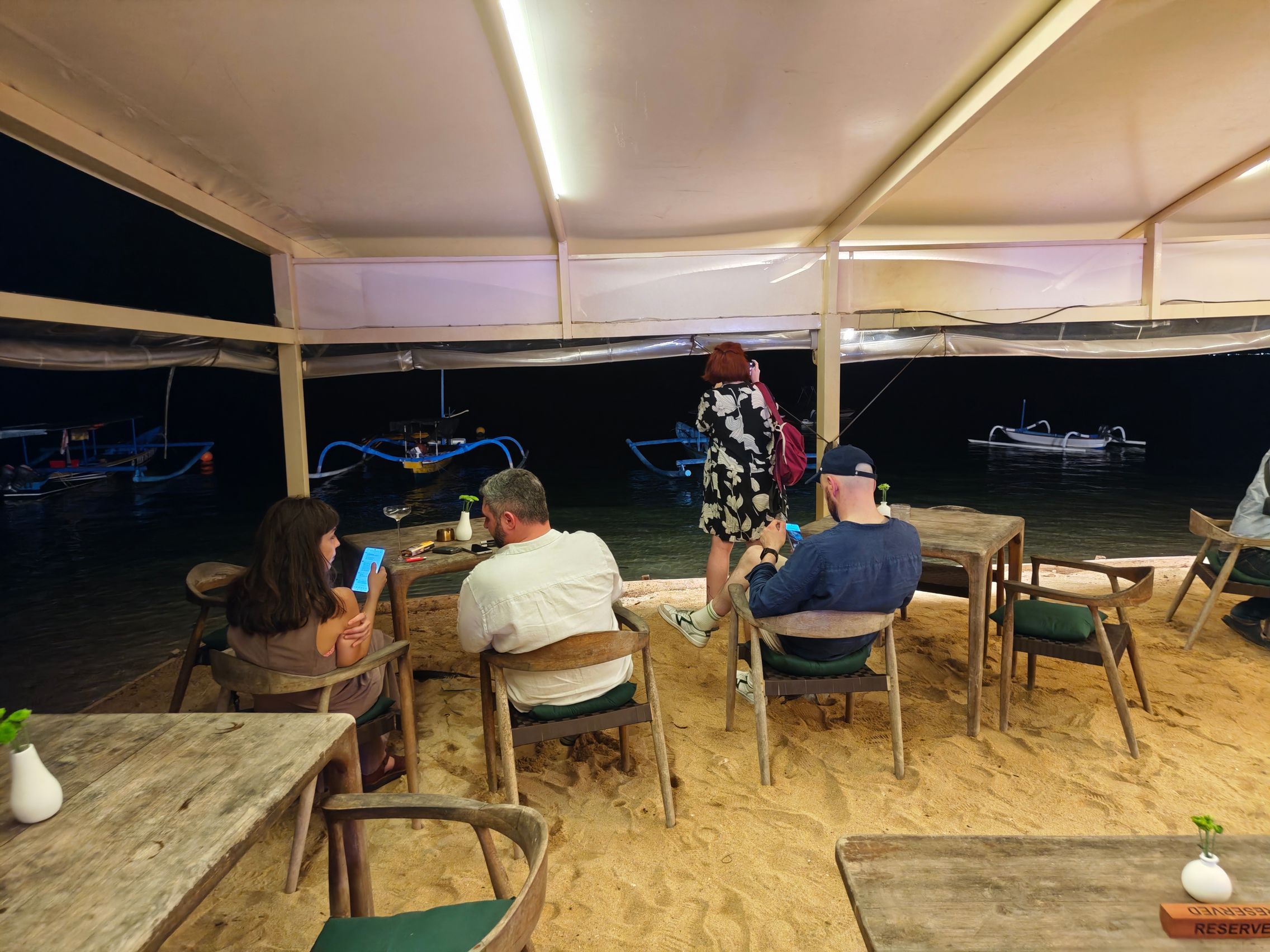 Am pornit apoi spre un mic restaurant, pe străduțele din Bali și la fel ca la iPhone apare uneori o reflexie în cadru. Stâlpul cu lumina sa măreață sus de tot creează nște raze, dar sunt mulțumit de detalii. Se simt și pașii realizați, camera având ceva probleme în a se descurca perfect pe noapte. Rămâne cu detalii și ambianța sonoră bine captată. Legat de sunet, la restaurant a avut loc un scurt moment de interpretare live iar microfoanele au făcut o treabă foarte bună.
