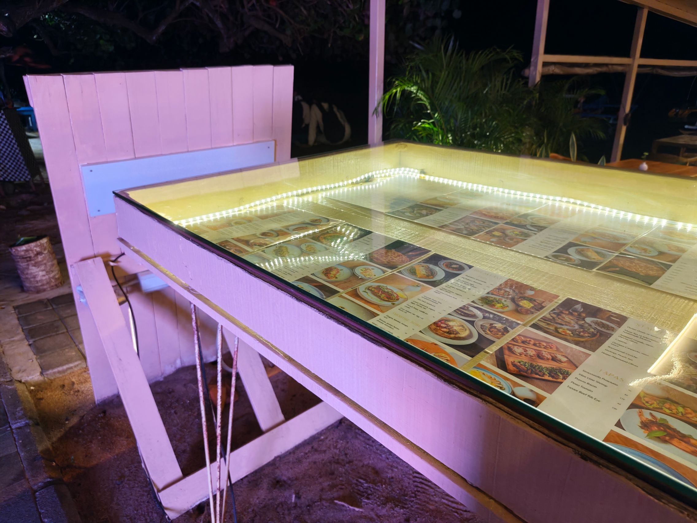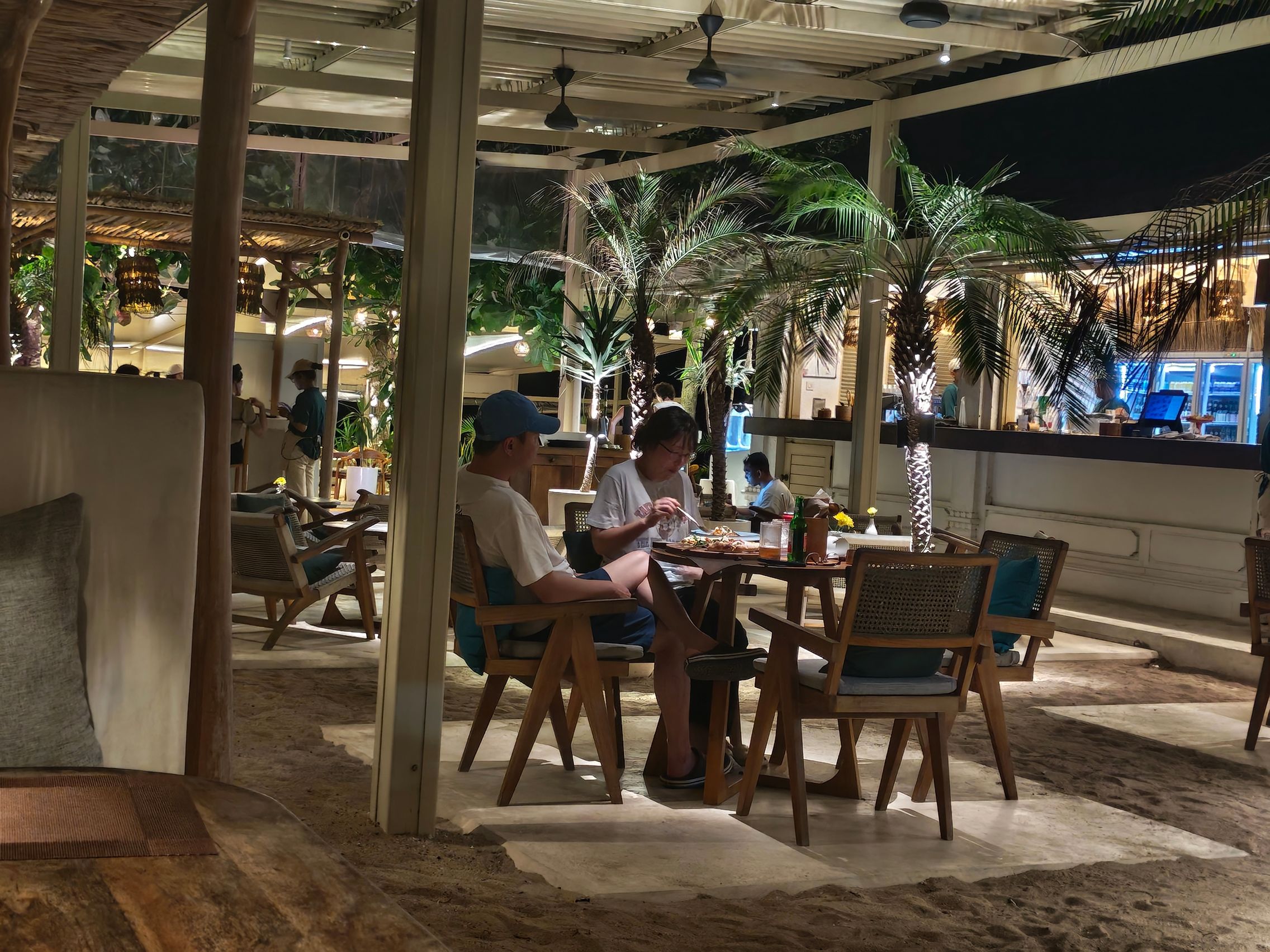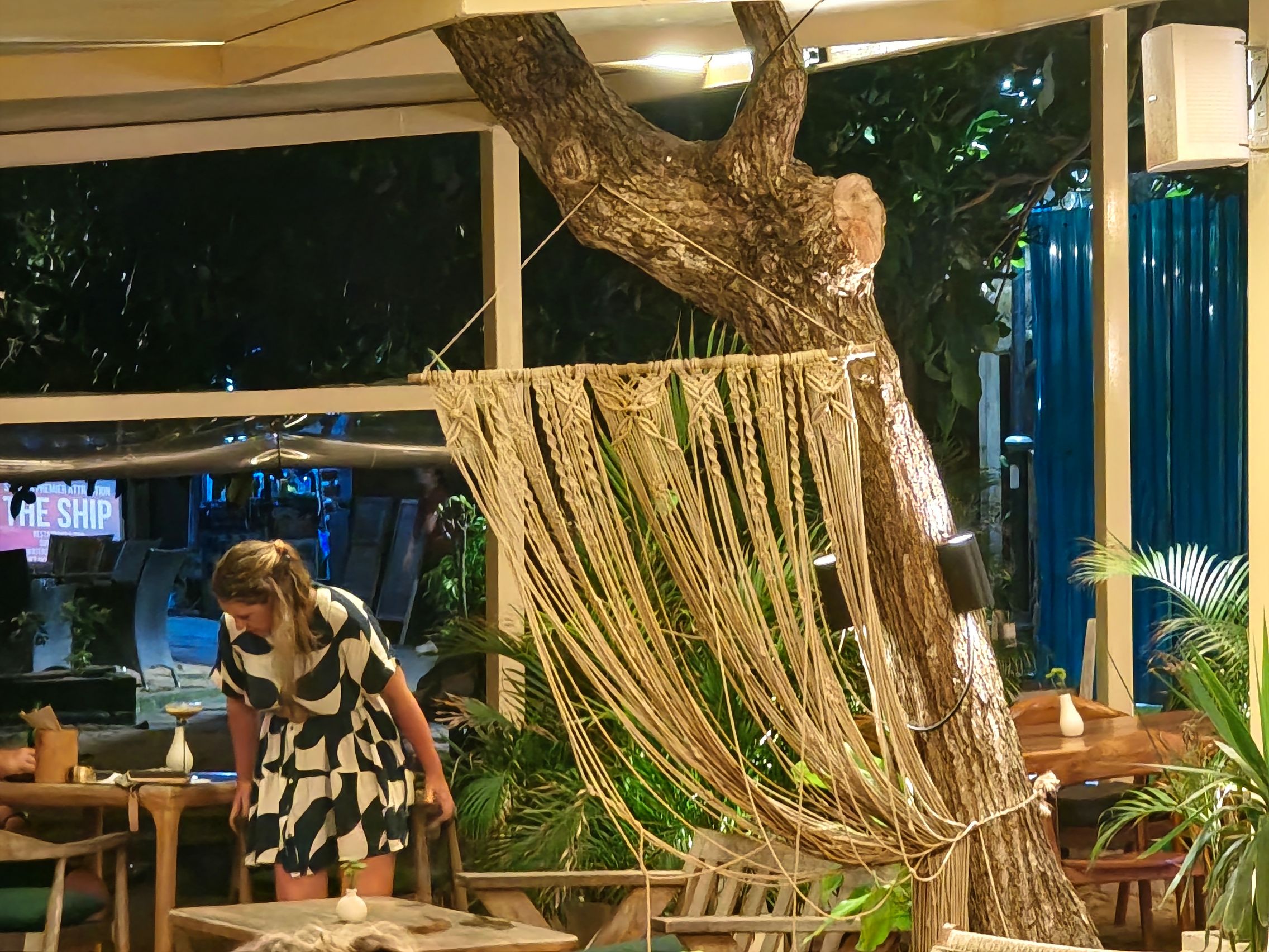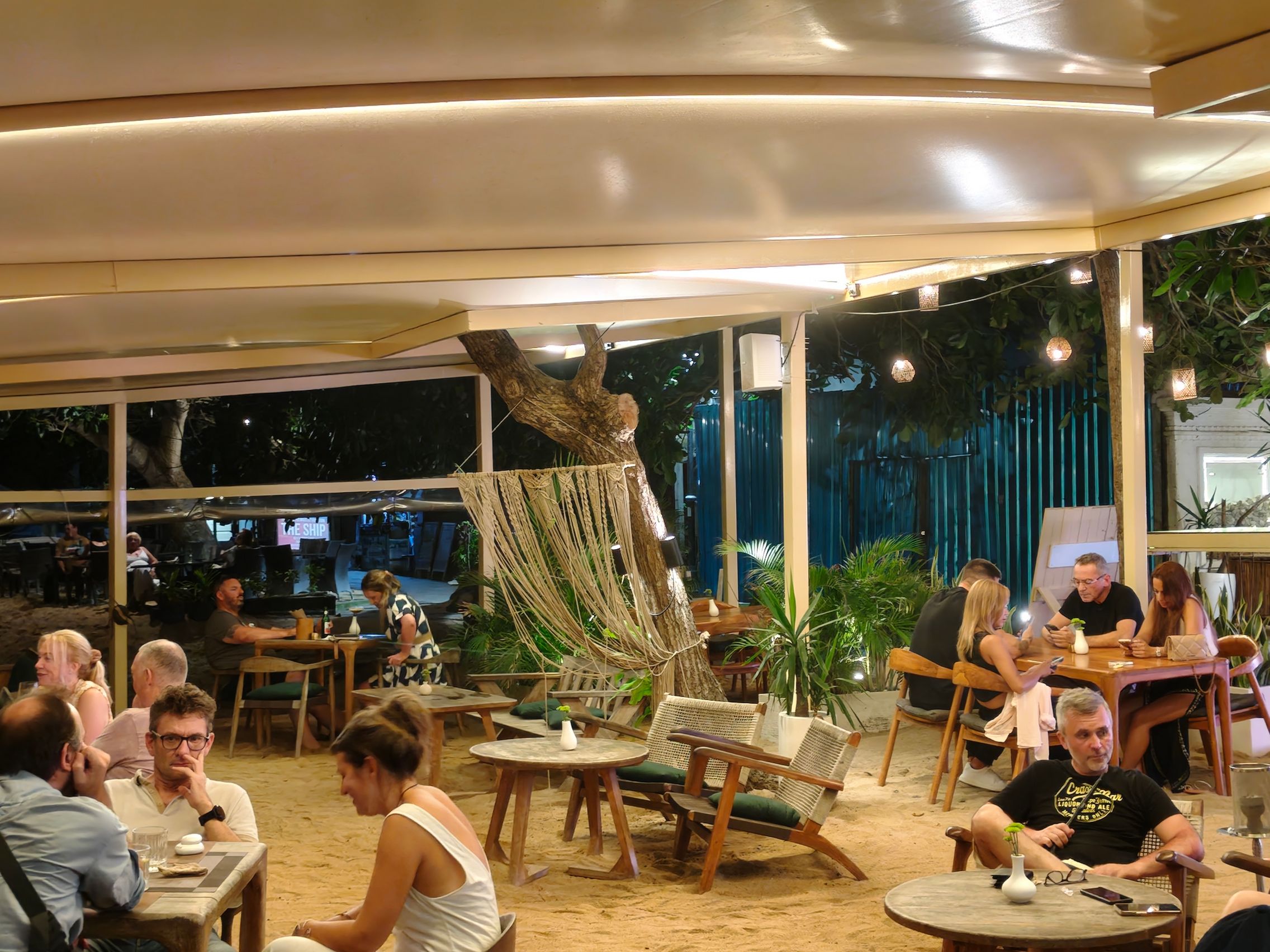 Am pornit apoi spre un mic restaurant, pe străduțele din Bali și la fel ca la iPhone apare uneori o reflexie în cadru. Stâlpul cu lumina sa măreață sus de tot creează nște raze, dar sunt mulțumit de detalii. Se simt și pașii realizați, camera având ceva probleme în a se descurca perfect pe noapte. Rămâne cu detalii și ambianța sonoră bine captată. Legat de sunet, la restaurant a avut loc un scurt moment de interpretare live iar microfoanele au făcut o treabă foarte bună.