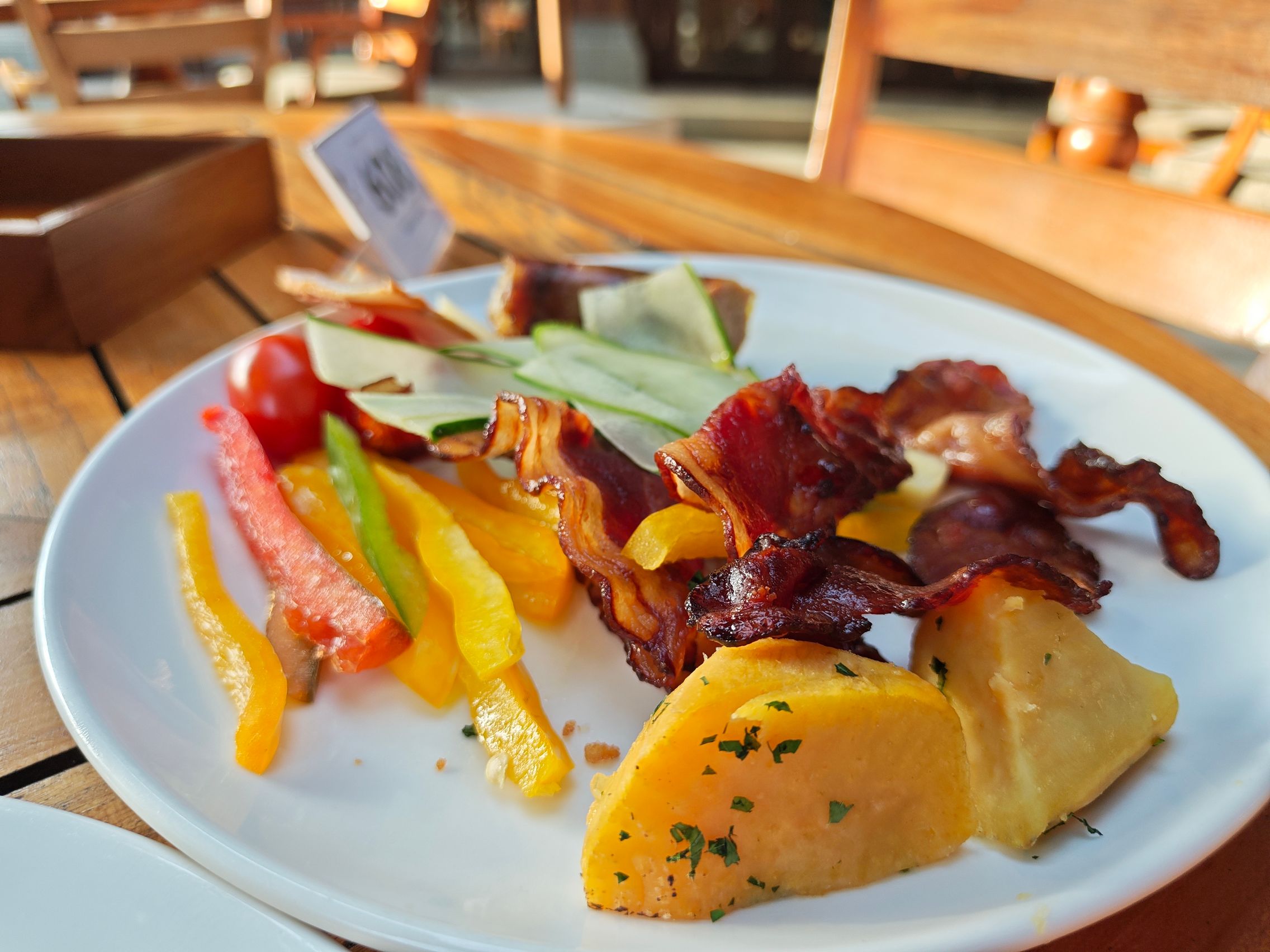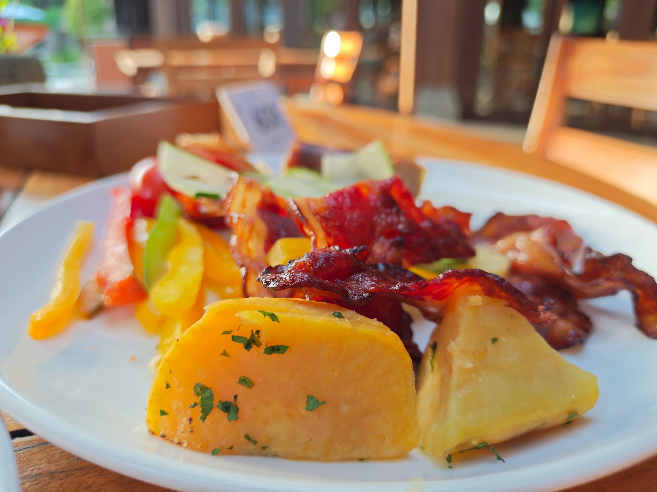 Am fotografiat și bărcile tradiționale foarte colorate, cu nuanțe perfect redate, iar la un pas distanță am dat de piscinele de albastru azur ale hotelului, de multă vegetație și palmieri care completau decorul. Am pus camera la treabă și la interior, unde nu a dezamăgit. Preparate delicioase de la micul dejun care mă întorc în timp și parcă simt și acum cronțăneala feliilor de pâine ce acompaniau omletele de dimineață.