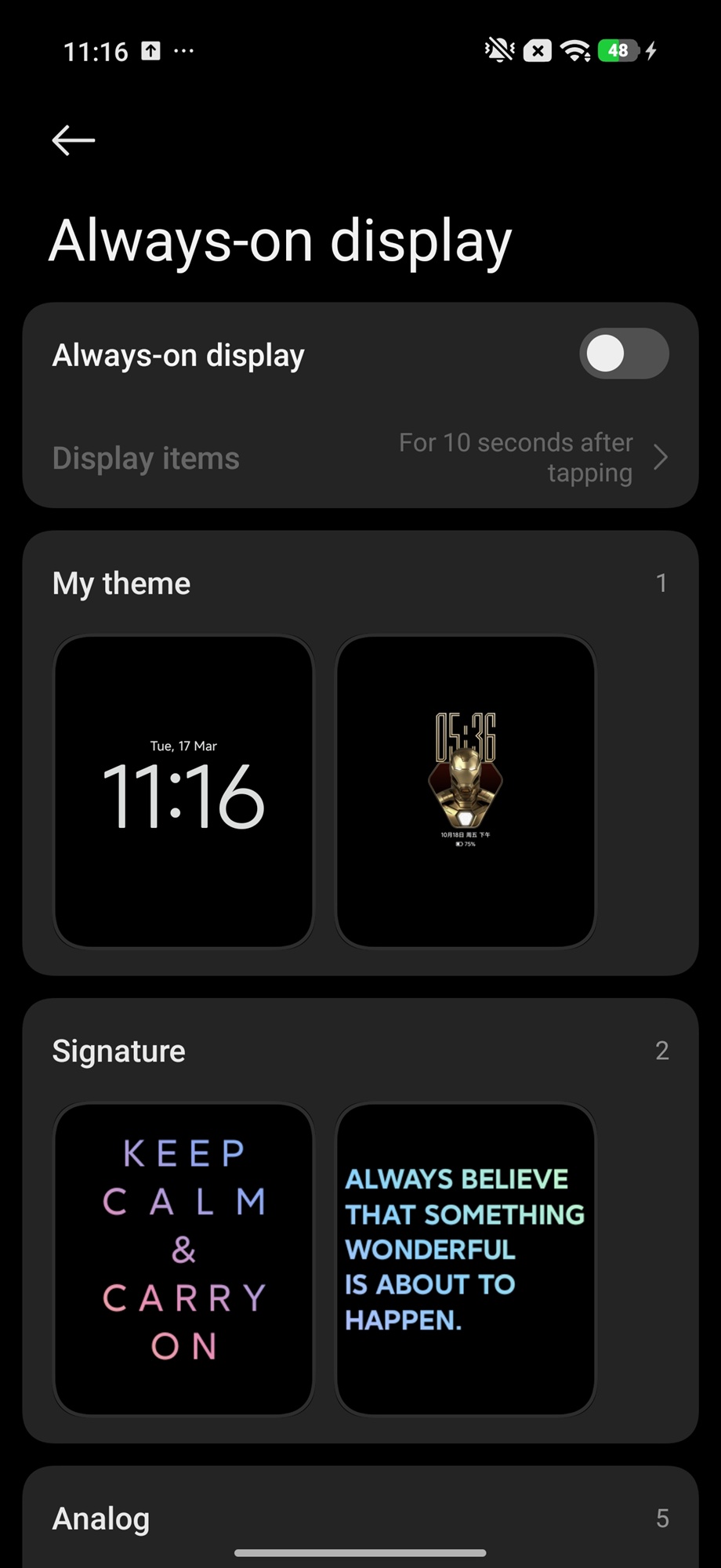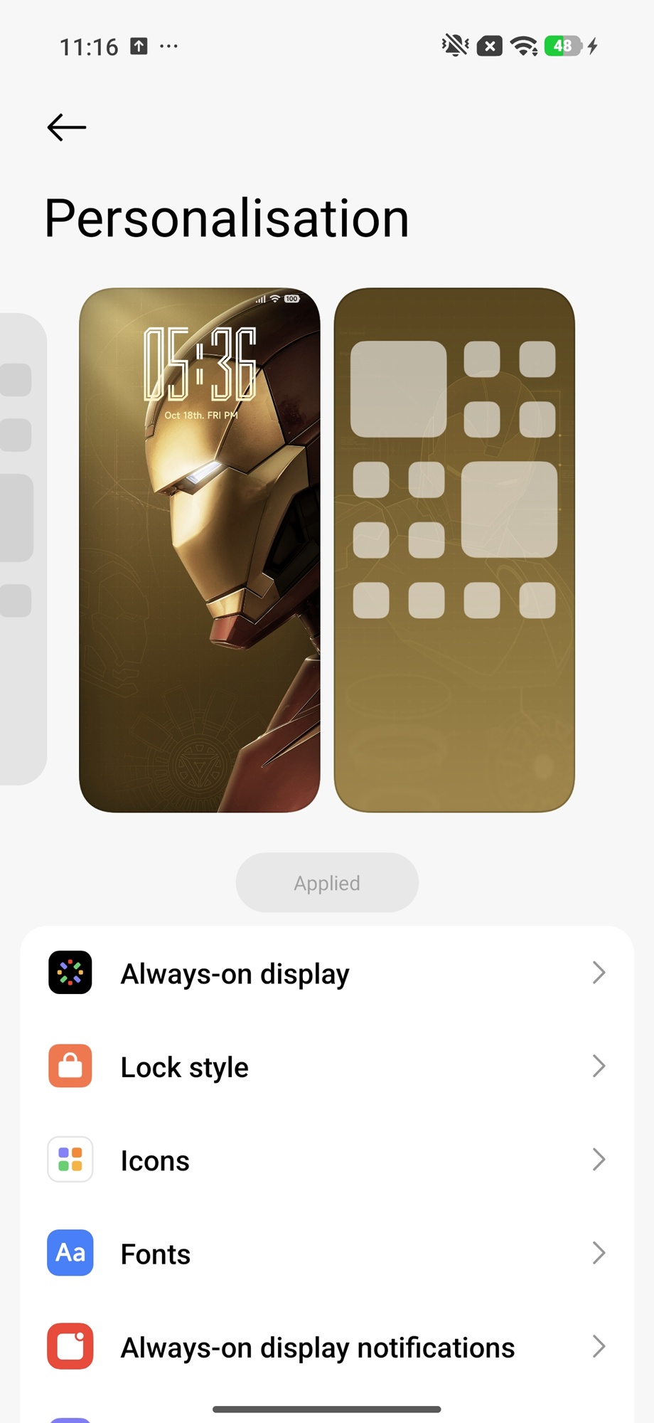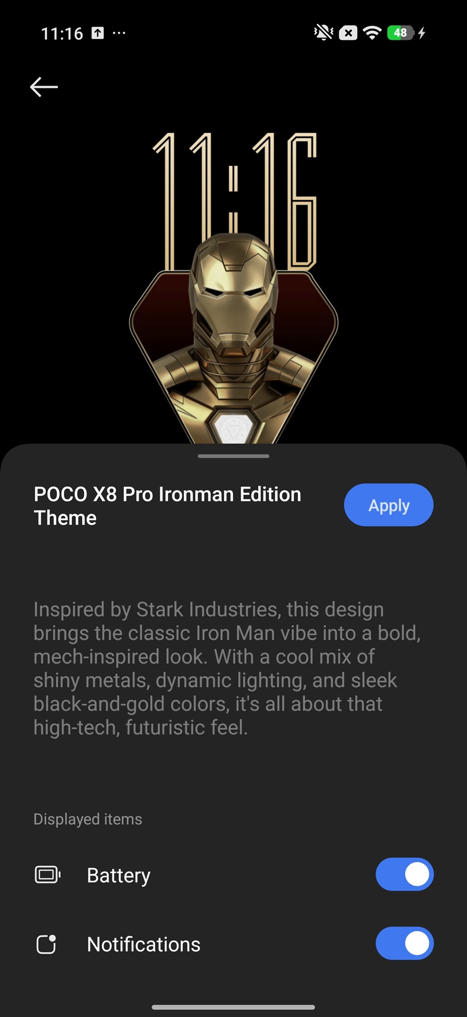 Varianta Iron Man Edition vine cu o temă custom aplicată ce ne aduce icon-uri dual-tone cu accente aurii, wallpapere dedicate Iron Man și o animație diferită pentru senzorul de amprentă integrat sub display. Personal nu sunt mare fan al acestei teme, mai ales că apare o neconcordanță între icon-uri per total, nu toate având parte de aceeași temă. În rest, HyperOS oferă o mulțime de opțiuni de personalizare, inclusiv alte teme gratuite sau cu plată ce pot fi aplicate rapid.