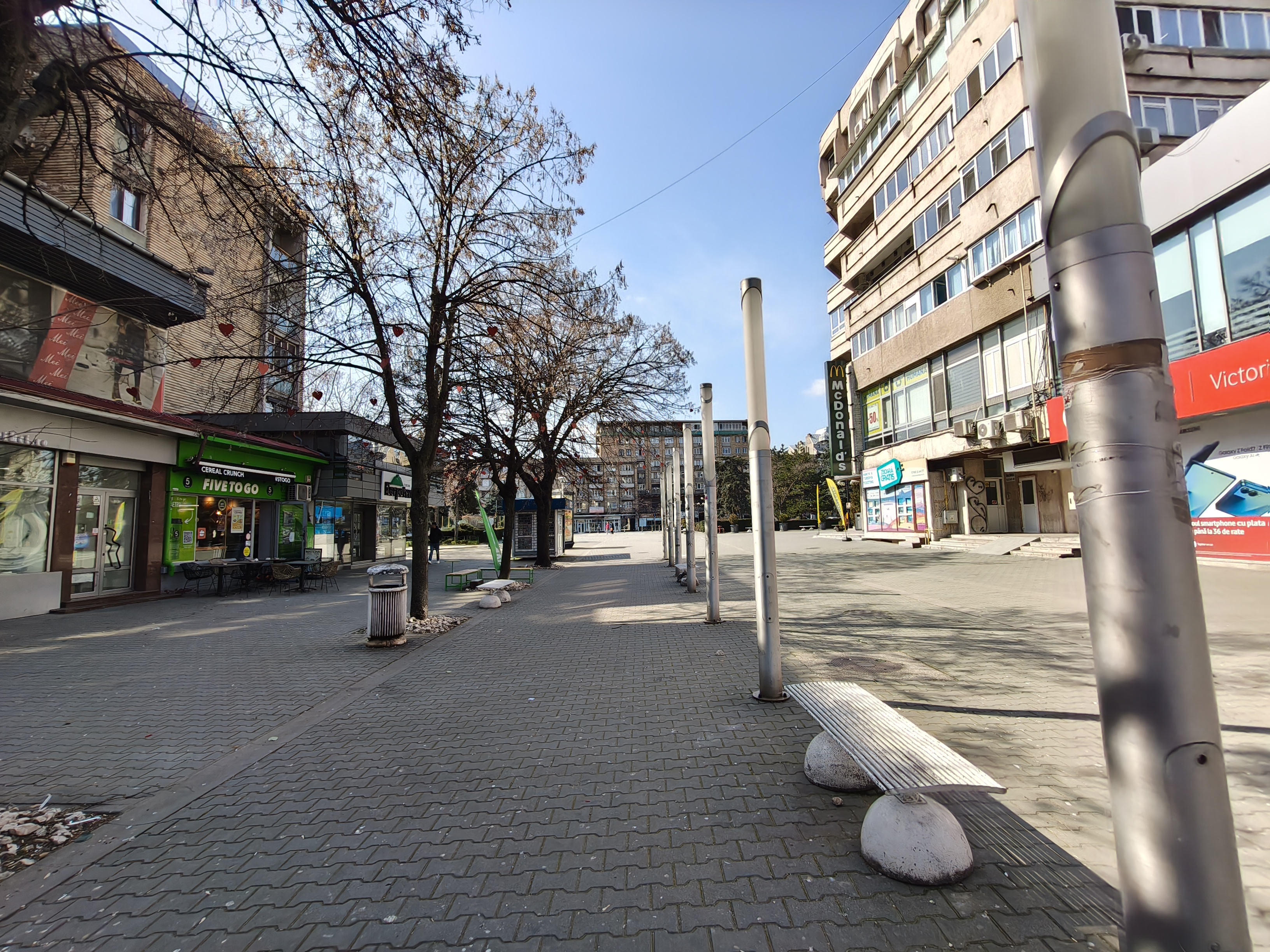 După zile friguroase și chiar zăpadă, am prins zi însorită în Ploiești, chiar călduroasă (deși nu am renunțat încă la fes). Sunt surprins și mulțumit de culorile redate atât în fotografiile realizate cu senzorul principal, cât și în cele captura cu cel ultrawide. Au constanță, nuanțele fiind similare inclusiv dacă privim spre cer, clădiri.