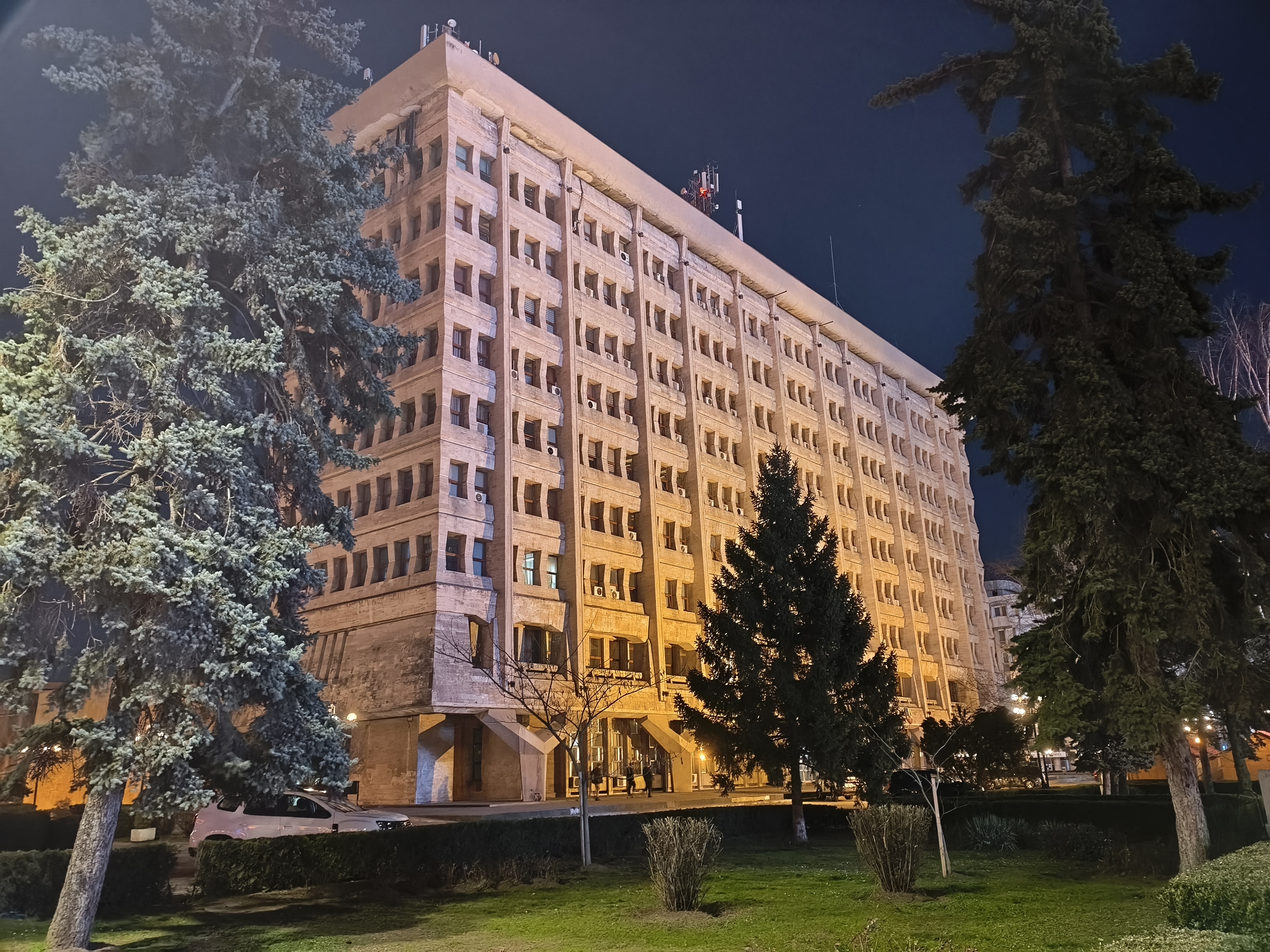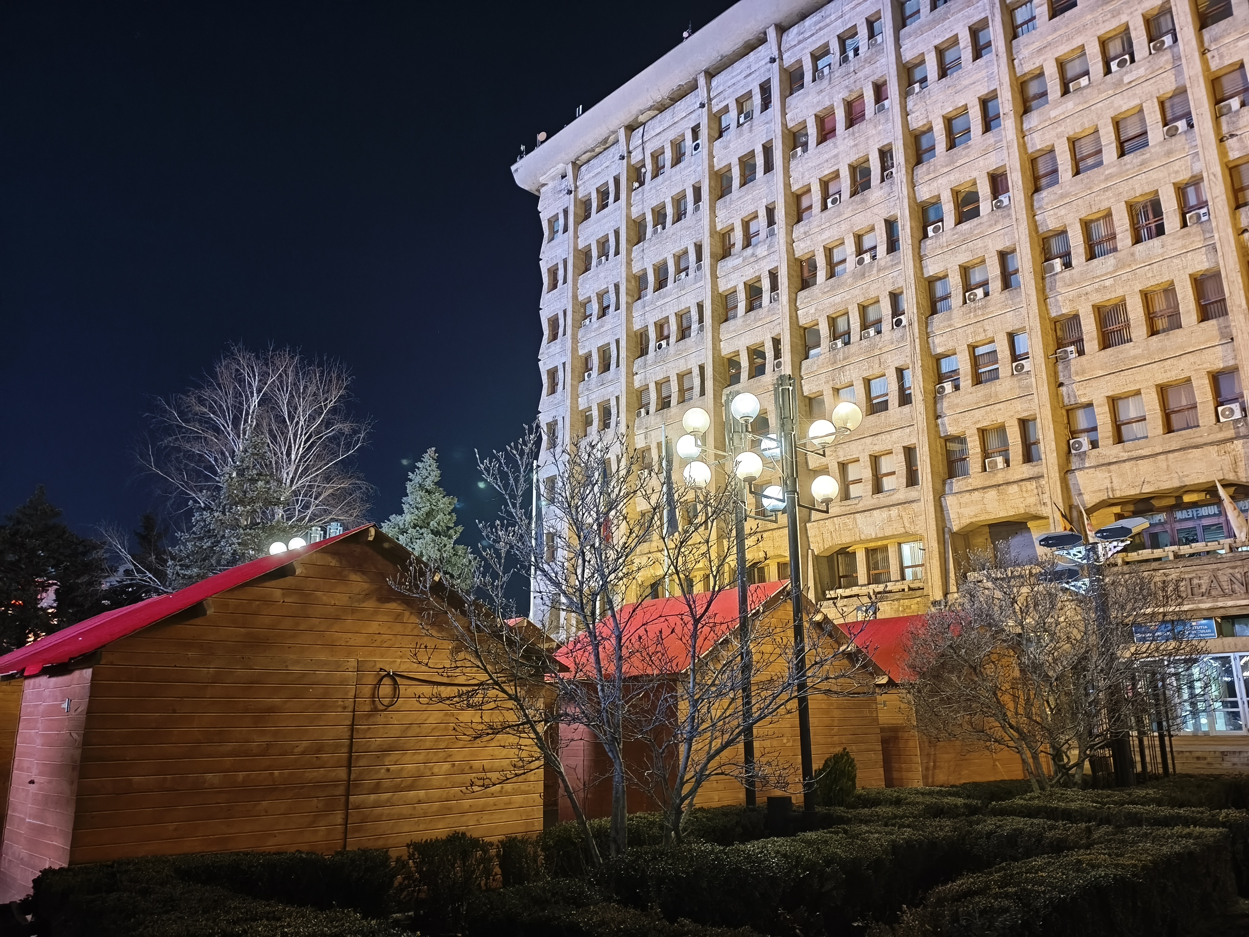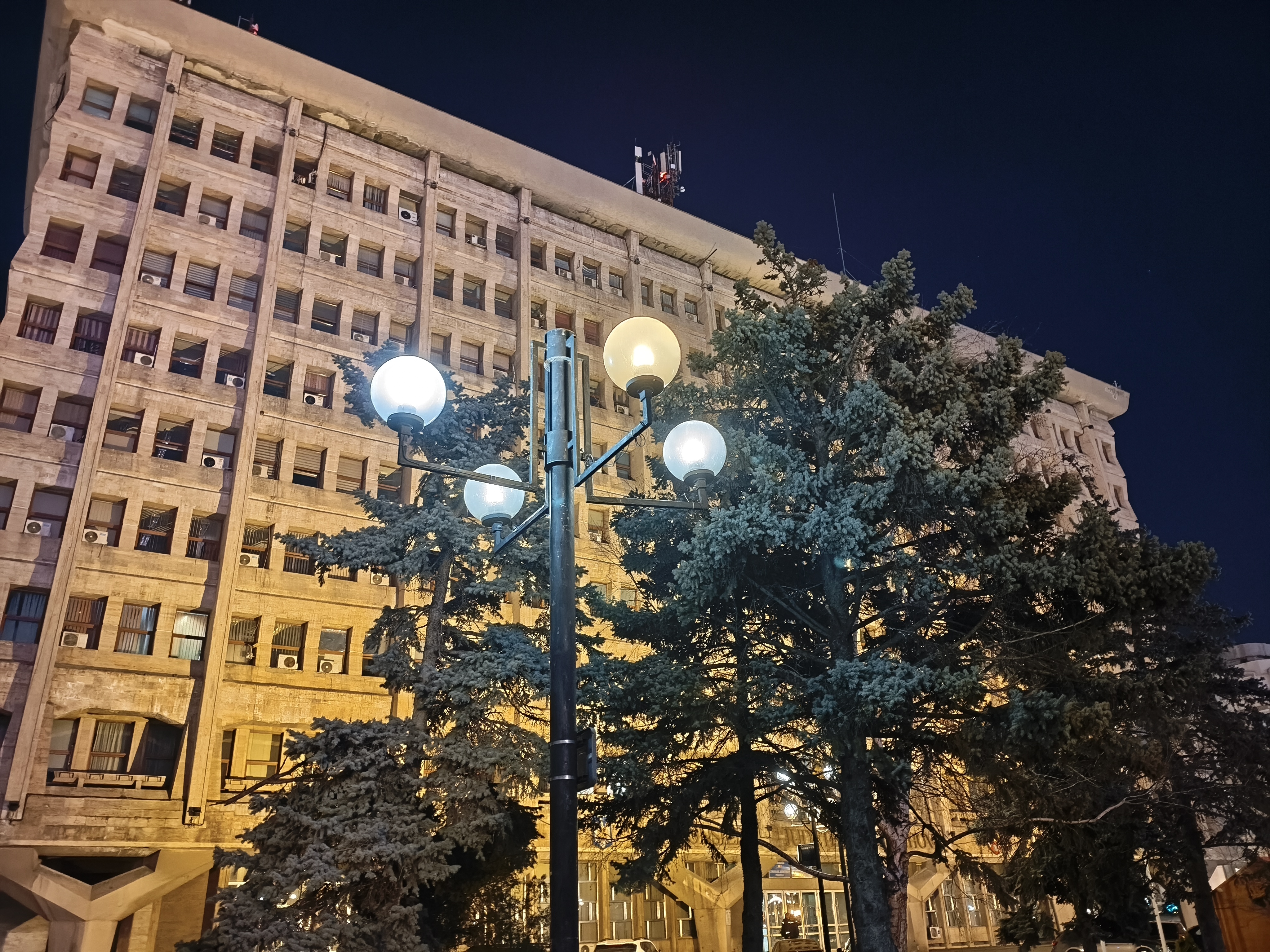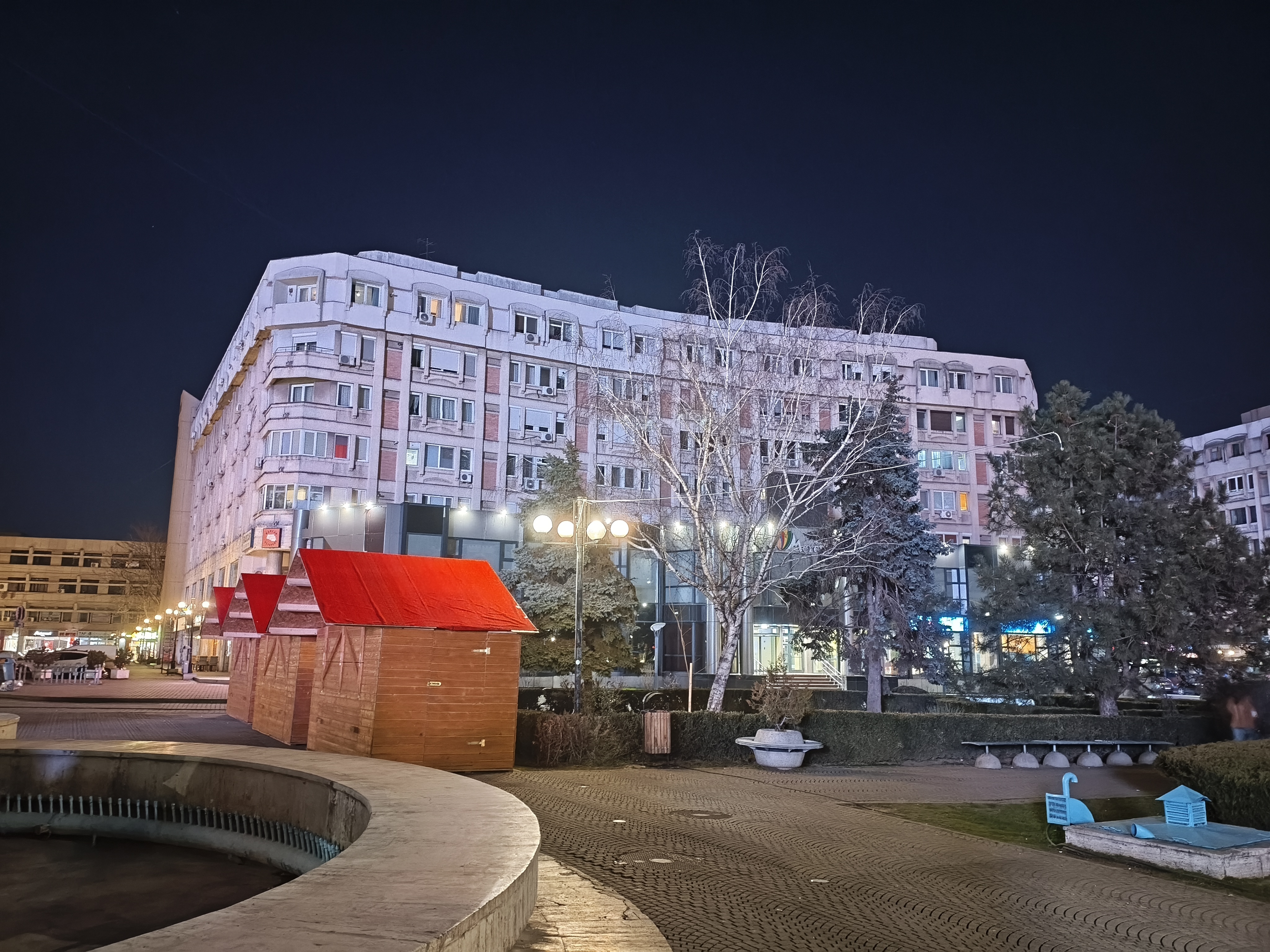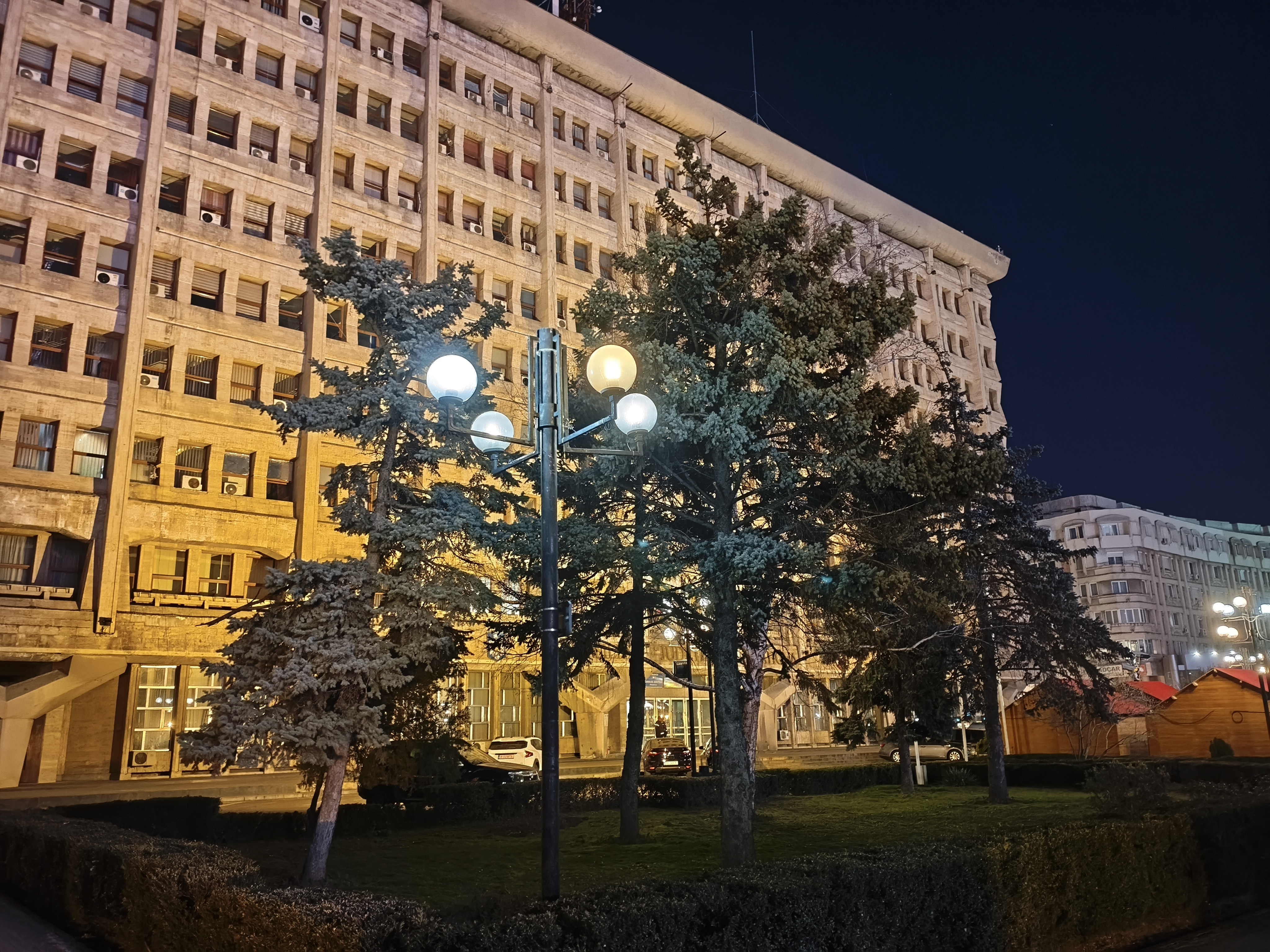 Chiar și în zonele mai puțin luminate, precum în jurul fântânii și la monumentul eroilor, avem detalii peste așteptări, chiar și scrisul fiind lizibil. Am și o poză cu Palatul Administrativ capturat în format 16:9 ce arată foarte bine. Deși nu avem Night Mode tradițional, el se aplică automat și cumva e mai rapid decât în cazul altor telefoane. Mă declar deci surprins și mulțumit de capturile low-light realizate cu acest model.