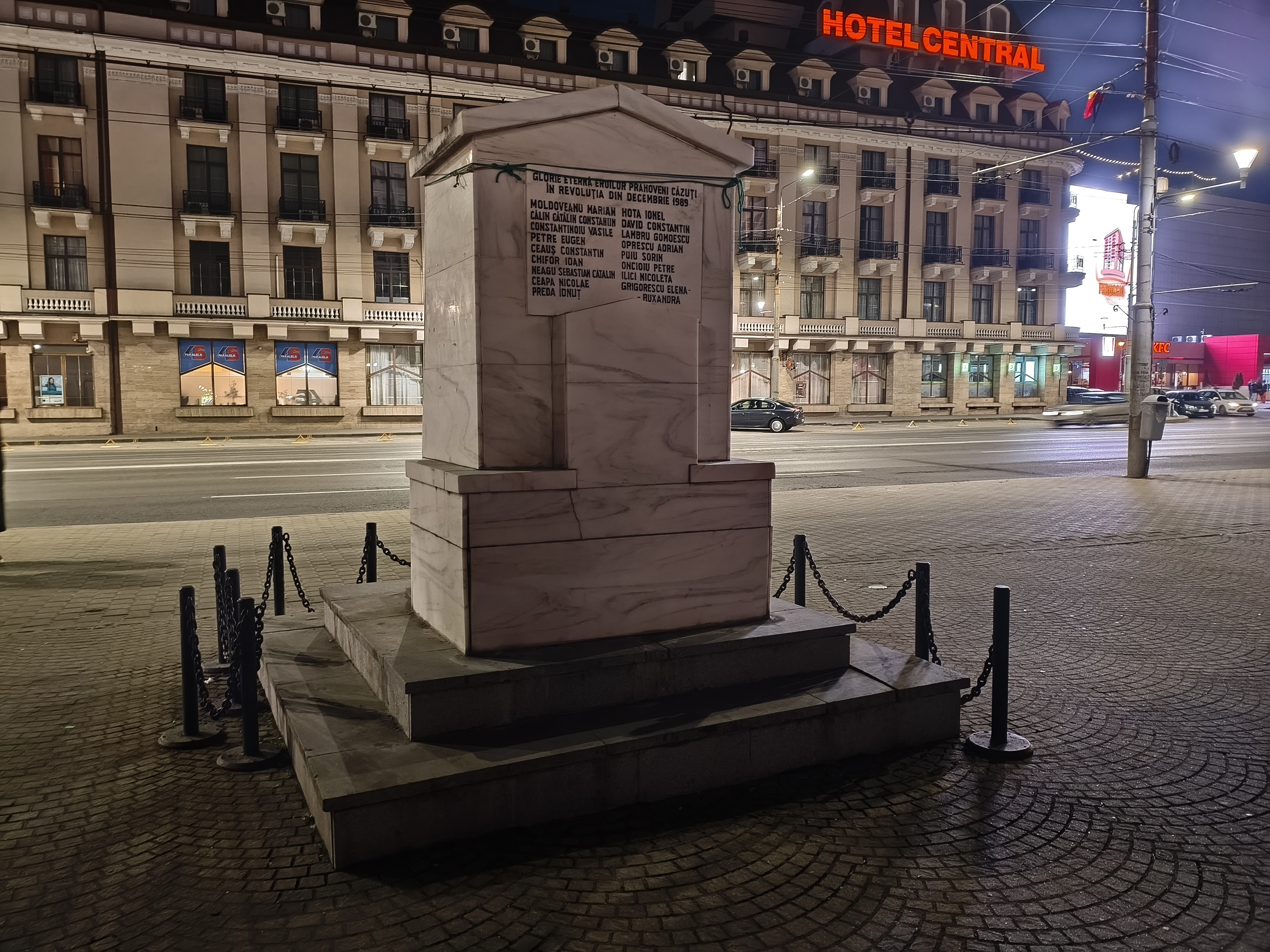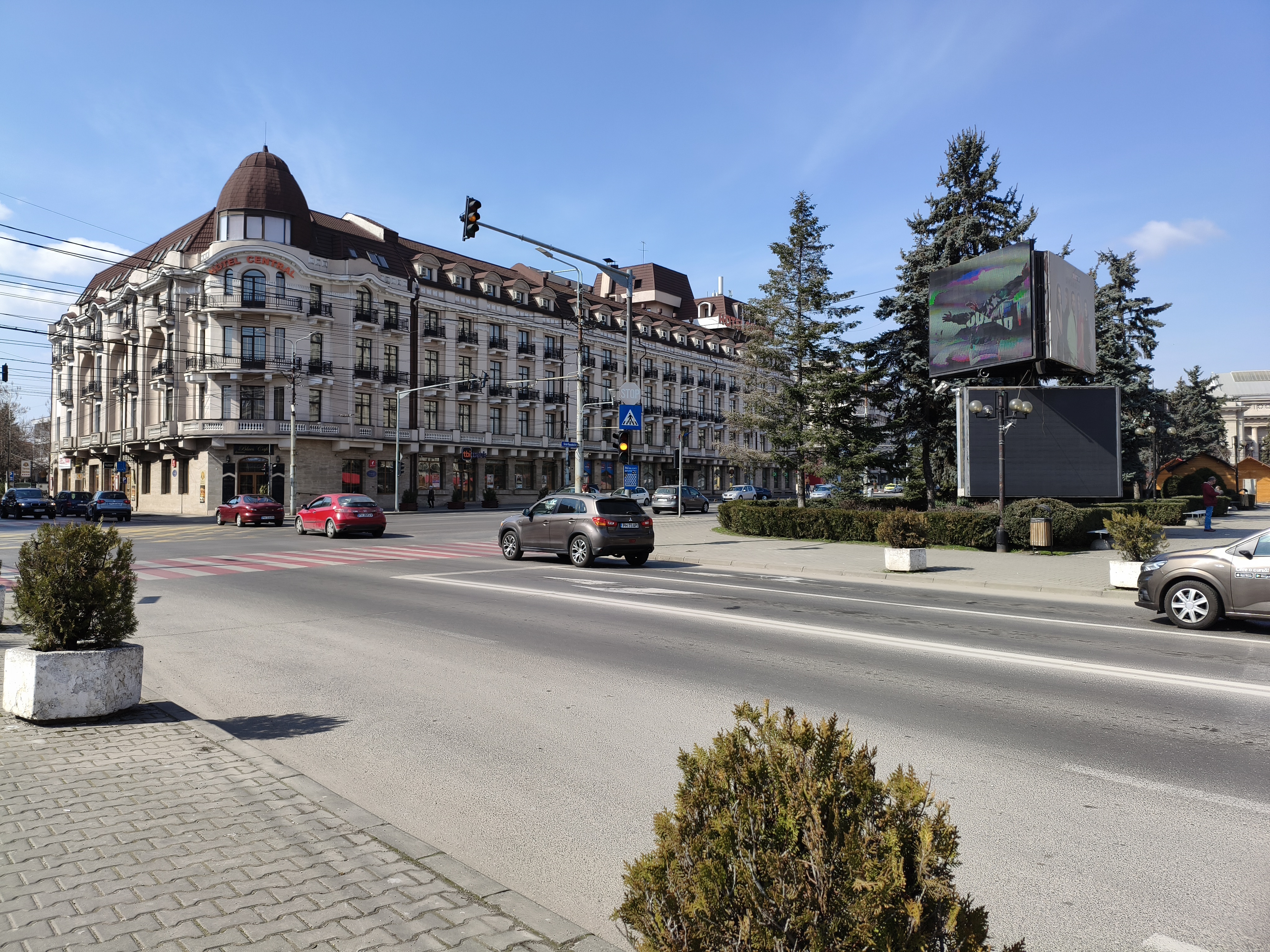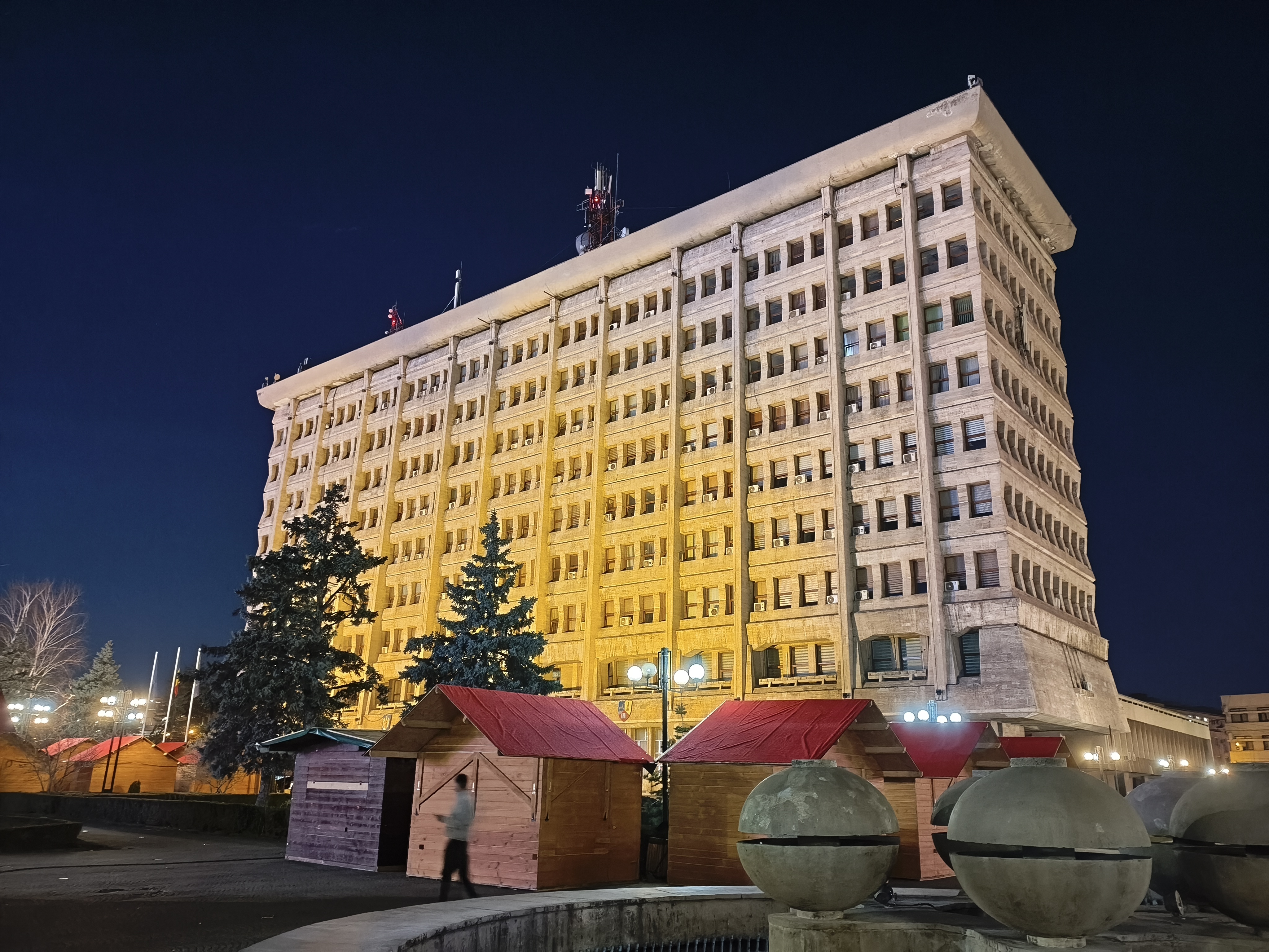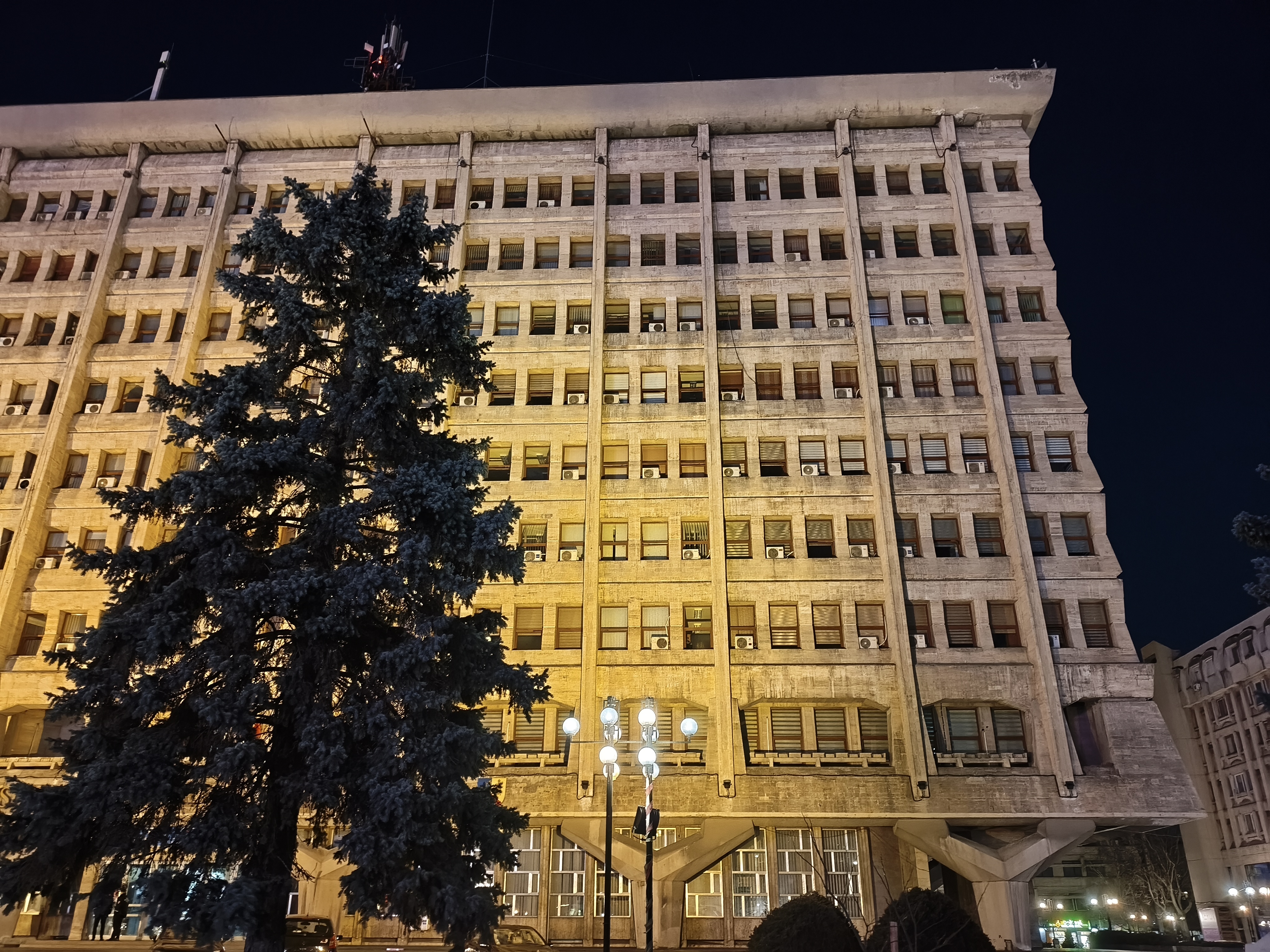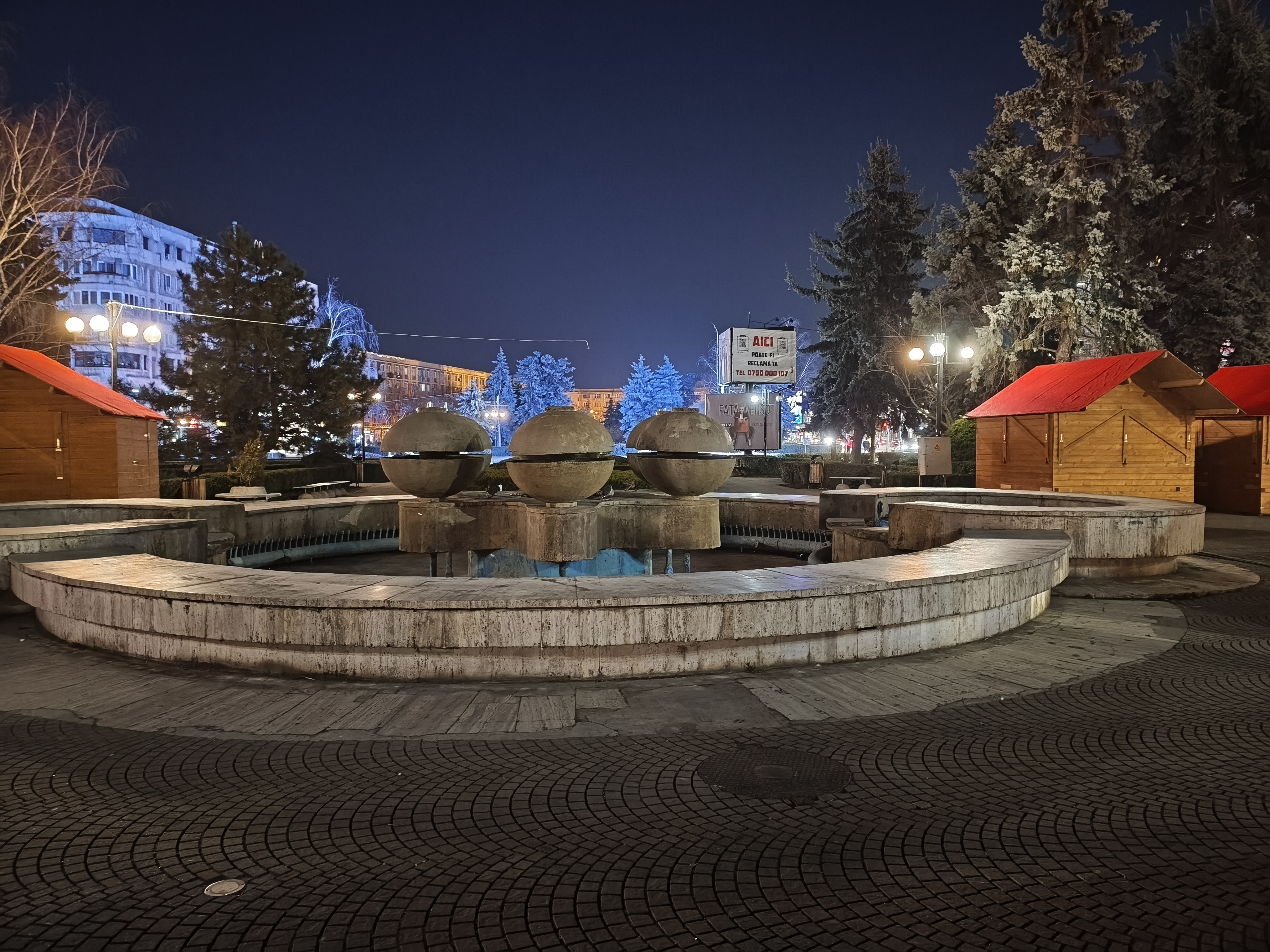 Chiar și în zonele mai puțin luminate, precum în jurul fântânii și la monumentul eroilor, avem detalii peste așteptări, chiar și scrisul fiind lizibil. Am și o poză cu Palatul Administrativ capturat în format 16:9 ce arată foarte bine. Deși nu avem Night Mode tradițional, el se aplică automat și cumva e mai rapid decât în cazul altor telefoane. Mă declar deci surprins și mulțumit de capturile low-light realizate cu acest model.