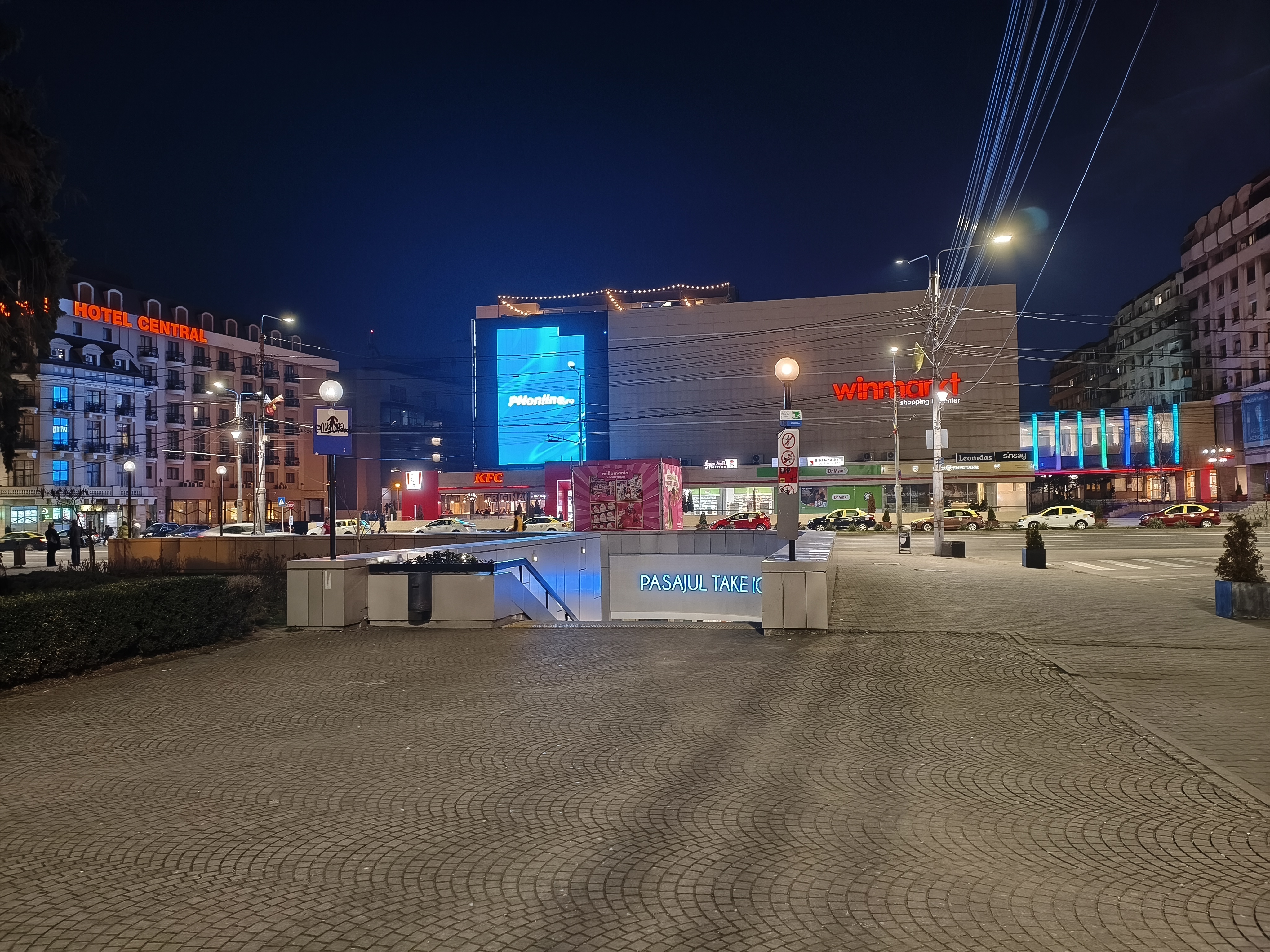 Mă așteptam la rezultate mult mai slabe seara, dar iată că sunt în schimb plăcut surprins tot de culori și detalii. Palatul Culturii din Ploiești e plăcut iluminat în această perioadă și a devenit poza mea preferată realizată cu acest smartphone. Cumva POCO reușește să țînă sub control halo-urile și lense flare-ul, deși apare ici-colo în jurul surselor de iluminare.