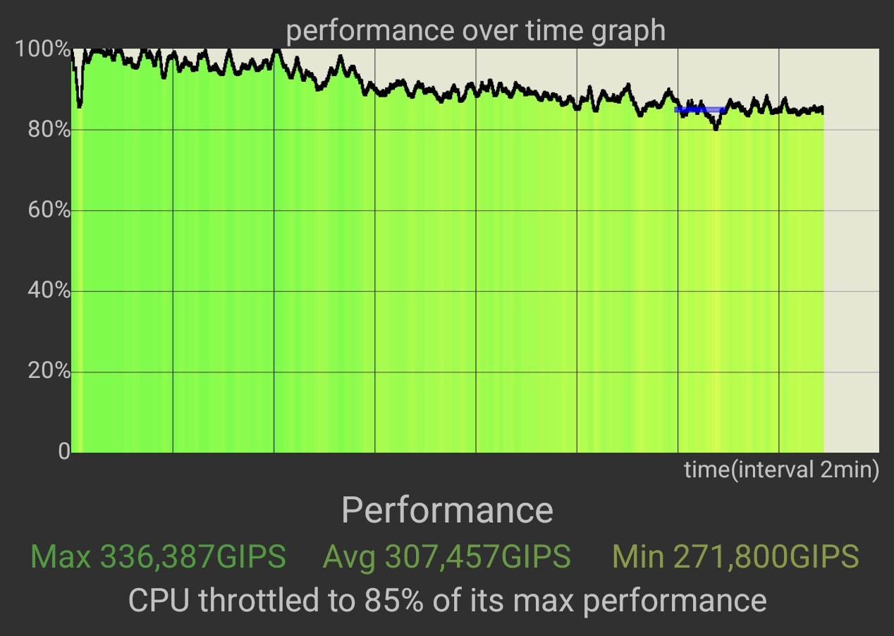 Privim acum spre benchmark-uri și începem cu testul de Throttling. Am pierdut doar 15% din performanță după 15 minute de test, ceea ce e foarte bine, deși telefonul devine cam fierbinte. Am atins în jur de 48 de grade Celsius în unele puncte, mai exact, deci ideal ar fi să folosim husa, jocurile solicitante pot duce spre această valoare.