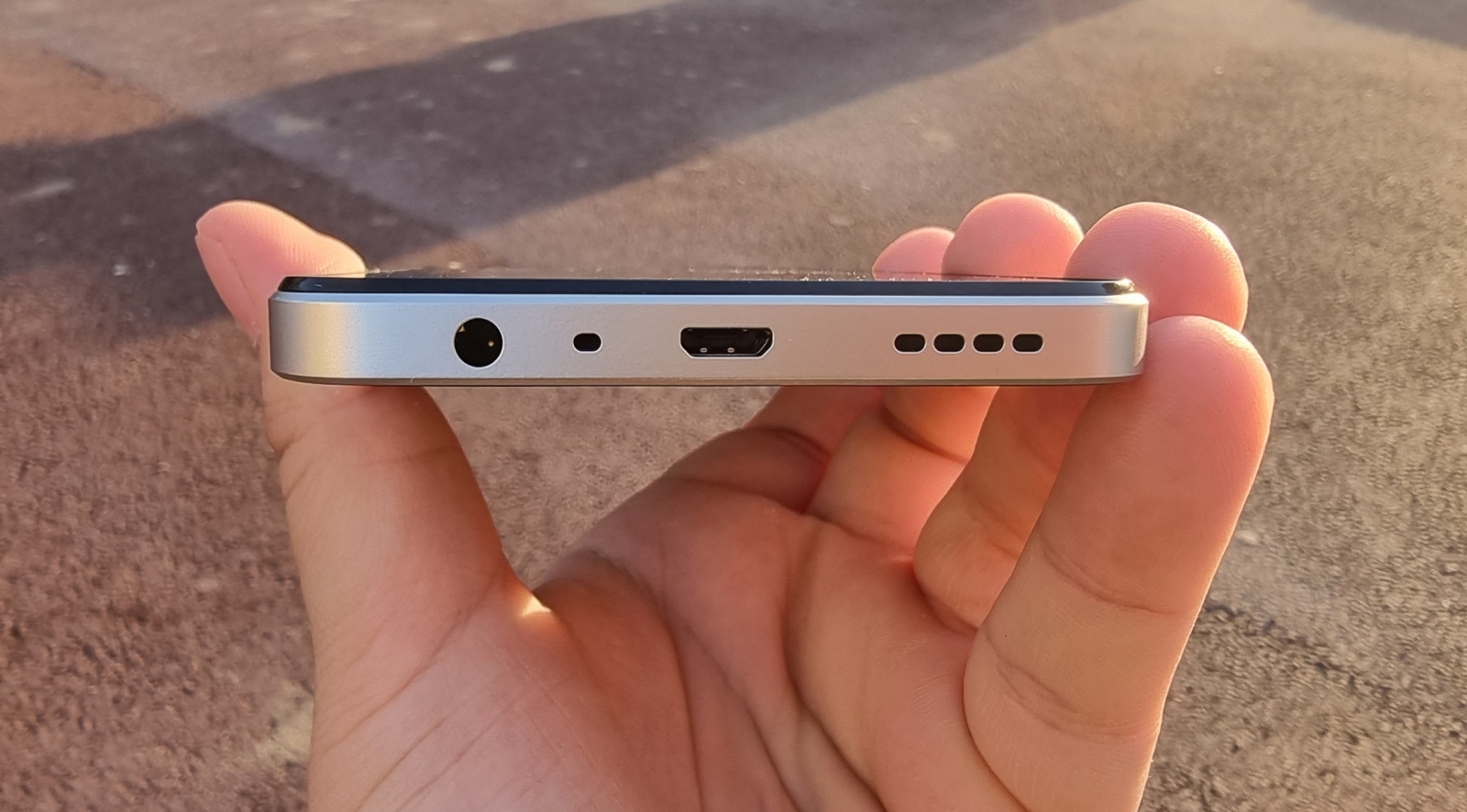 În partea de jos, lângă portul microUSB, găsim un singur difuzor. Tot acolo se află și o mufă jack de 3.5 mm pentru căști, o raritate în 2022, deși nu primim căști în pachet. Sunetul e OK dacă folosești telefonul ocazional pentru TikTok, YouTube sau Netflix, însă nu impresionează, mai ales la volum maxim, unde apar distorsionări.
