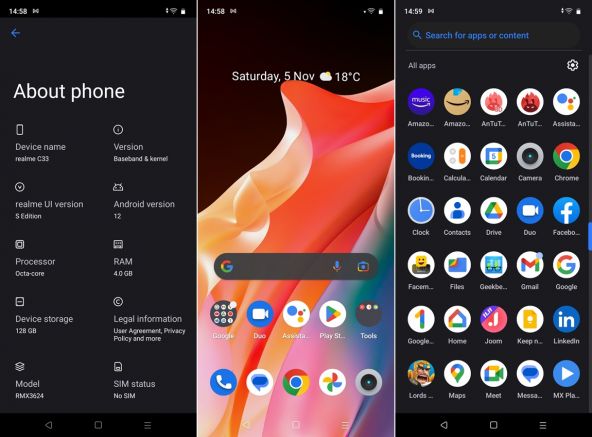 Nu avem funcție extra RAM, deși am căutat-o, iar telefonul rulează Android 12, o veste bună. Peste această versiune a sistemului de operare e aplicata interfața realme UI R Edition. Este o interfață concepută pentru smartphone-urile mai accesibile de către realme. Livrează doar strictul necesar, deși apar câteva recomandări de jocuri prin meniu. Nu e tocmai un telefon de gaming însă. Am încercat PUBG Mobile, însă jocul nu se mișcă cum ar trebui. Mai mult ca singur duce titluri mai puțin solicitante precum Candy Crush sau Clash of Clans.