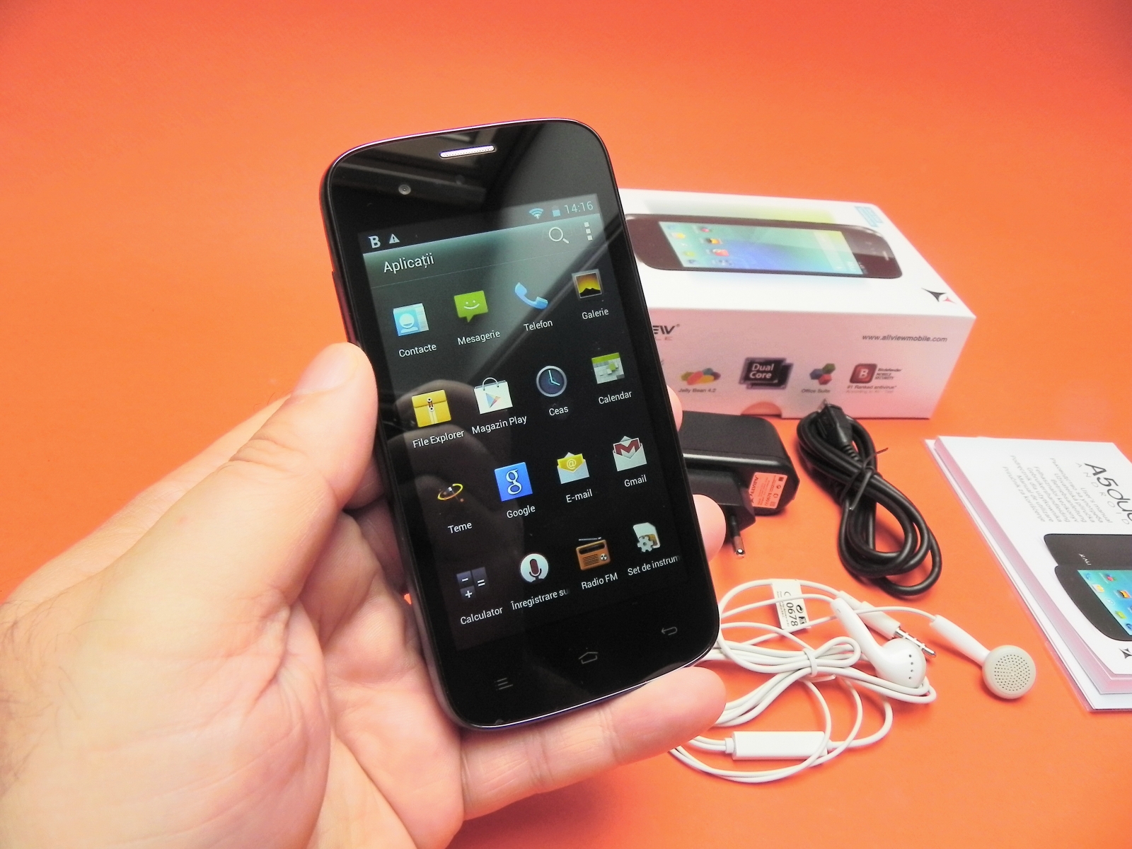 în ce privește acustica, acest telefon oferă un volum ridicat, voce clară, bas bun, dar spatele său vibrează la volum maxim. Personal am fost plăcut impresionat de calitate audio a acestui model Allview, iar căștile oferă la rândul lor bas bun și volum ridicat, plus că au un design destul de bun față de normă.