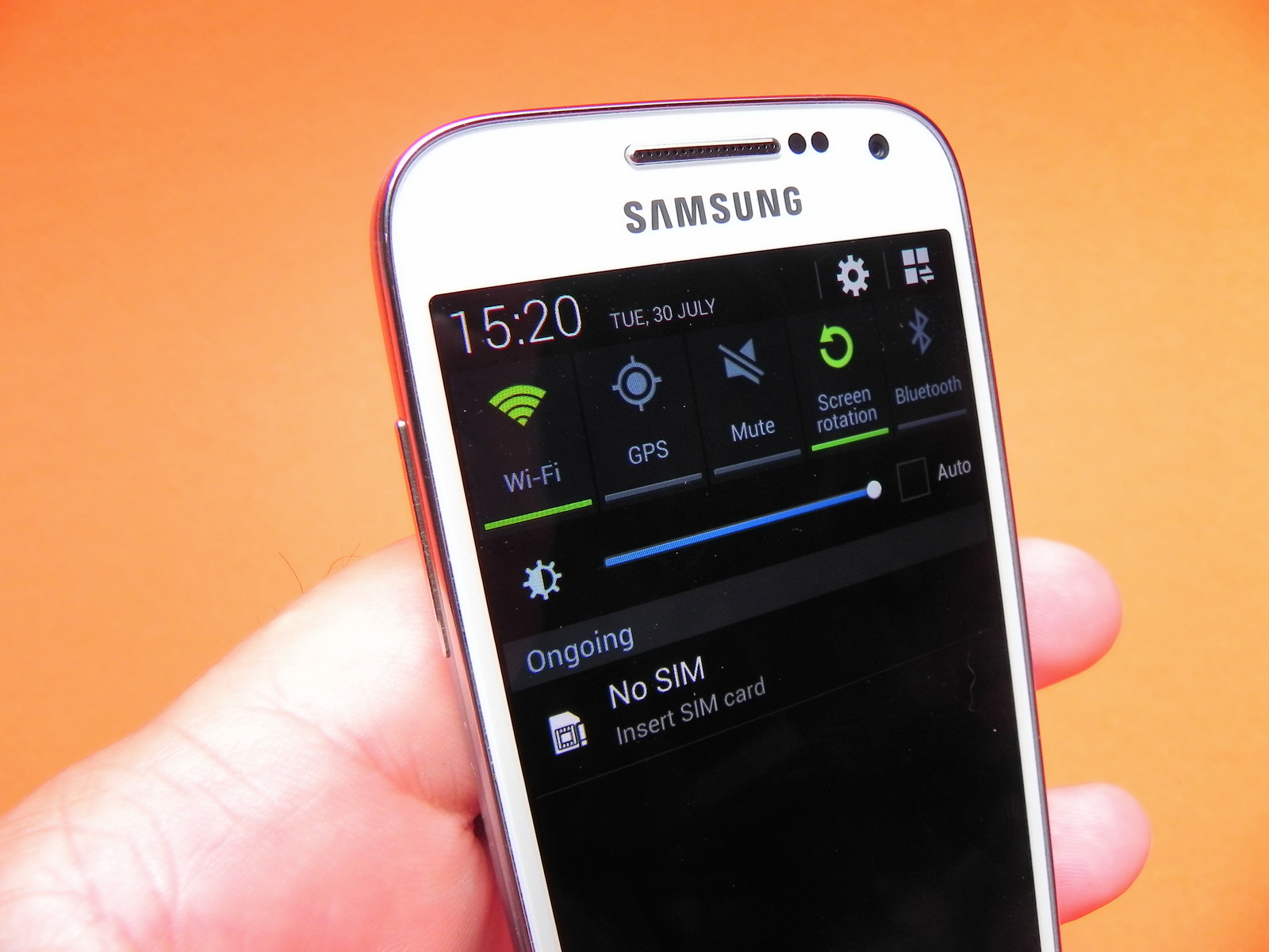 în zona superioară se afla un emițător infraroșu, iar lângă earpiece găsim un senzor de proximitate și lumina ambientală. Trecând la hardware, avem la dispoziție un display Super AMOLED de 4.3 inch, cu rezoluție de 540 x 969 pixeli și densitate de 256 PPI. Slotul microSD de sub capacul bateriei poate găzdui carduri de până la 64 GB, iar pe acest telefon primim doar 8 GB stocare, din care doar 5 GB sunt disponibili pentru utilizator.