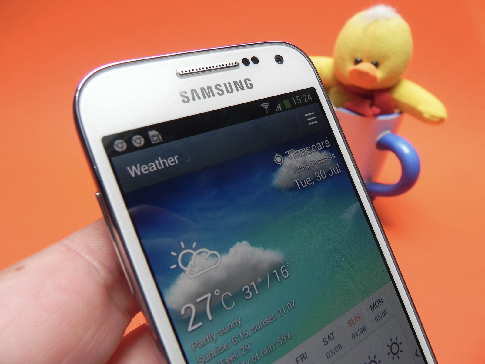 Anunțat în luna mai, smartphone-ul a fost lansat în luna iulie și noi l-am primit în teste de la evoMAG.ro, care îl vinde la prețul de 1.749 lei și oferă și o variantă dual SIM a sa. Acest model este practic un Galaxy S4 mai mic, mai ales dacă ne uităm la design. în mare lookul este cel al lui S4, dar miniaturizat, cu amplasare similară a porturilor și butoanelor.