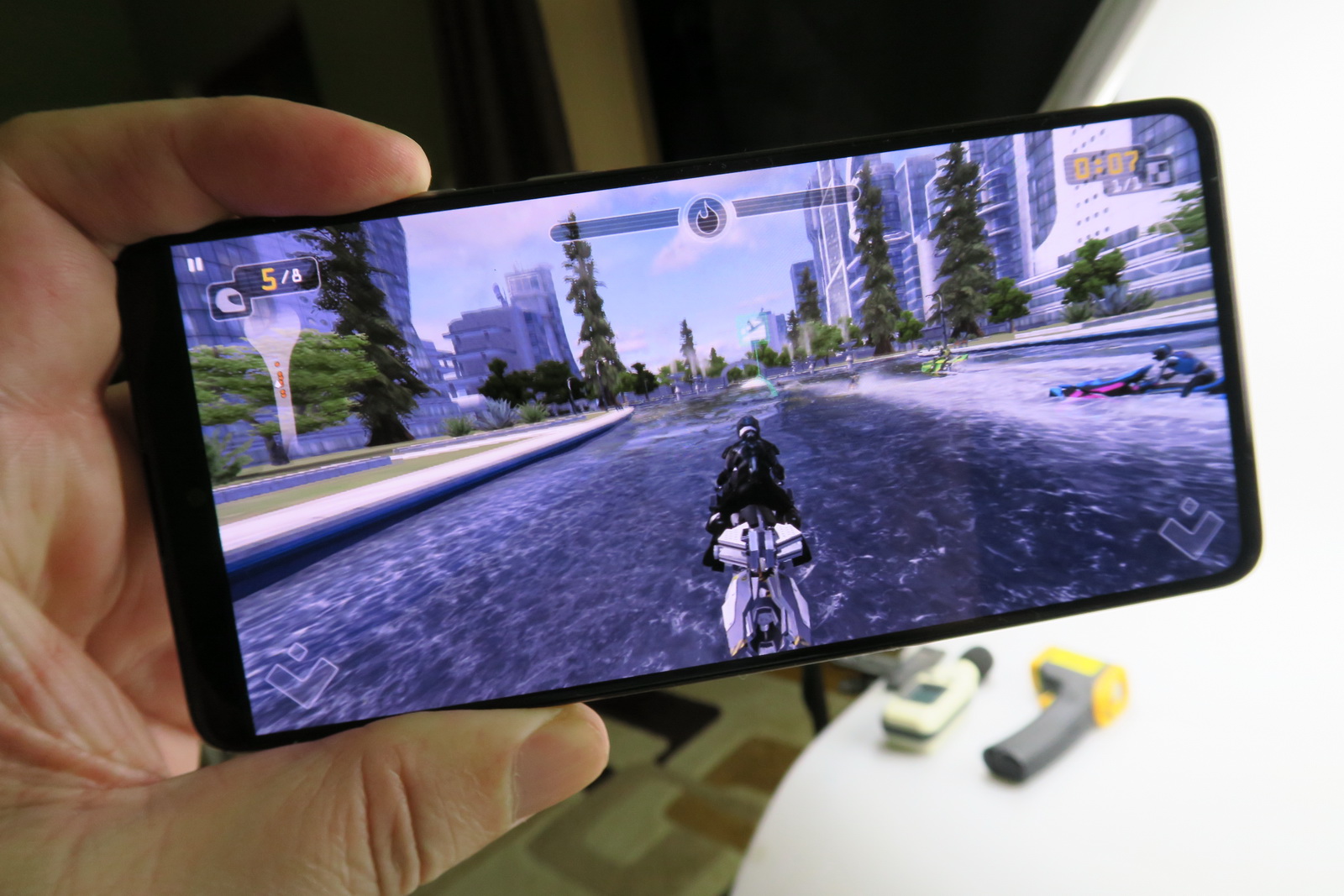 Cât despre testul de GPU, 3DMark Slingshot Extreme ES 3.1, am fost peste Galaxy A80 şi Xiaomi Redmi Note 8 Pro, dar şi peste Xiaomi Mi Note 10. Totuşi în acest test ne-au întrecut Honor 10 şi Huawei P20 Pro. În principiu gravitam în jurul valorilor atinse de Xiaomi Mi 9T şi Xiaomi Mi Note 10, ceea ce nu e chiar rău. La testul de temperatură sunt zero probleme şi telefonul rămâne rece. Am atins 33.5 grade Celsius la gaming şi 32.2 grade la benchmark-uri, deci nu există supraîncălzire.
