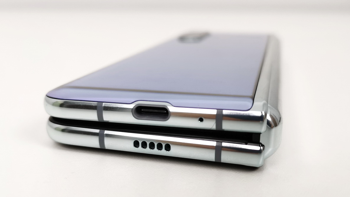 Mai degrabă nu îmi place bretonul care strică simetria, aş zice. Mănâncă din vizionarea video şi din jocuri. Având în vedere faptul că ecranul e aproape pătrat, o să ai şi mari dungi negre sub şi deasupra clipului video. Ecranul de la interior este unul Dynamic AMOLED de 7.3 inch cu rezoluţie de 2152 x 1536 pixeli. Are şi suport HDR10+. Ecranul exterior are diagonală de 4.6 inch şi este un Super AMOLED cu rezoluţie de 1680 x 720 pixeli.